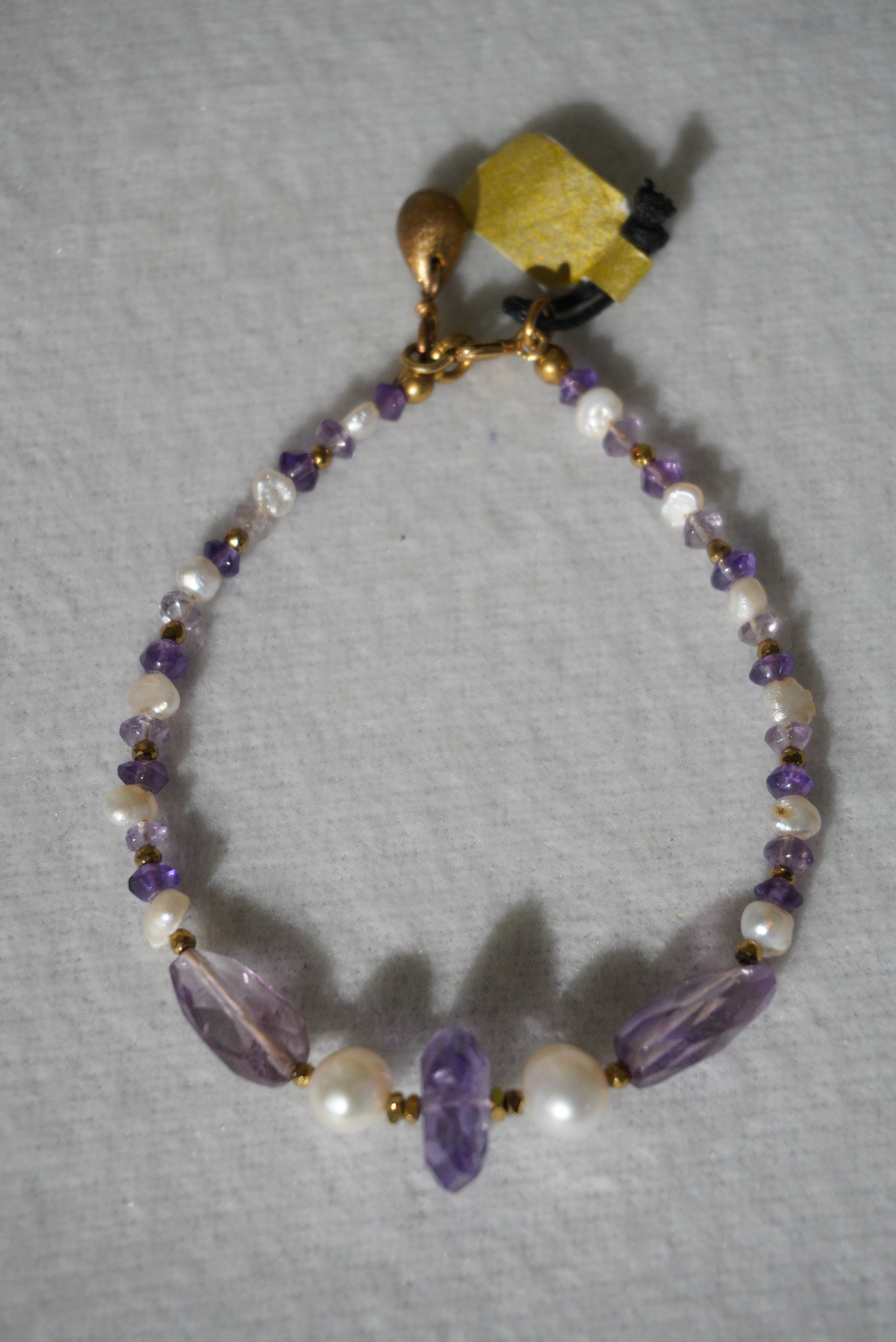 Bransoletka ametyst, perła, srebro pozłacane 925