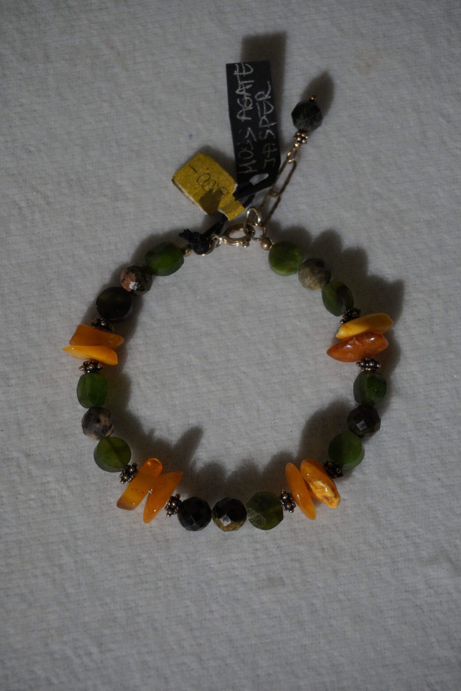 Bransoletka bursztyn, moss agate, jasper, srebro 925