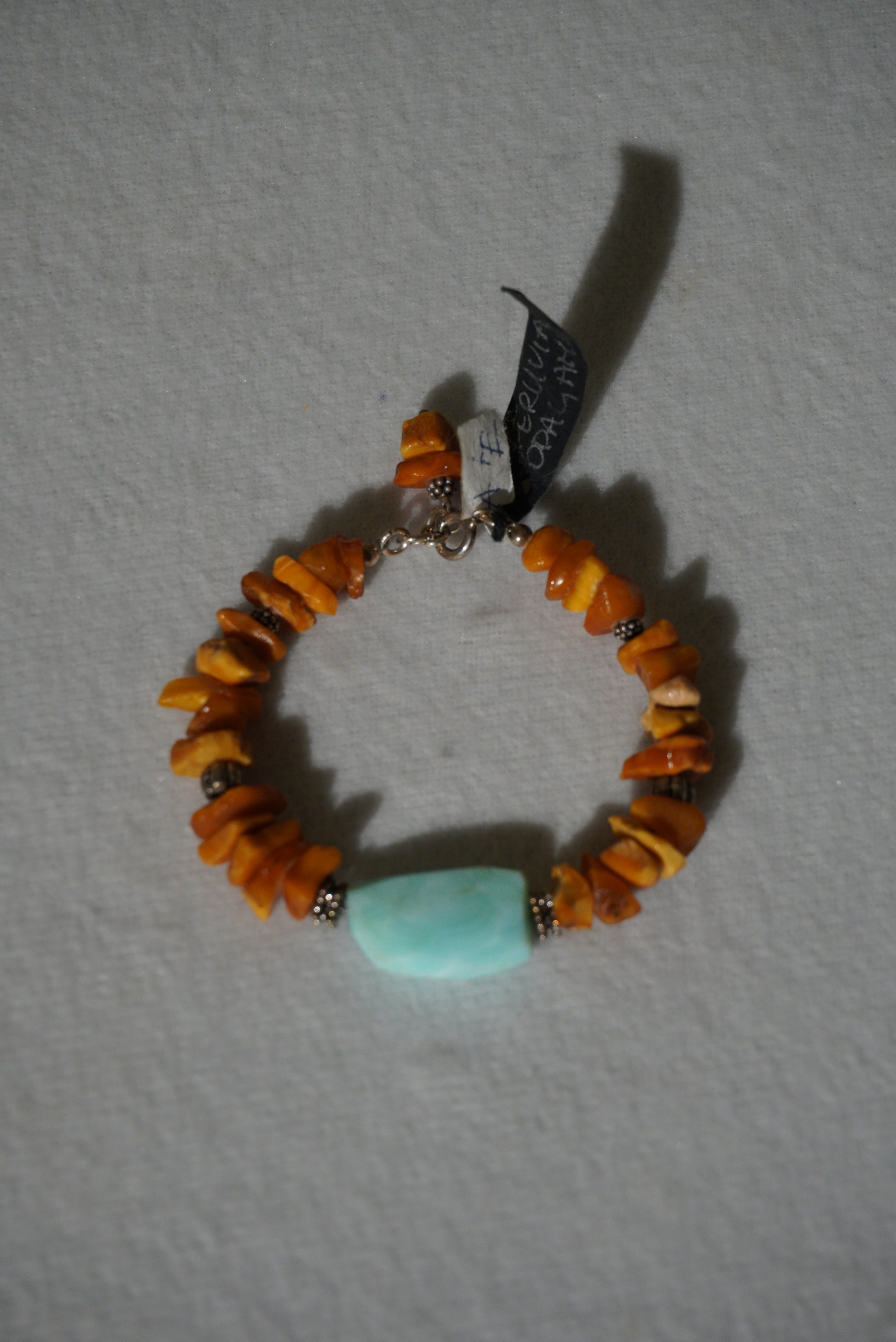 Bransoletka bursztyn, opal peruwiański, srebro 925