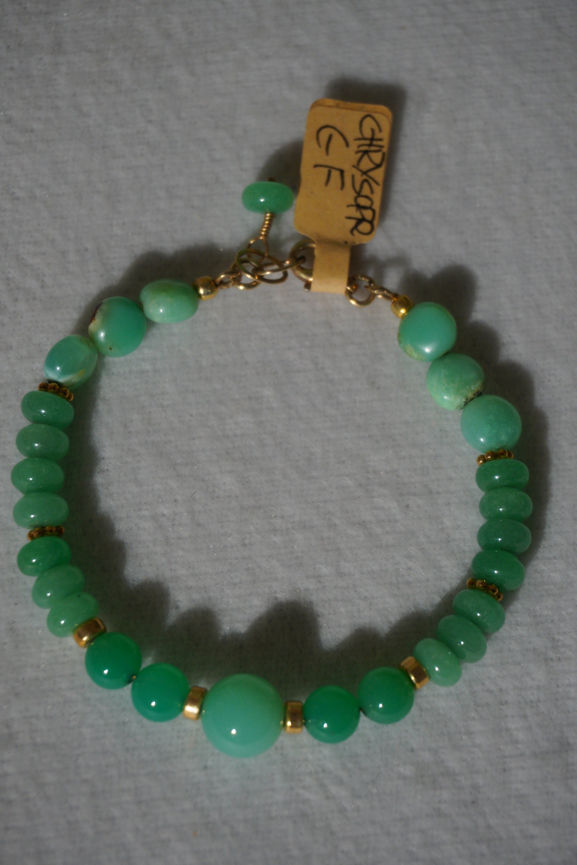 Bransoletka chryzopras, srebro pozłacane 925