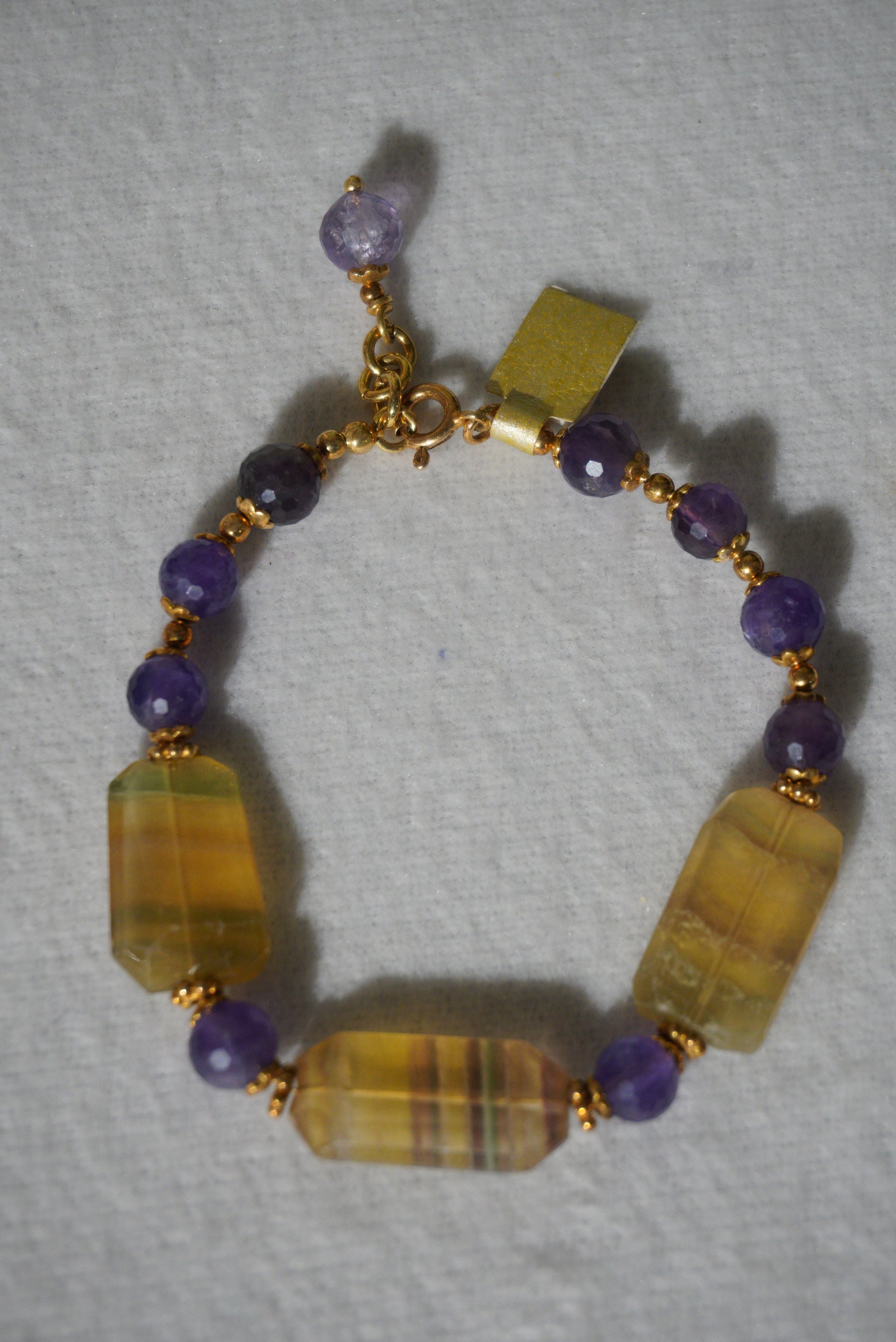 Bransoletka cytryn, ametyst, srebro pozłacane 925