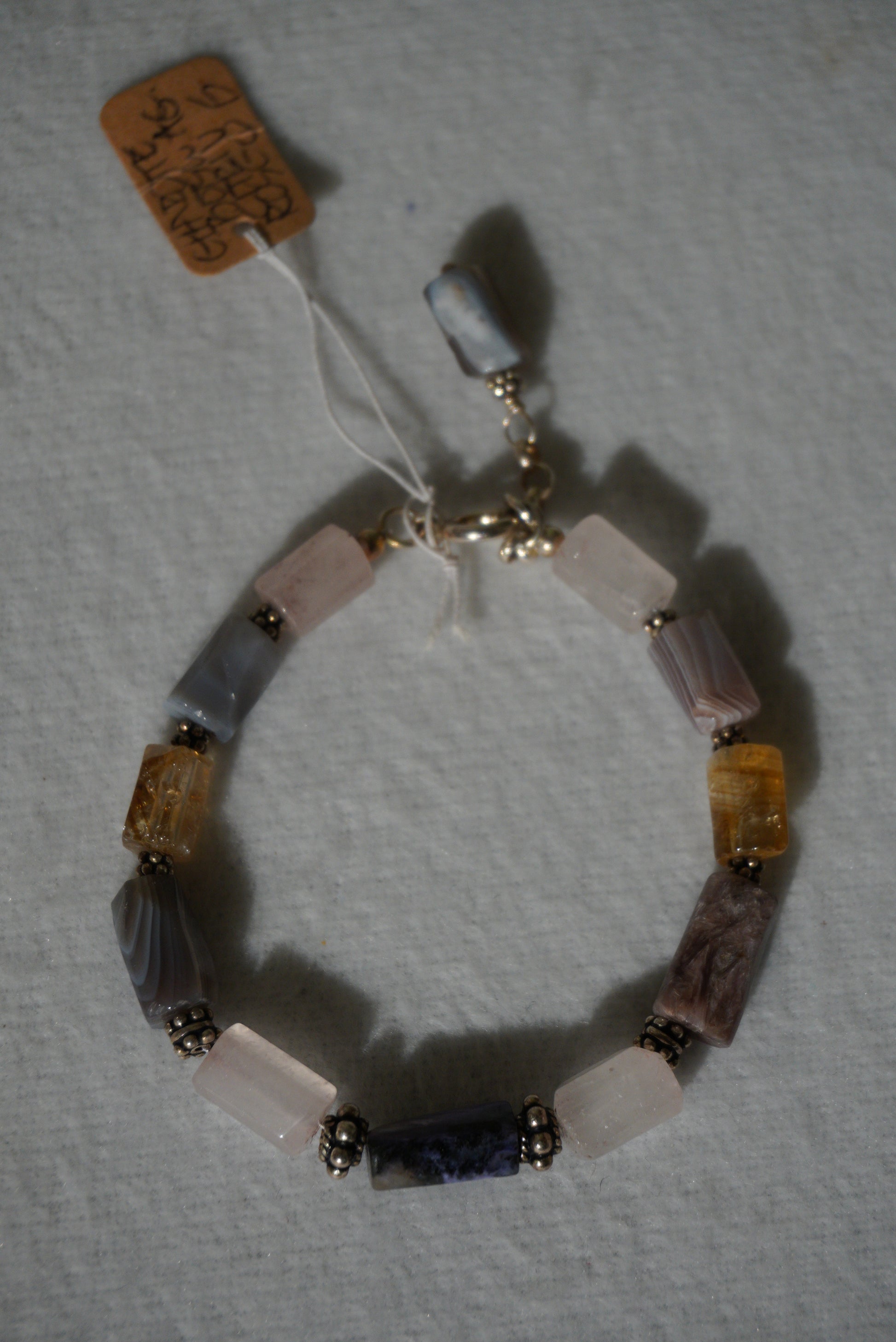 Bransoletka cytryn, charoite, agat botswana, srebro 925