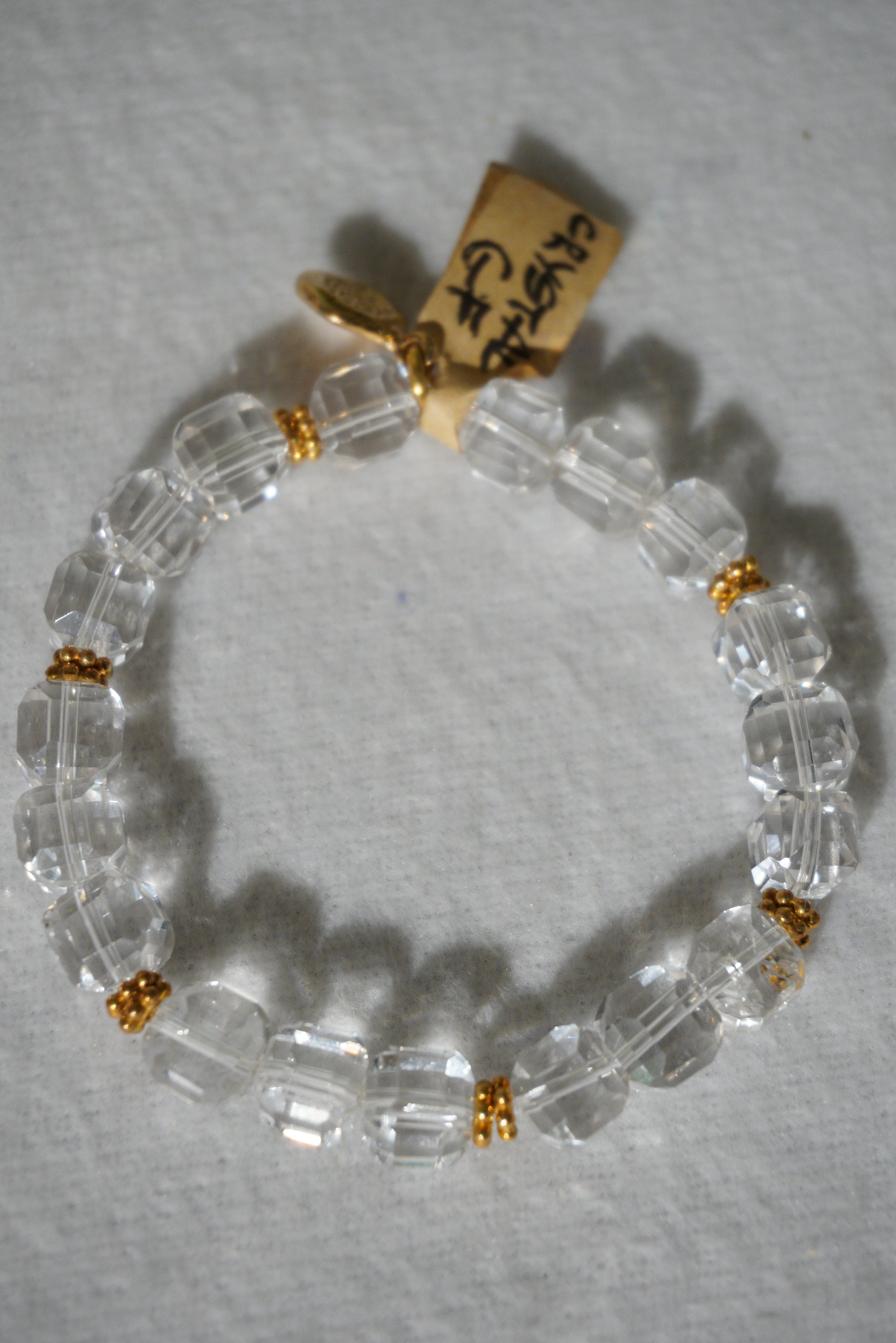 Bransoletka kryształ, srebro pozłacane 925, na gumce