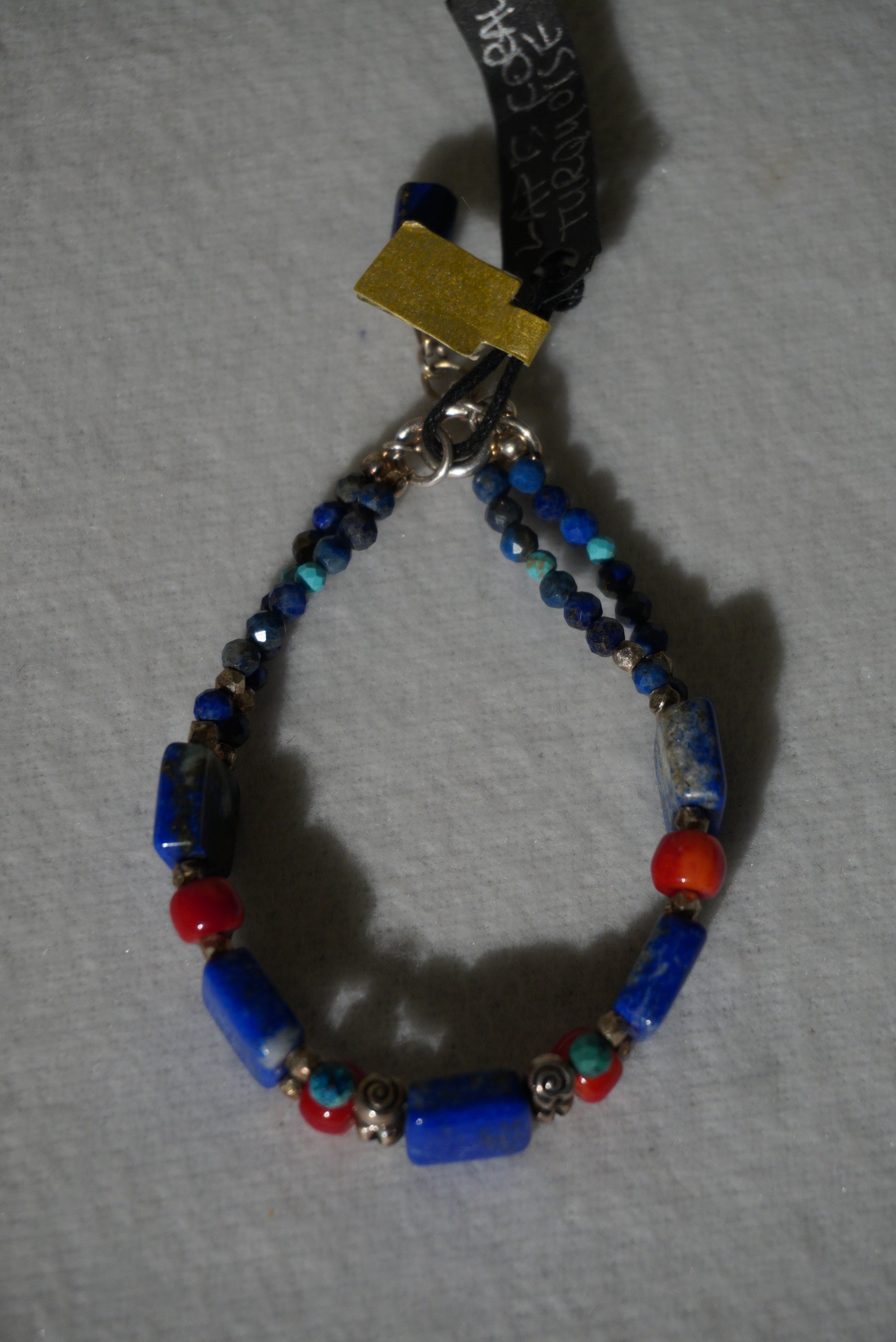 Bransoletka lapis lazuli, turkus, koral, azuryt, srebro 925
