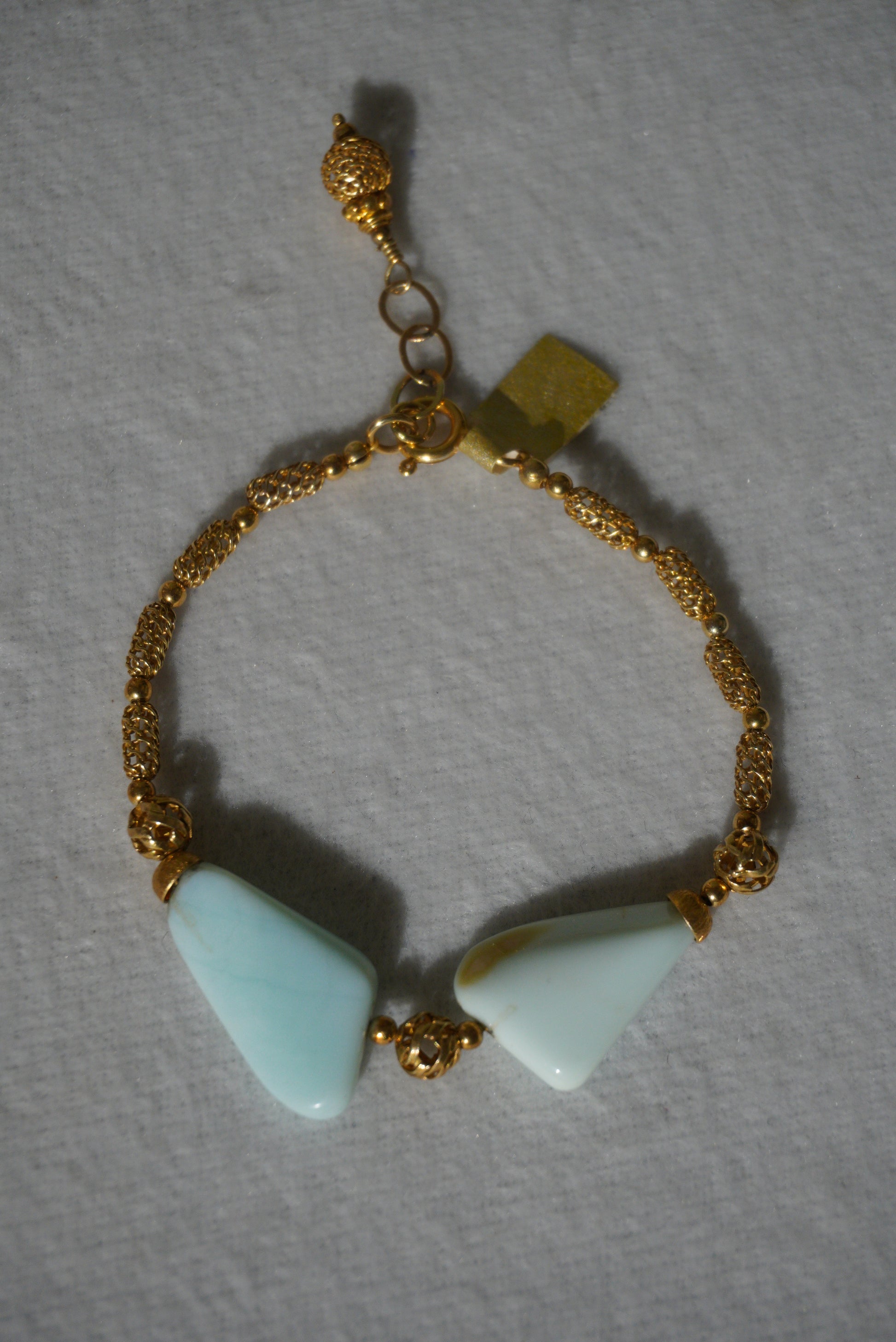 Bransoletka opal peruwiański, srebro pozłacane 925