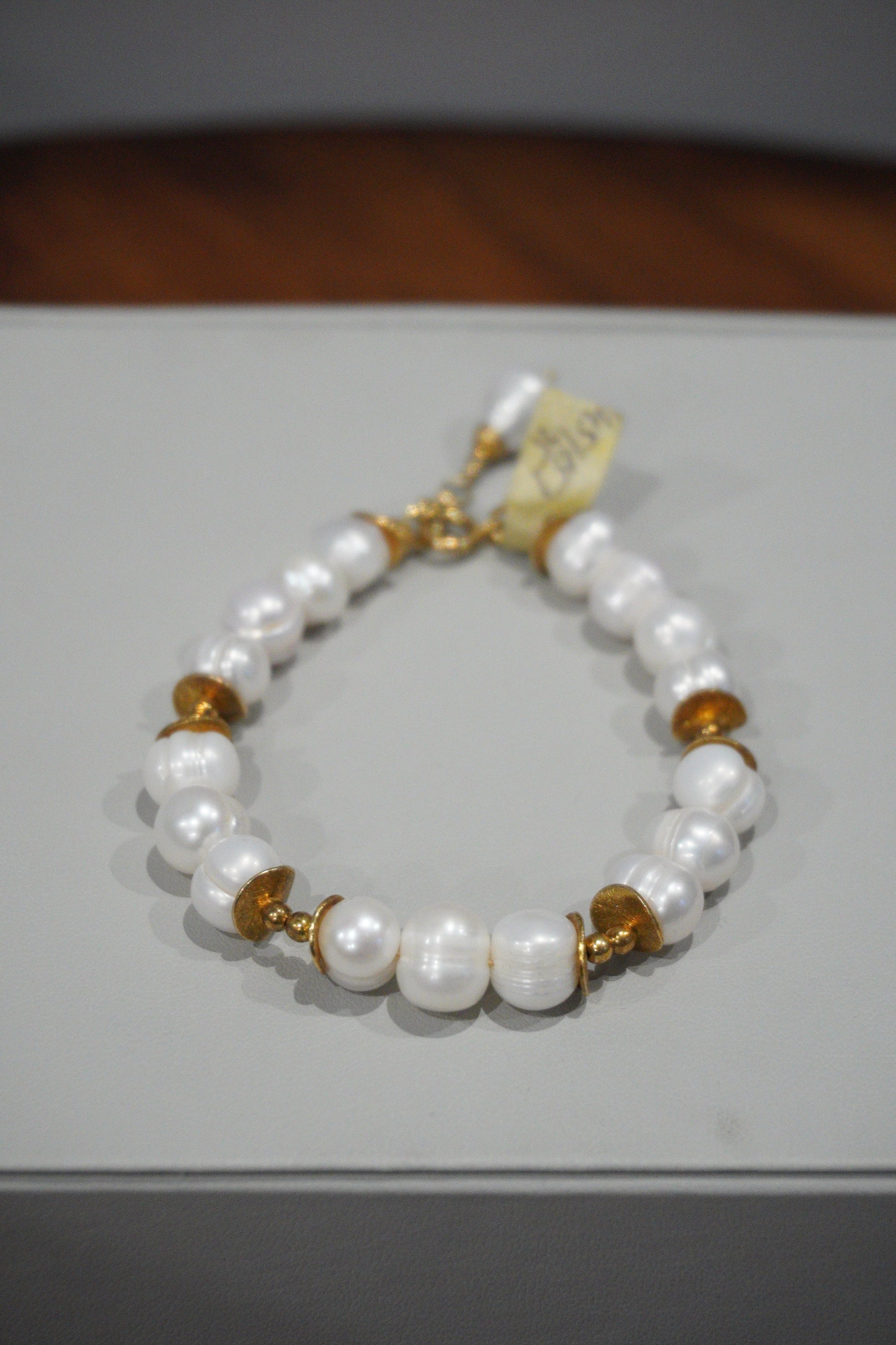 Bransoletka z pereł hodowlanych, przekładki srebro pozłacane.
