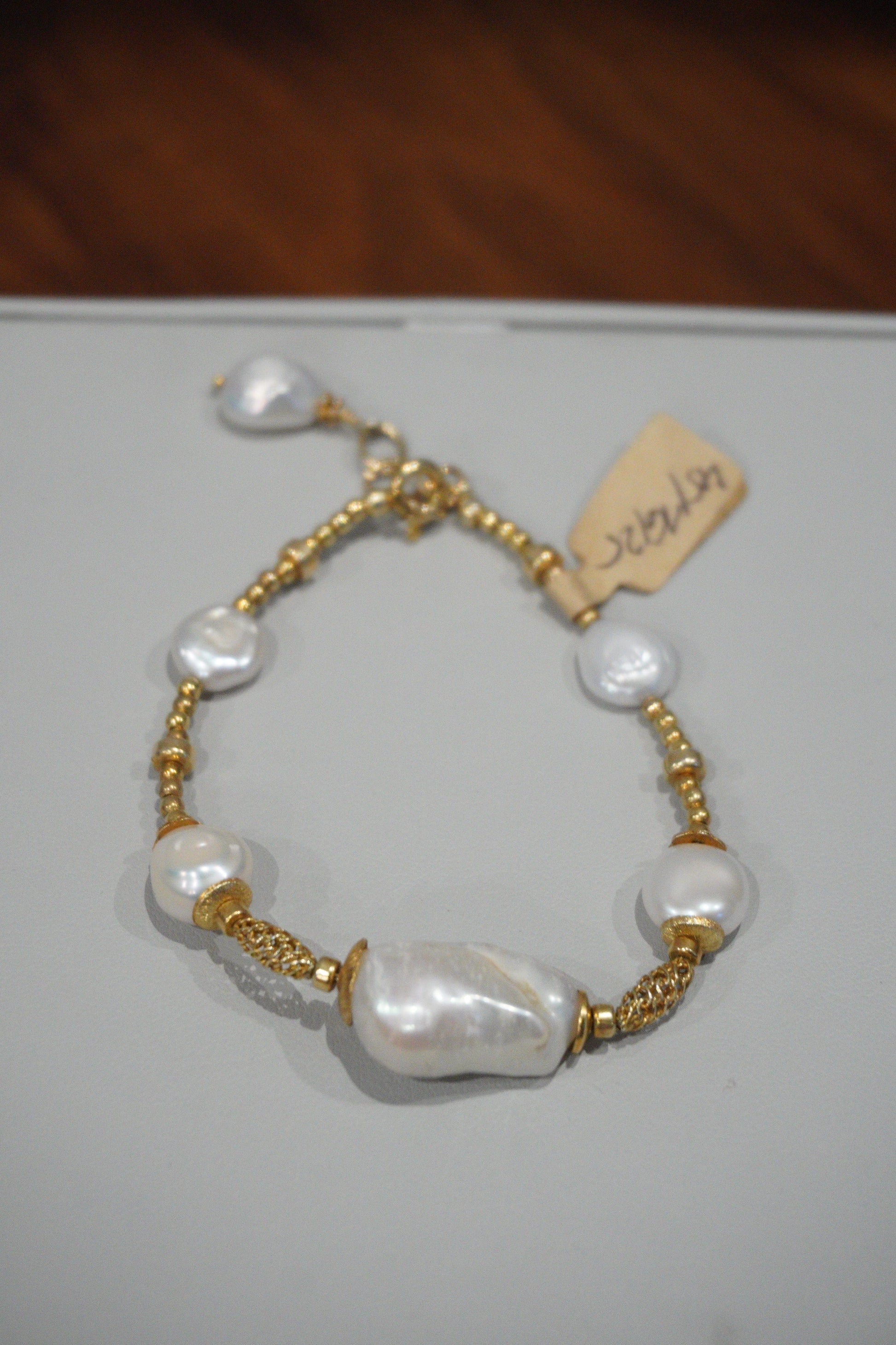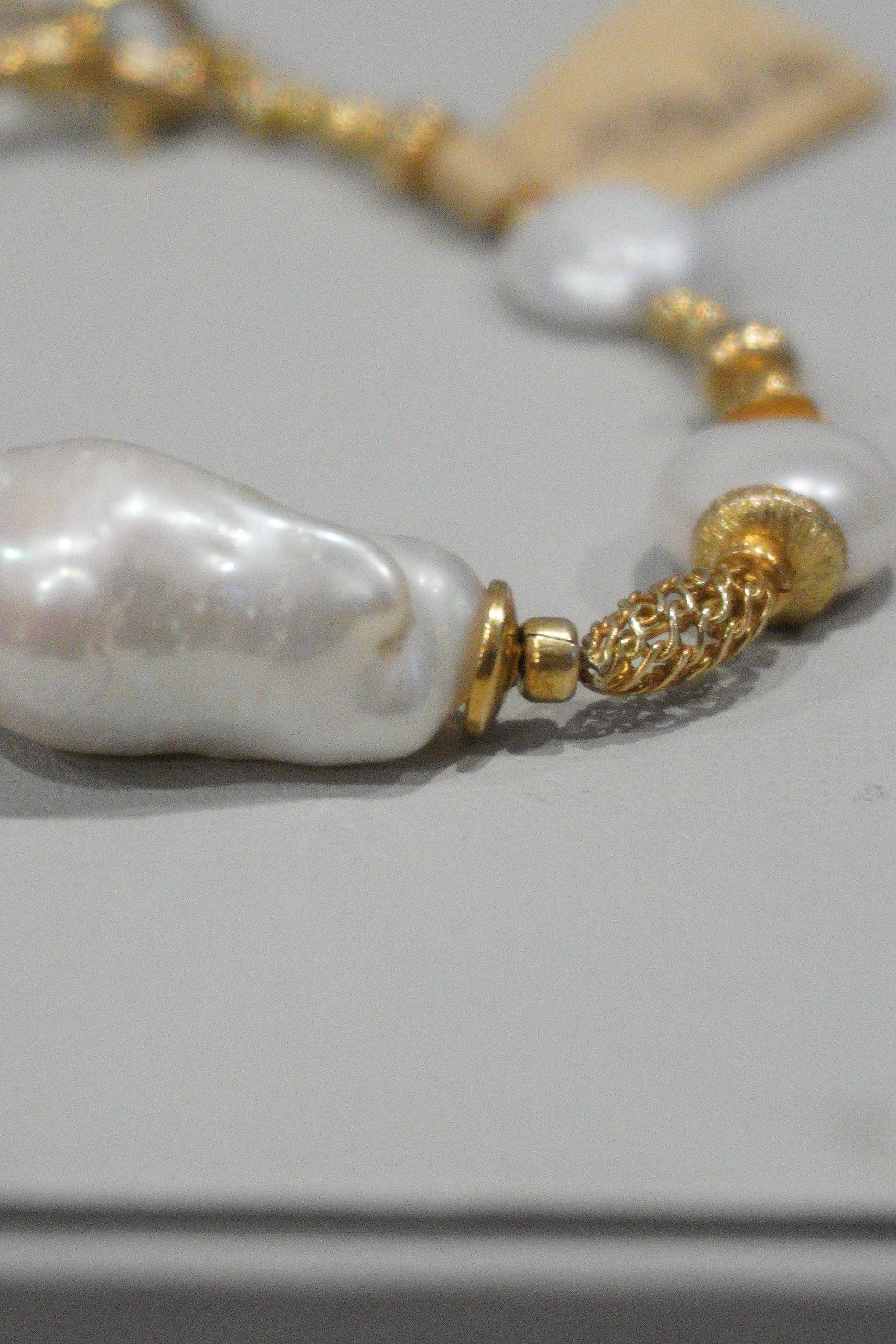 Bransoletka perła hodowlana, środek perła barokowa, srebro pozłacane.