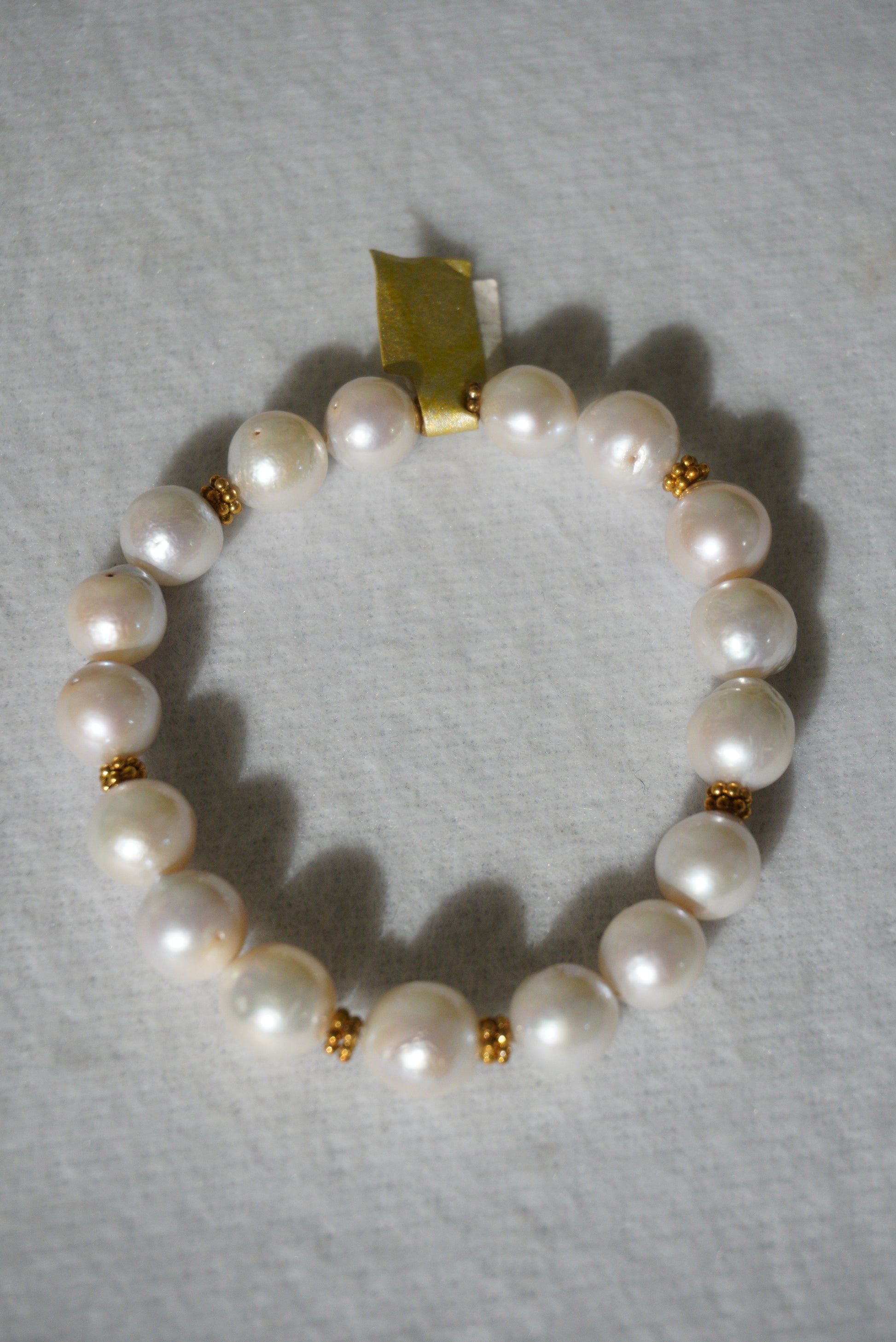 Bransoletka perła, srebro pozłacane 925, na gumce