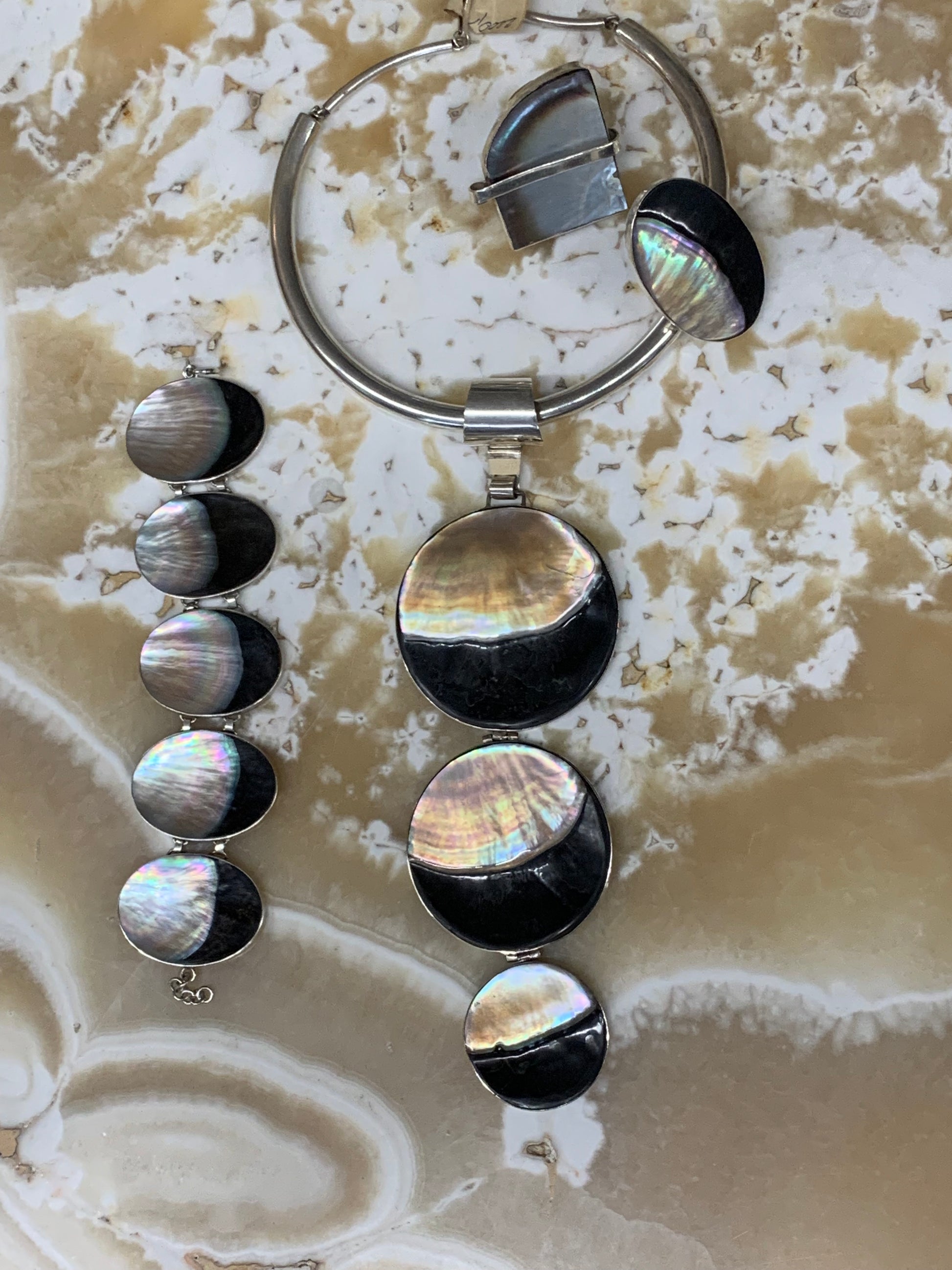 Pierścionek srebrny z regulacją, pr. 925. Do kompletu jest naszyjnik i bransoletka.