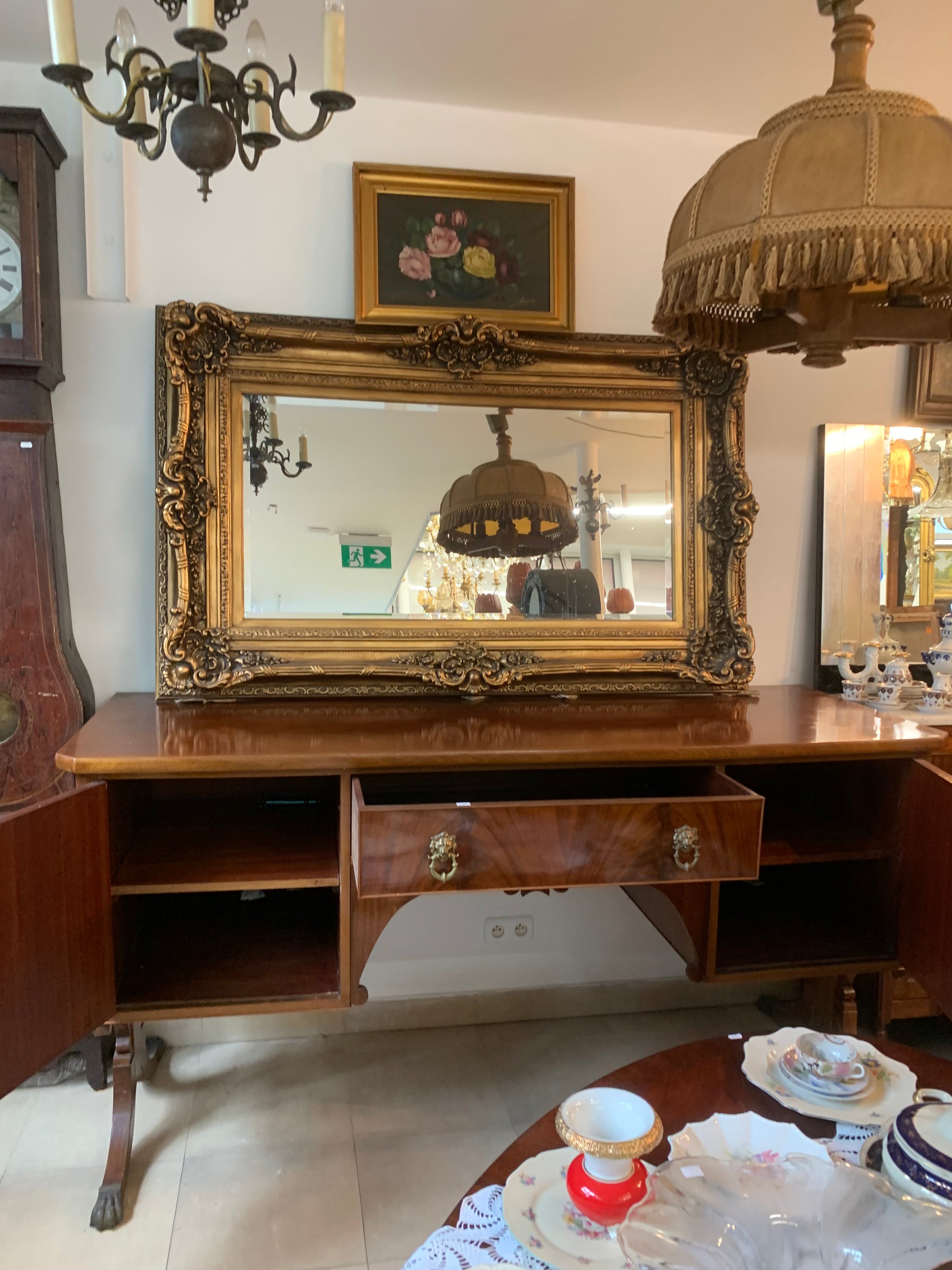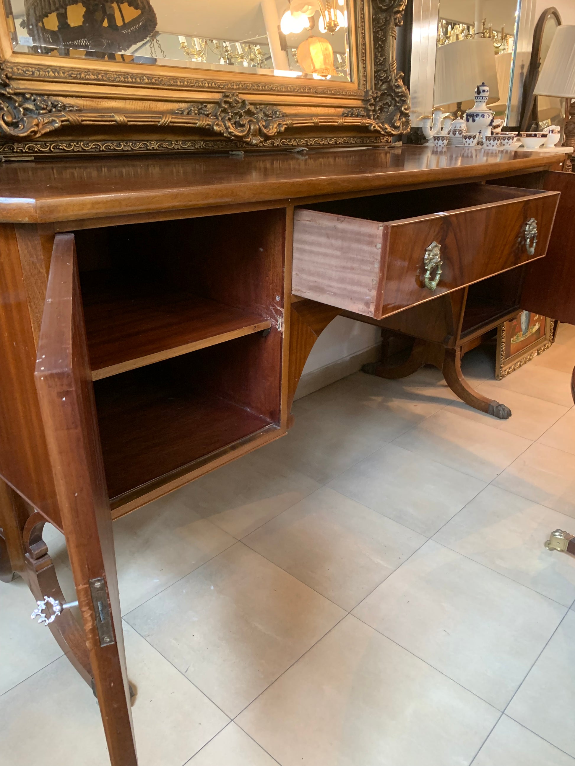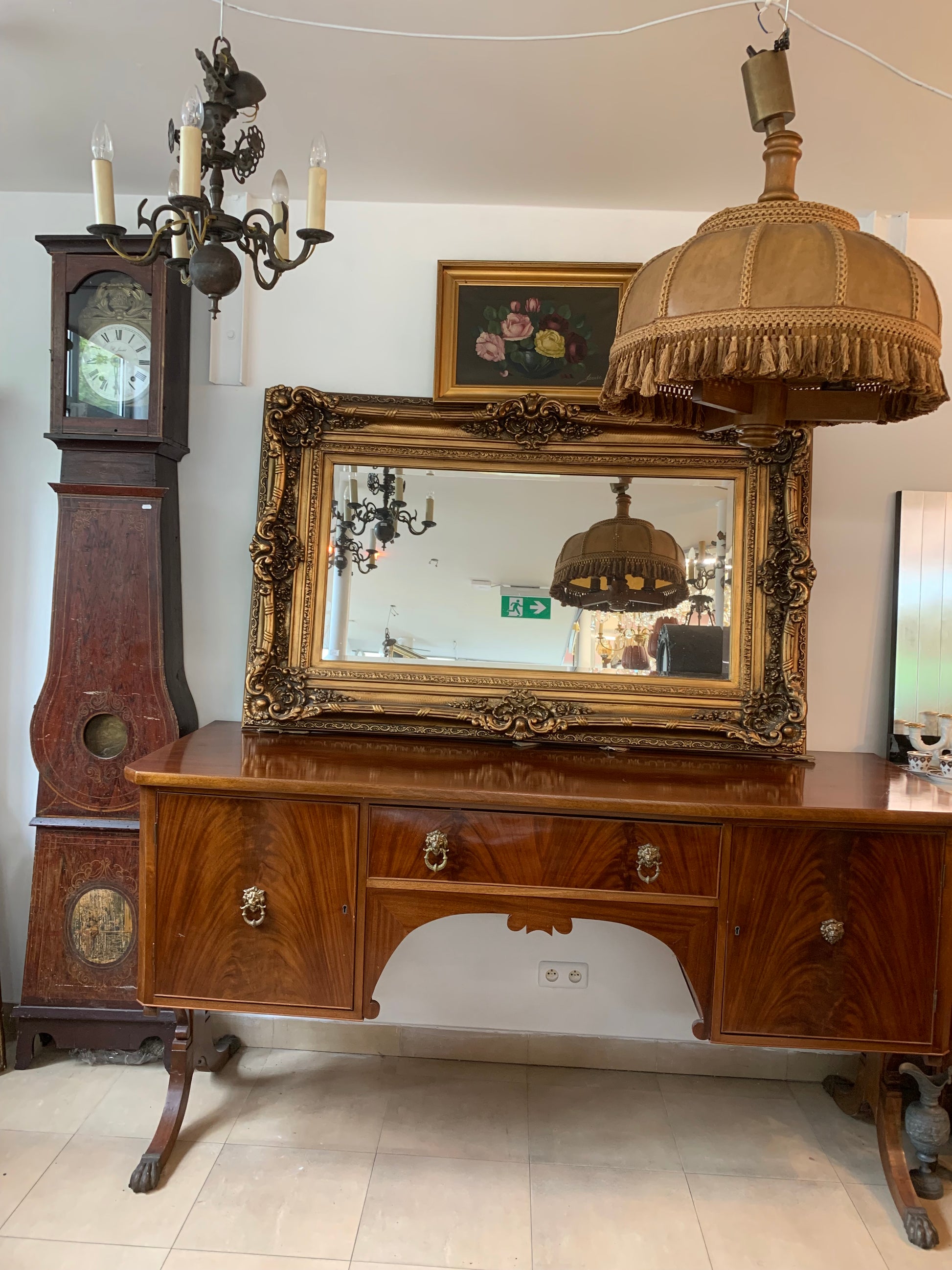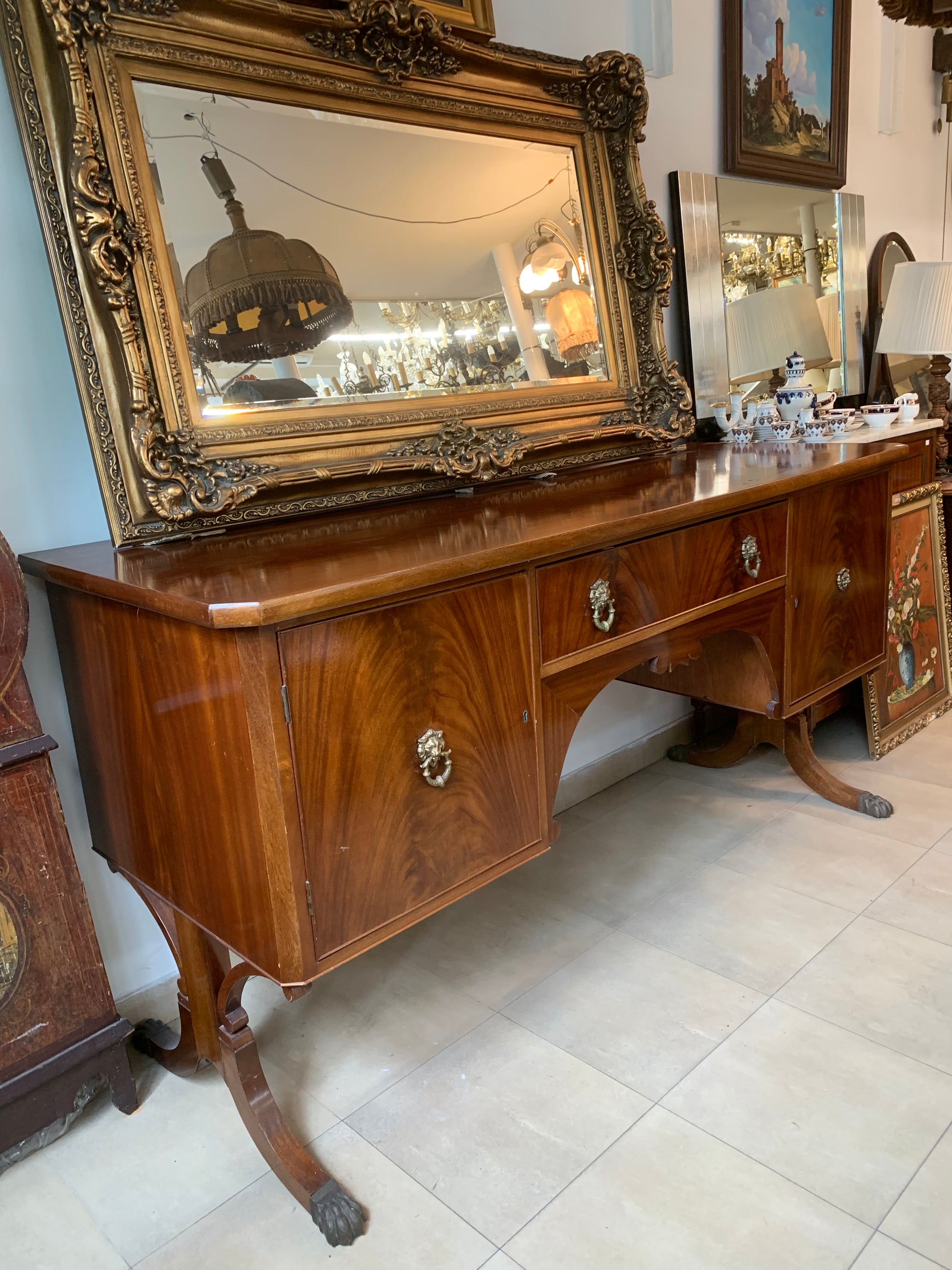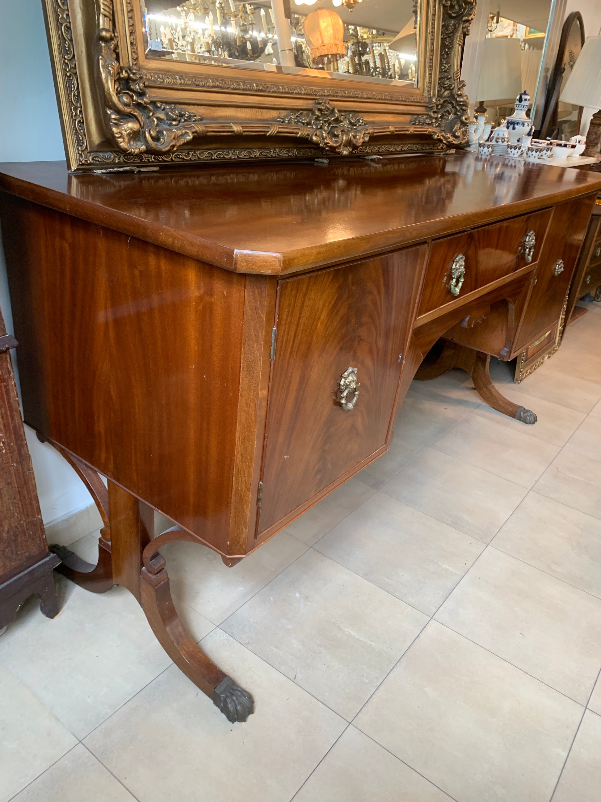Bufet, duża, stylowa komoda mahoniowa z szufladą i bocznymi szafkami, nogi wykończone szponami z mosiądzu. Stan: bardzo dobry.