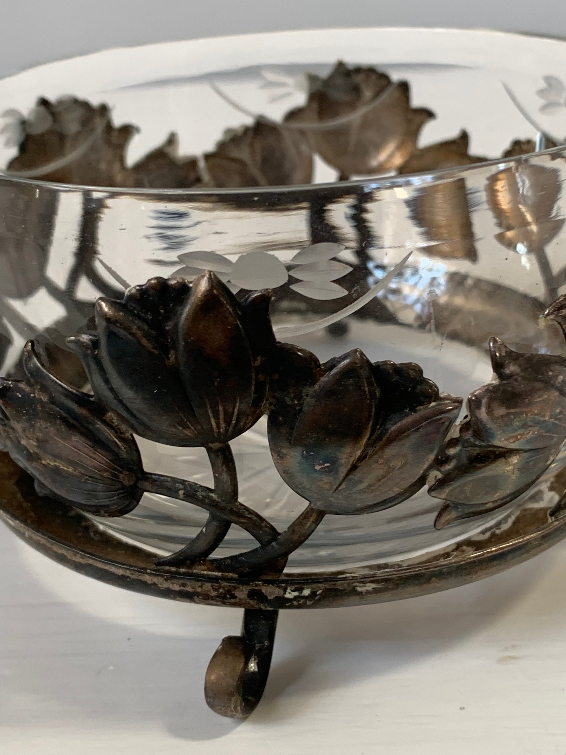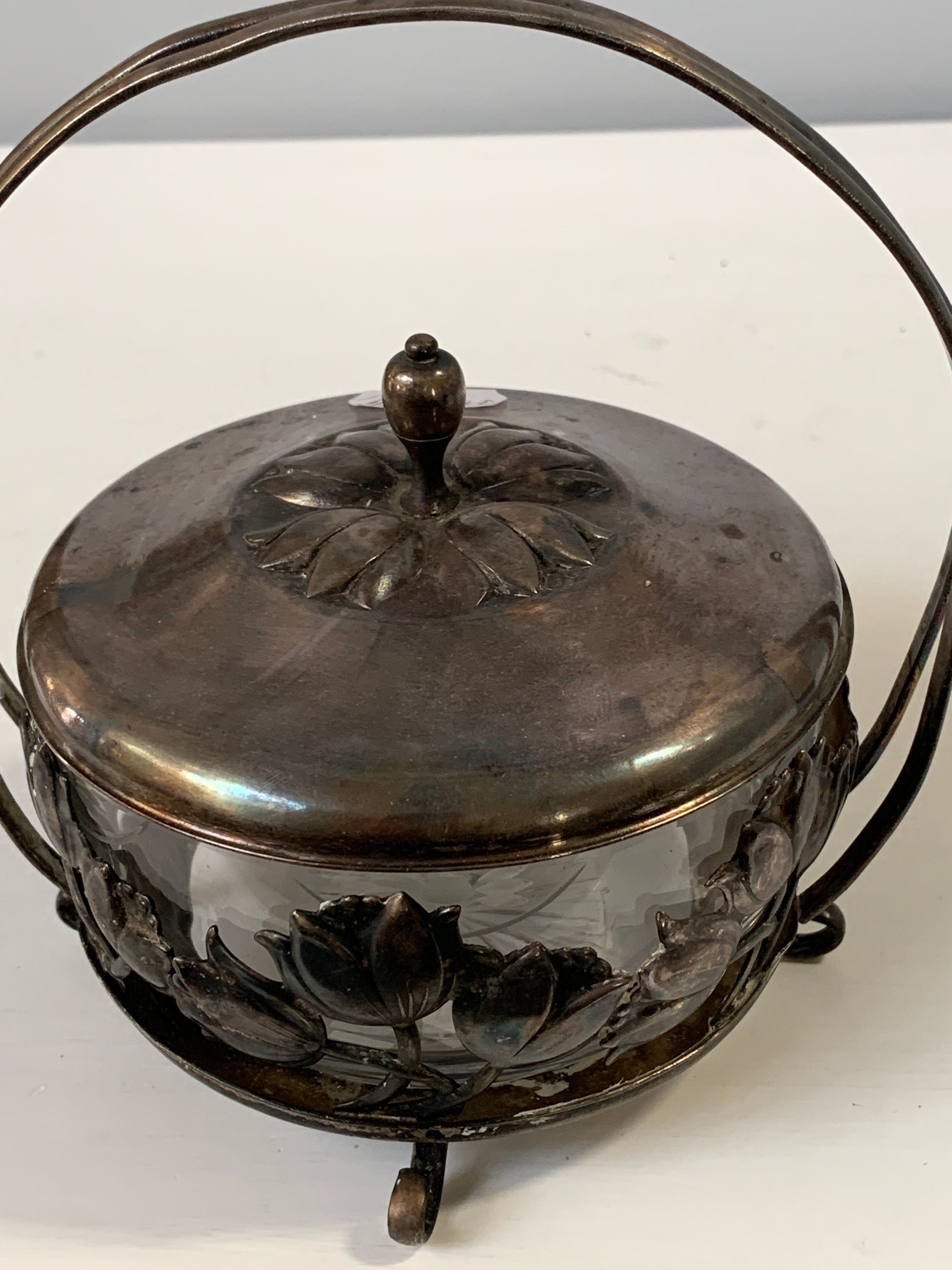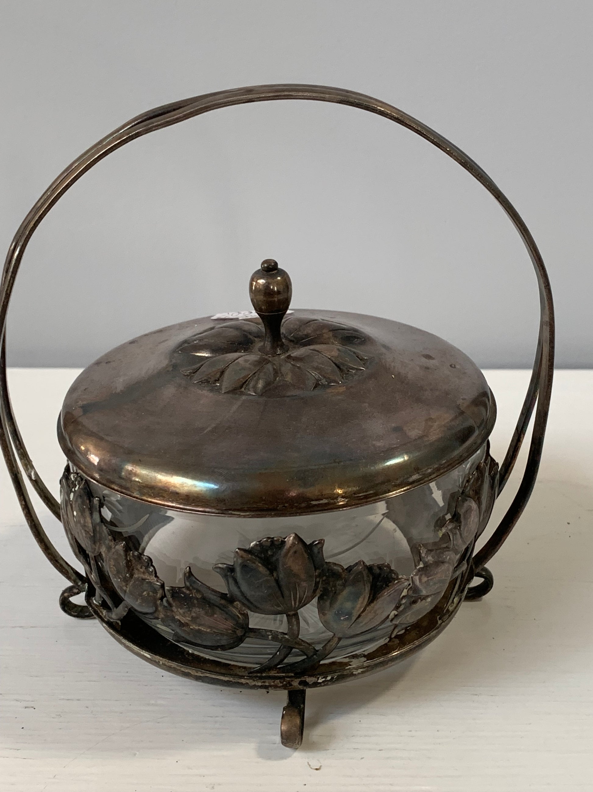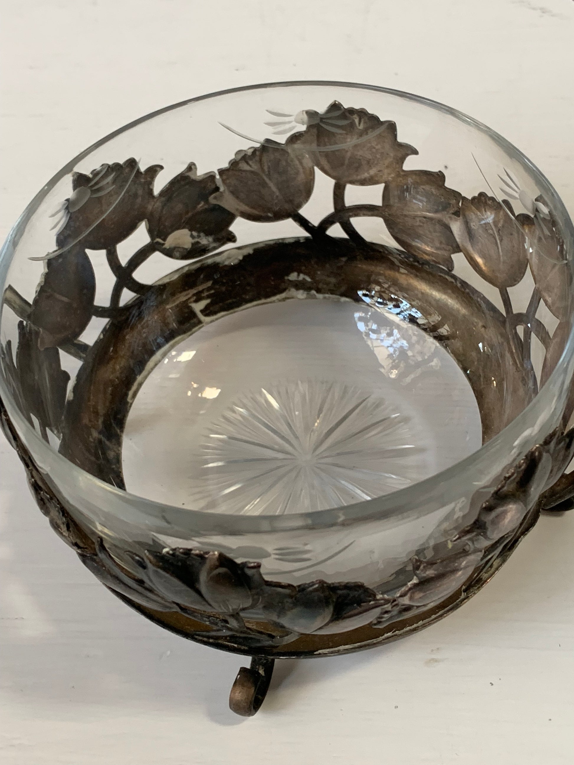 Cukiernica HEFRA Resovia z pokrywką posrebrzana ze szklanym wkładem.