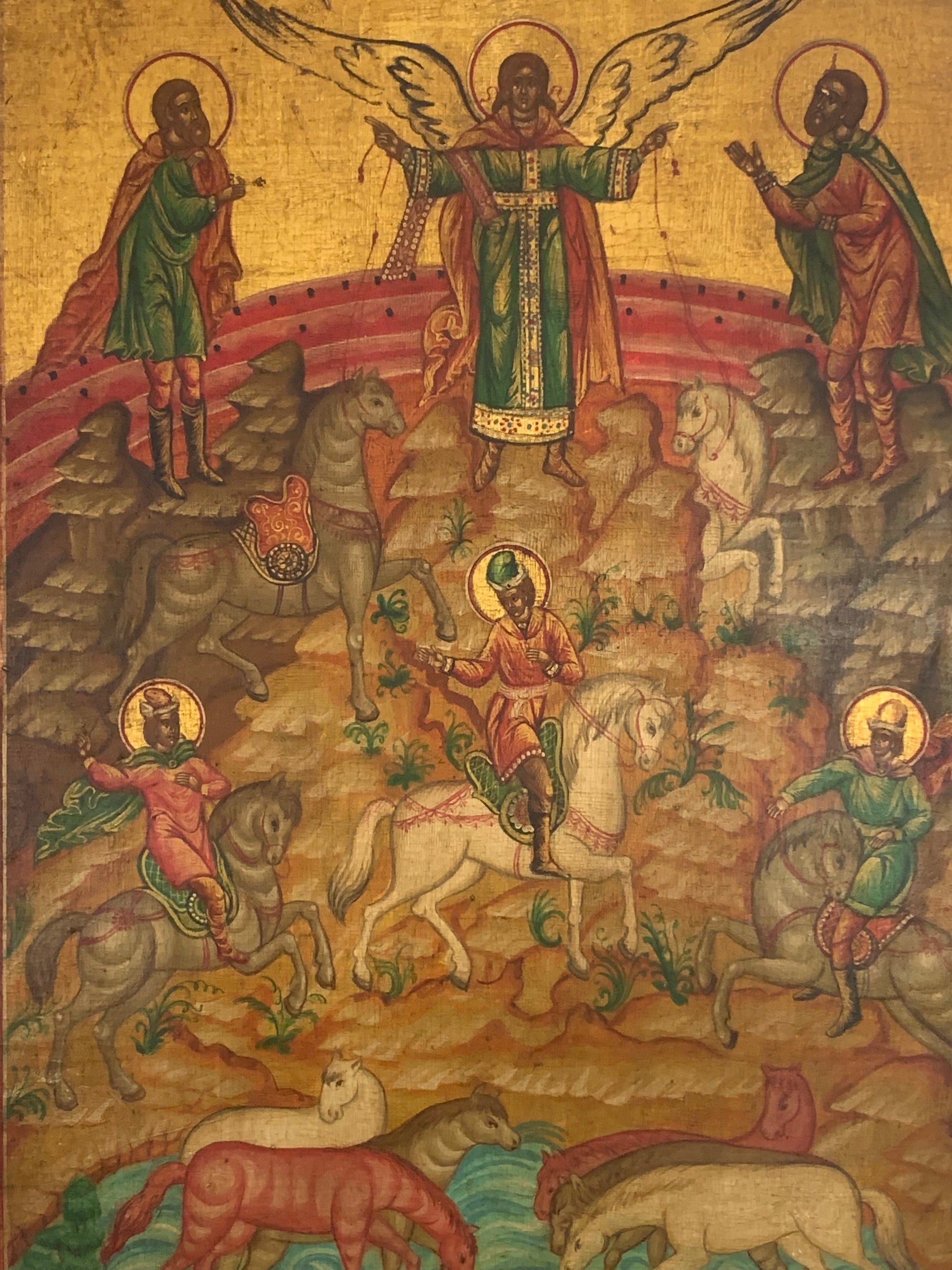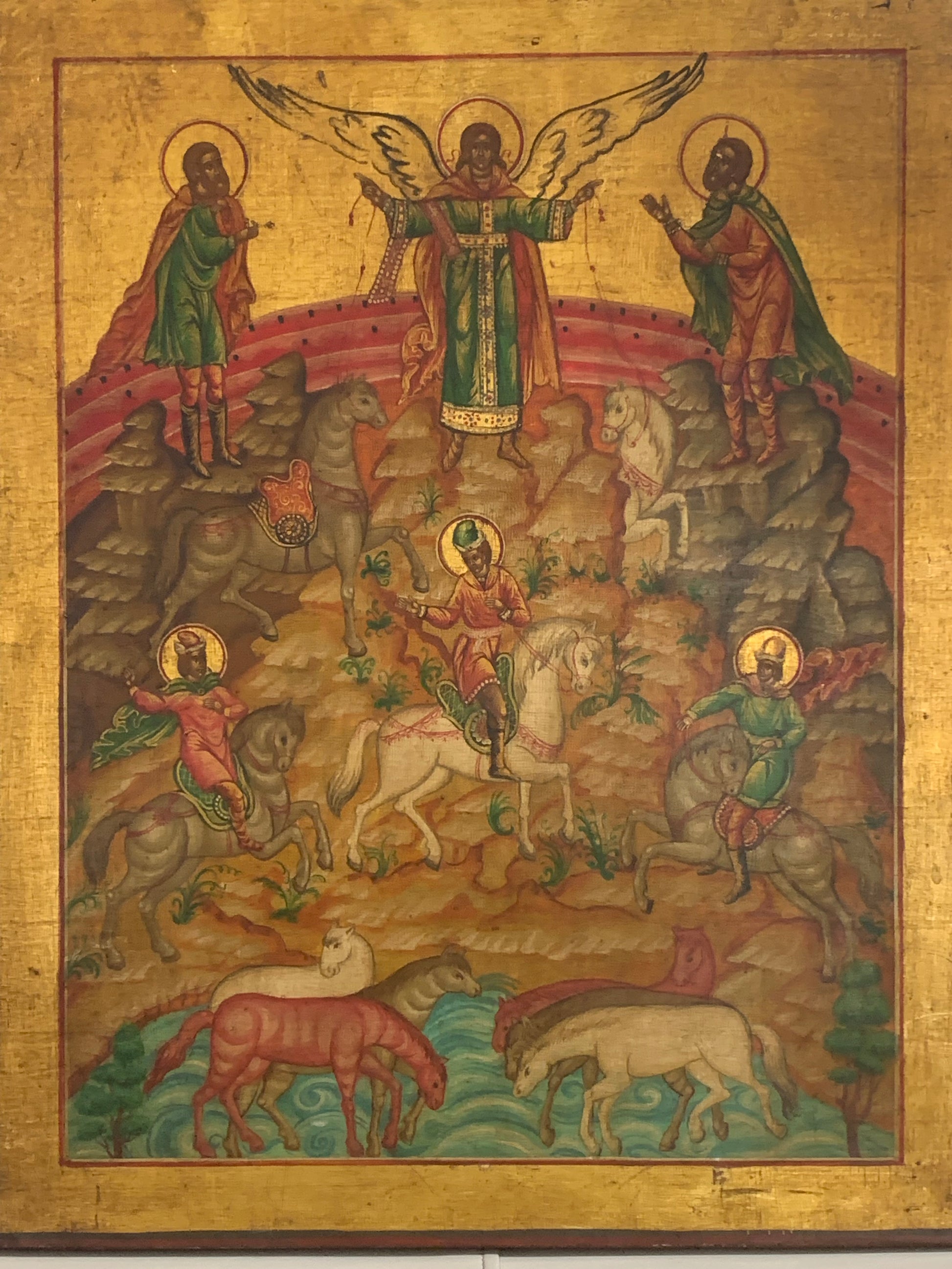 Duża ikona prawosławna "Borys i Gleb" XIX w.,