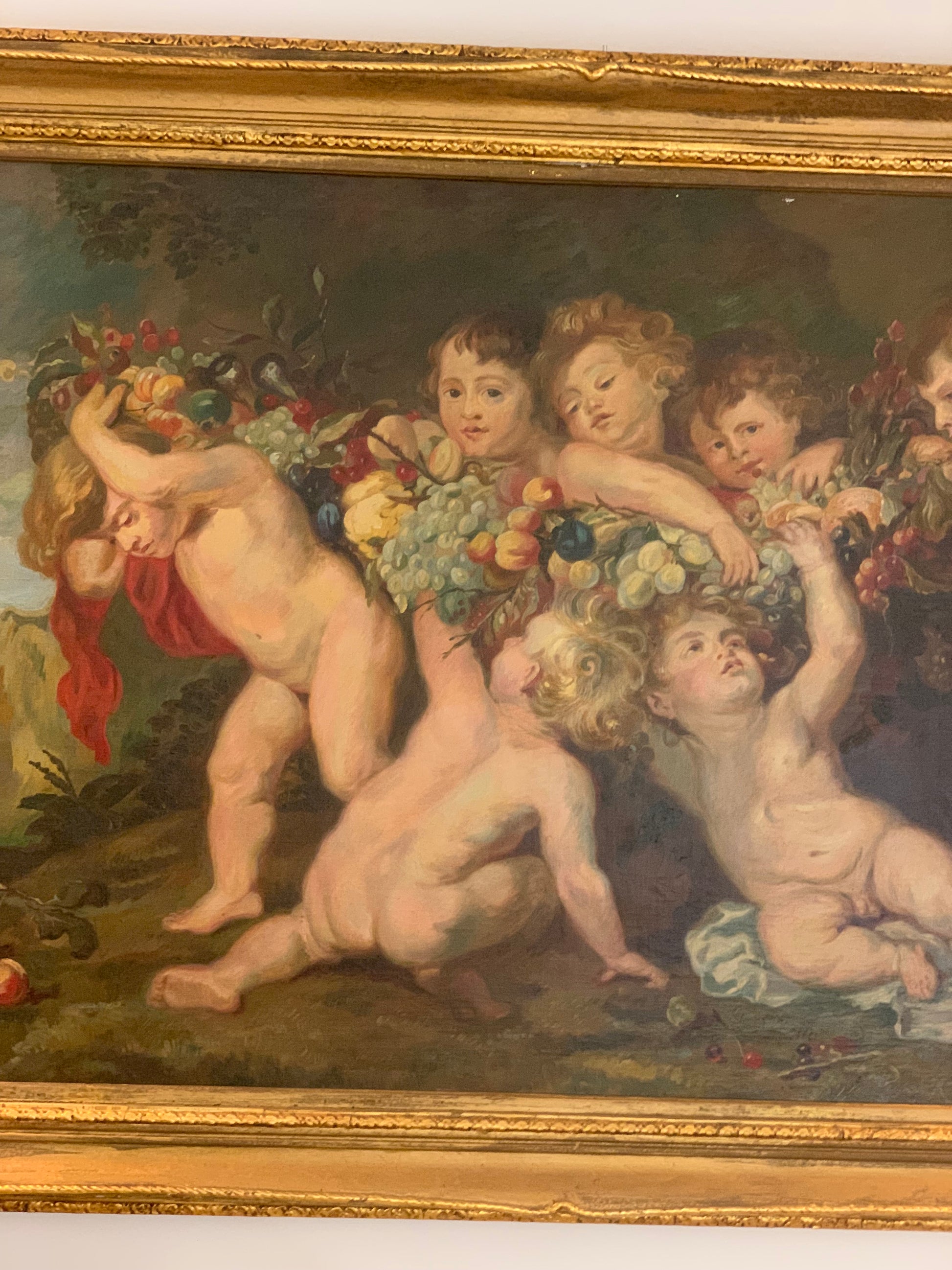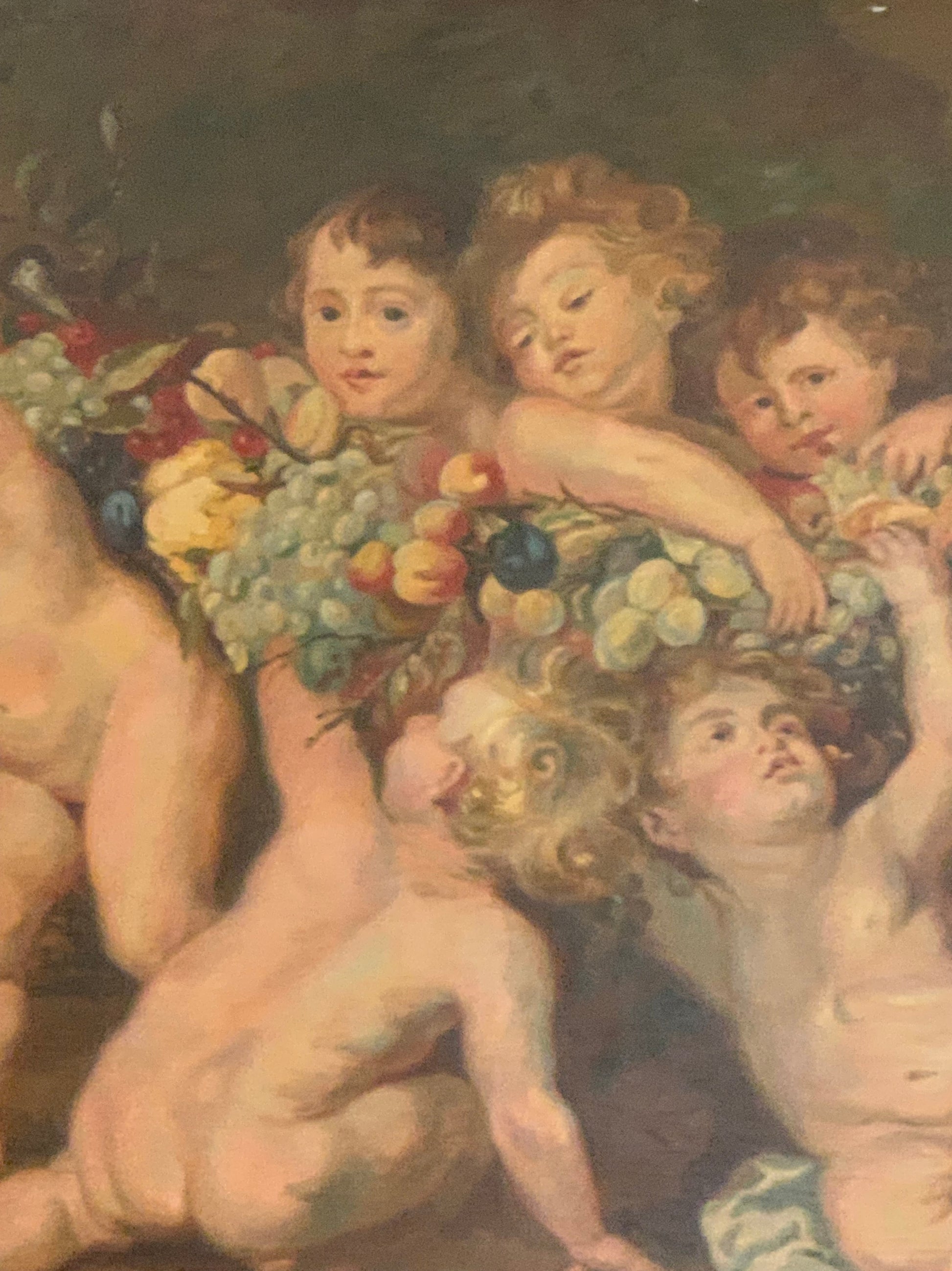 Duży obraz, kopia Rubensa "Putta z girlandami owoców"