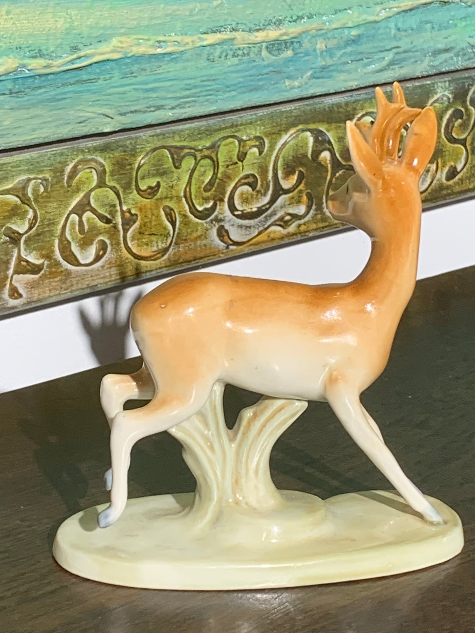 Figurka szkliwiona, porcelanowa jelonek, w dobrym stanie.