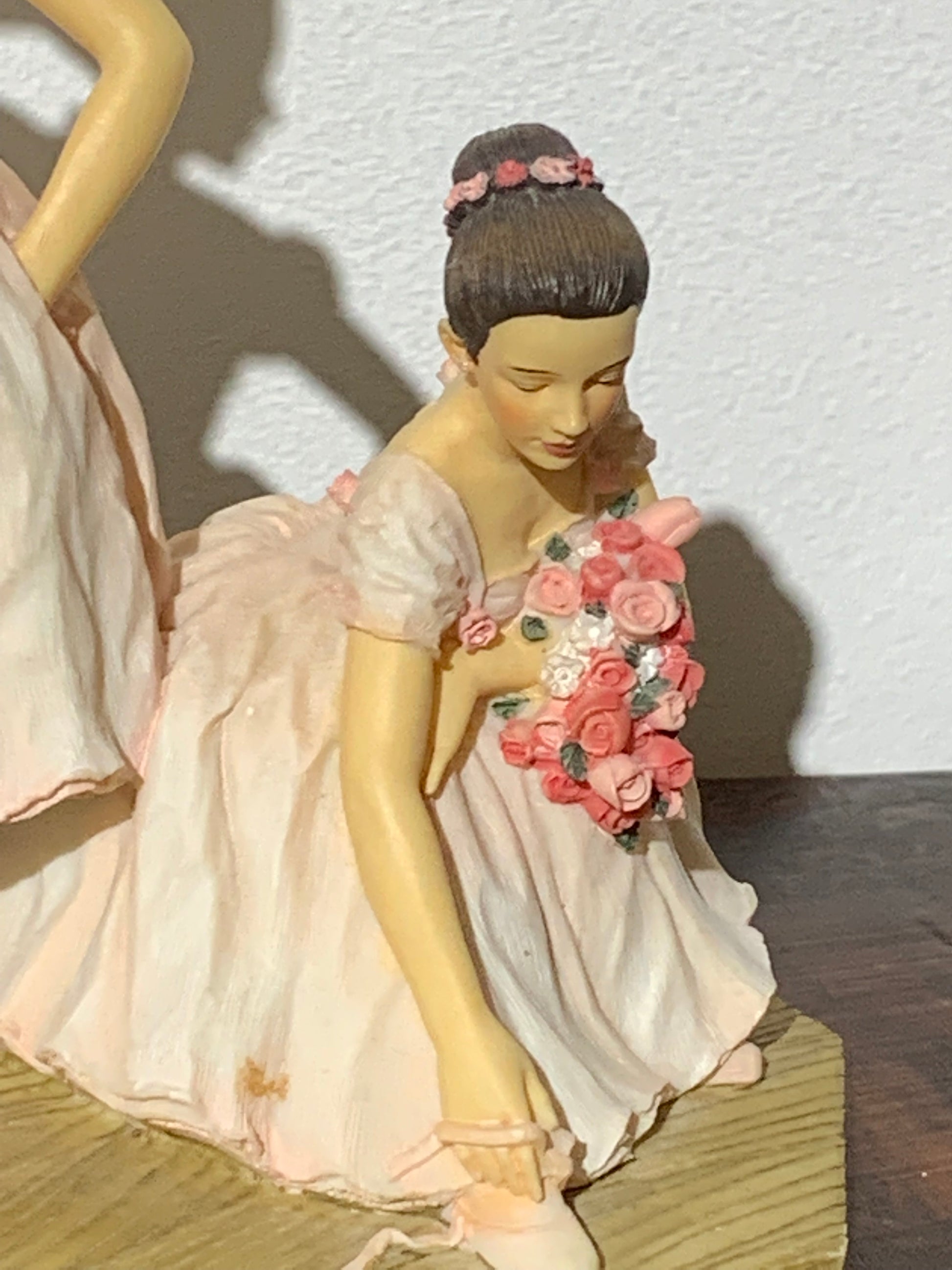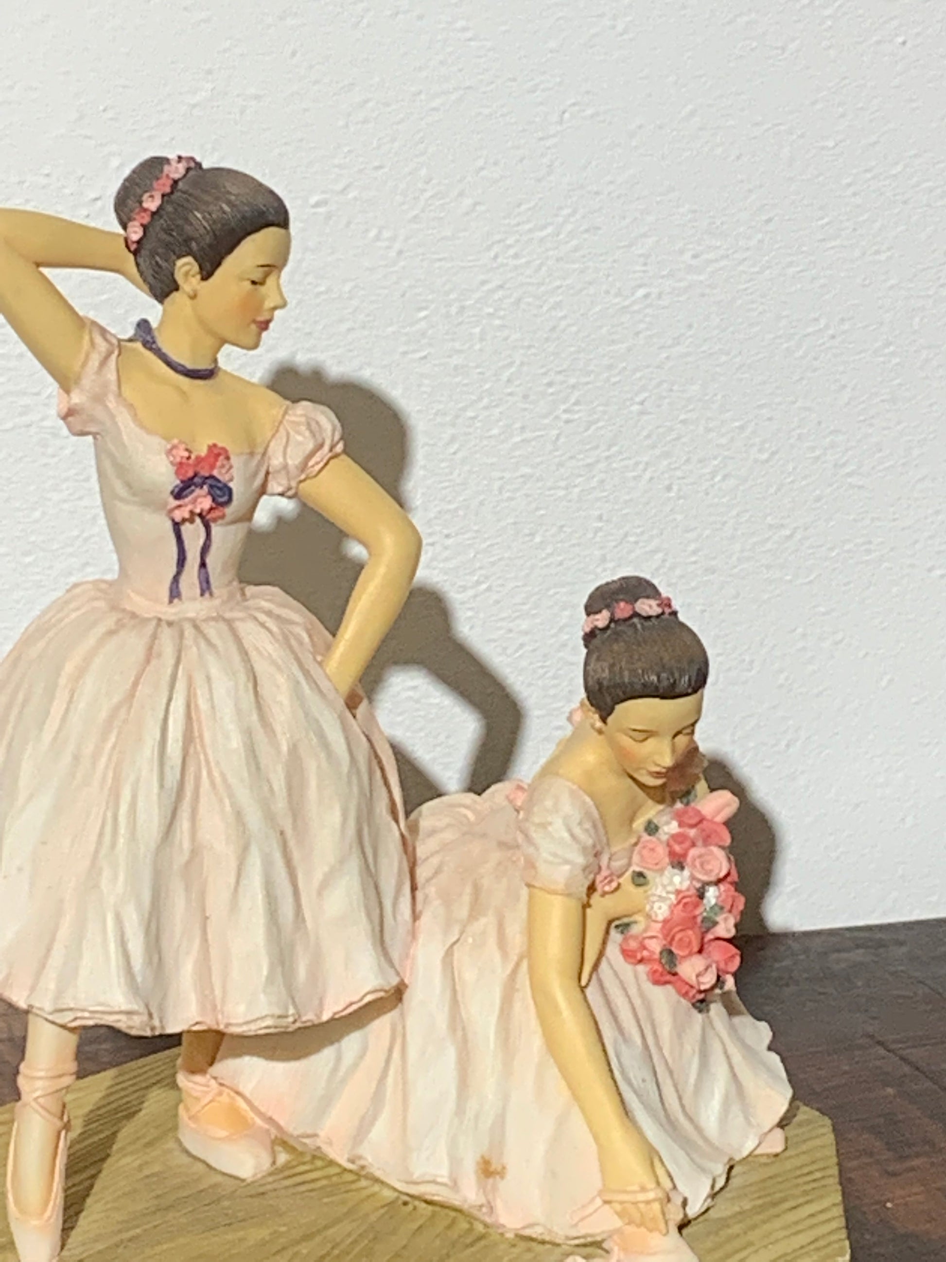Piękna figurka para baletnic The Leonarde Collection Figurine The Rehearsal by Christine Haworth. Precyzyjne wykonanie, śliczne barwy różu.
