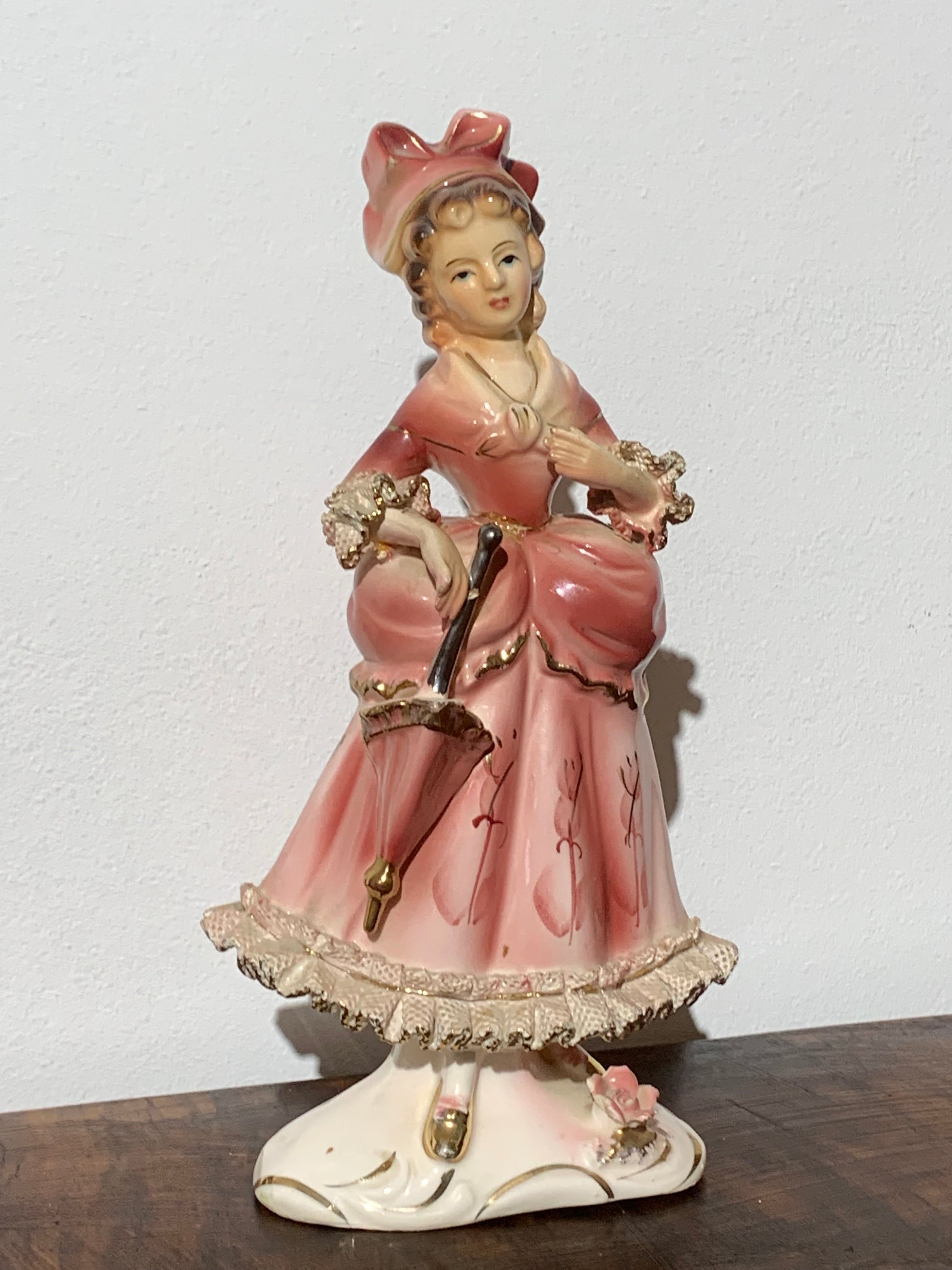 Figurka porcelanowa, biskwitowa Vintage, wiktoriańskie damy w kapeluszach, lekka, japońska porcelana. Cena za 1 figurkę.