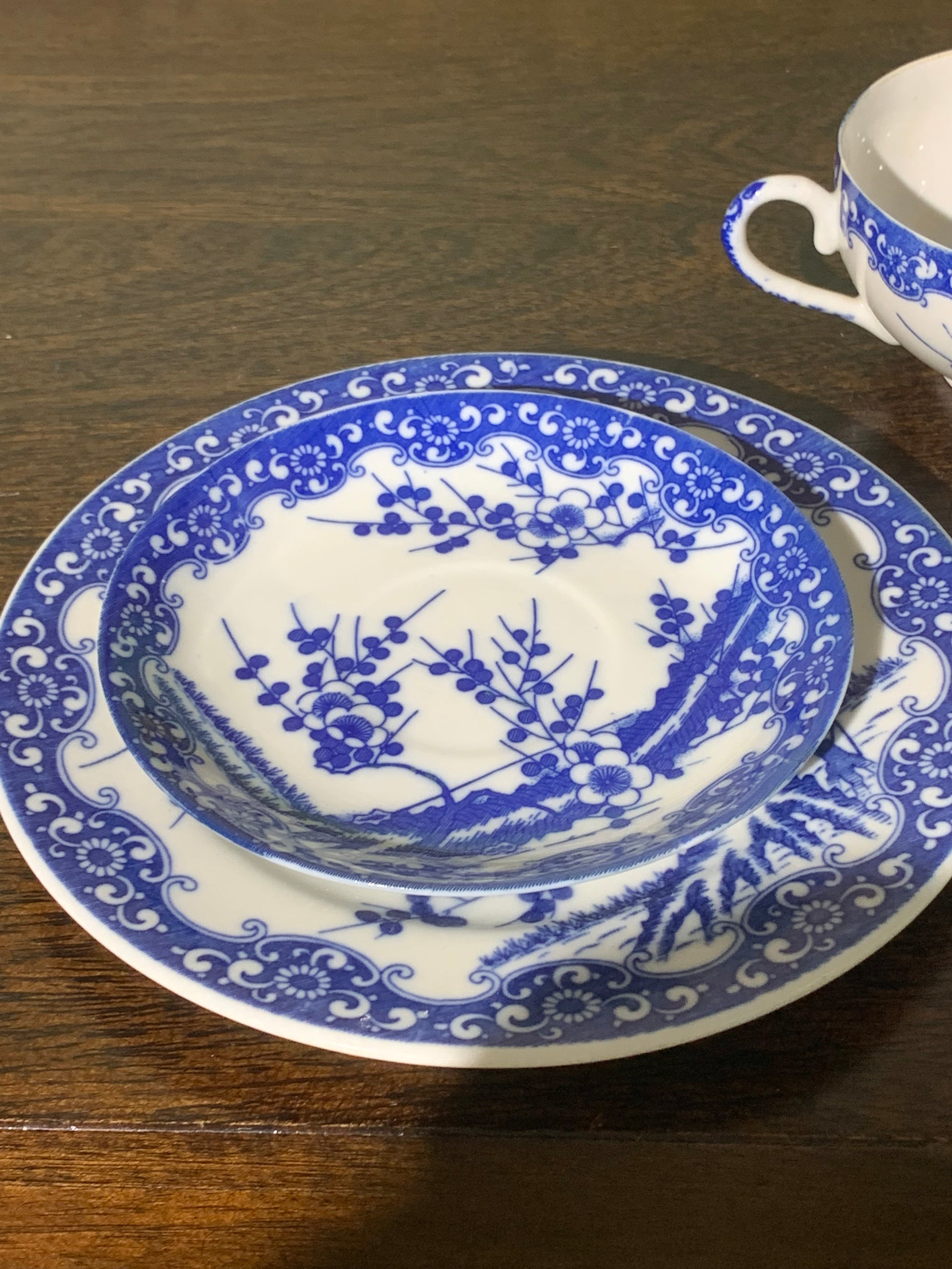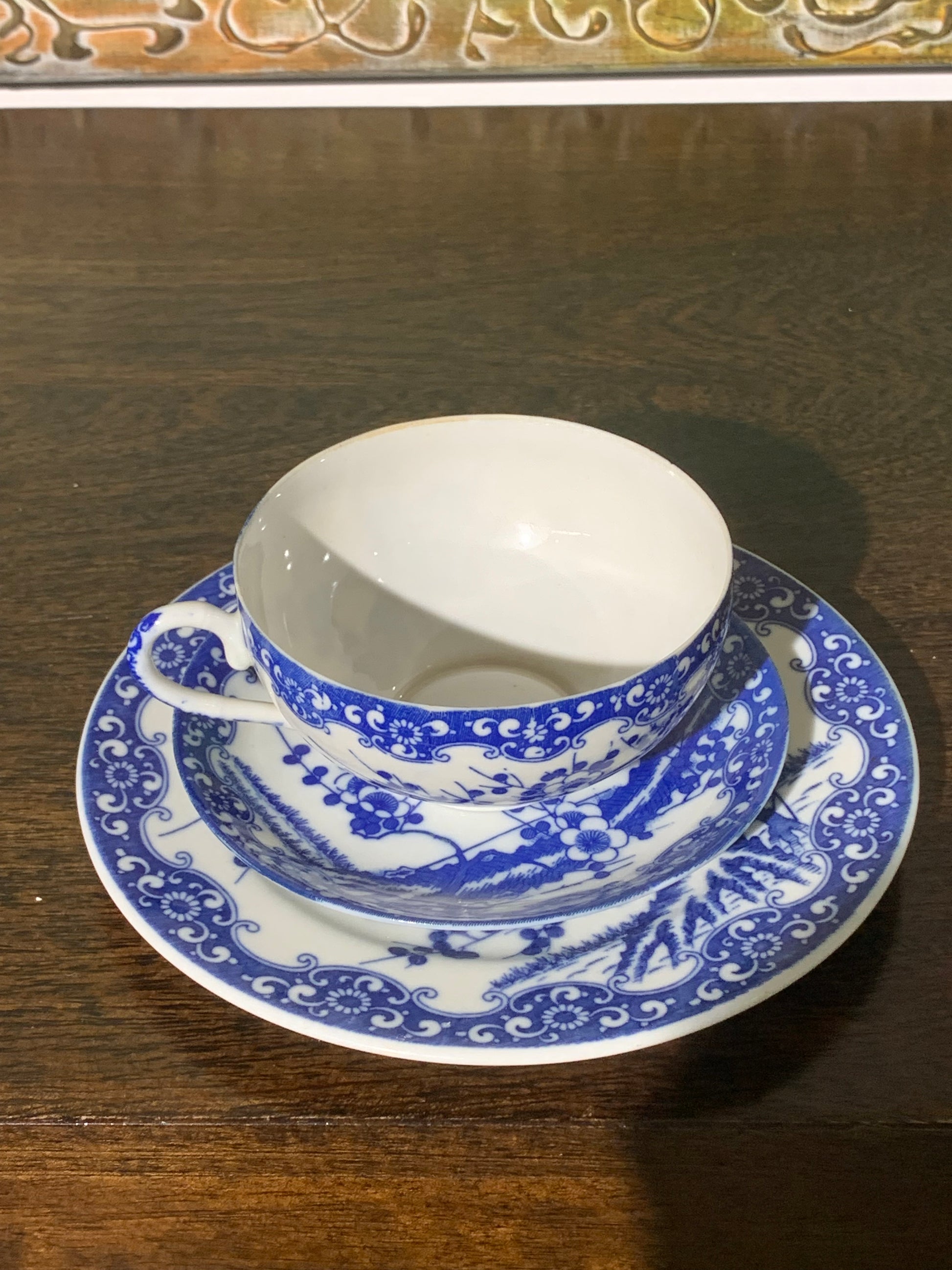 Filiżanka trójka, japońska porcelana biało kobaltowa, sygnowana.