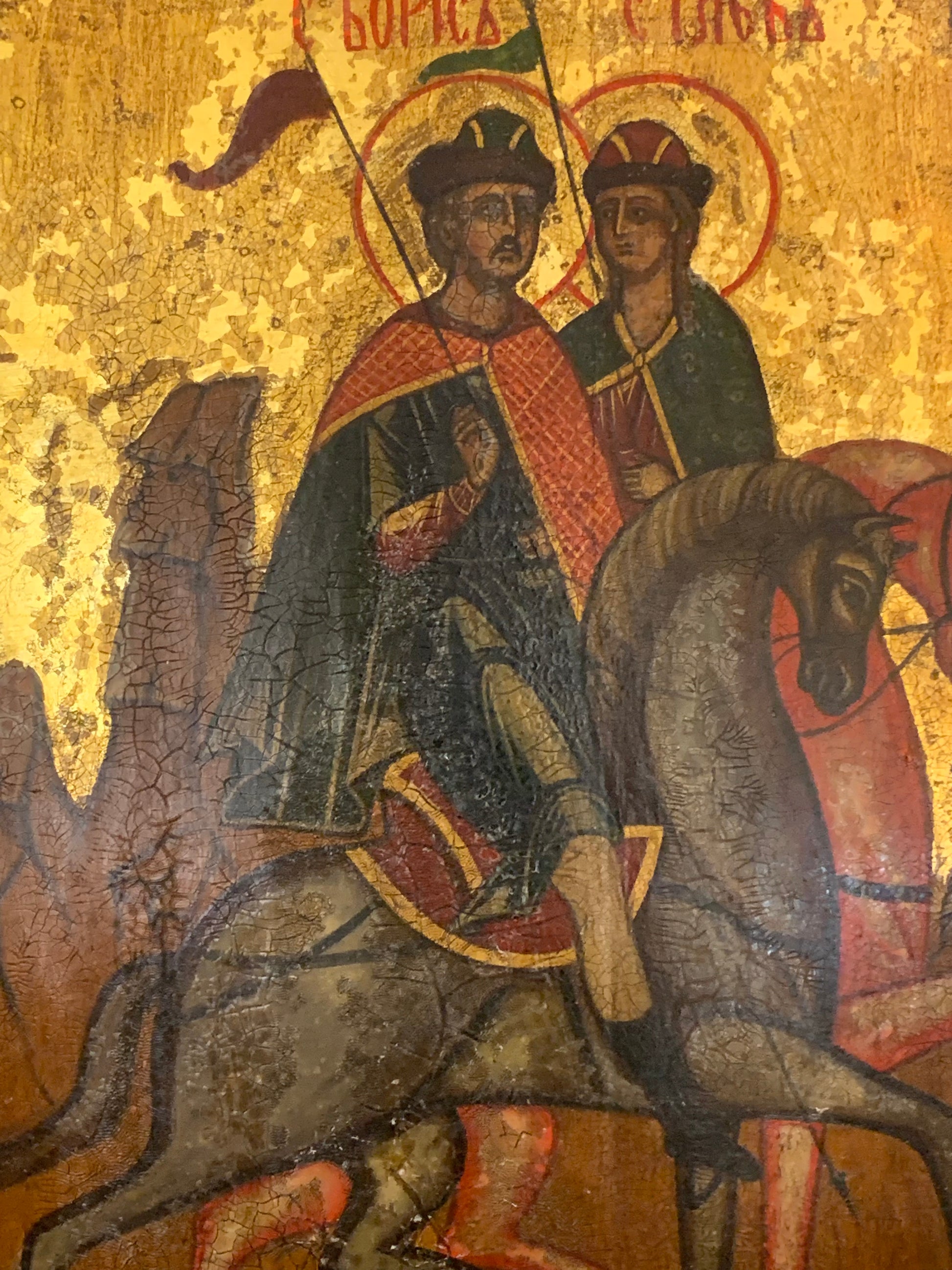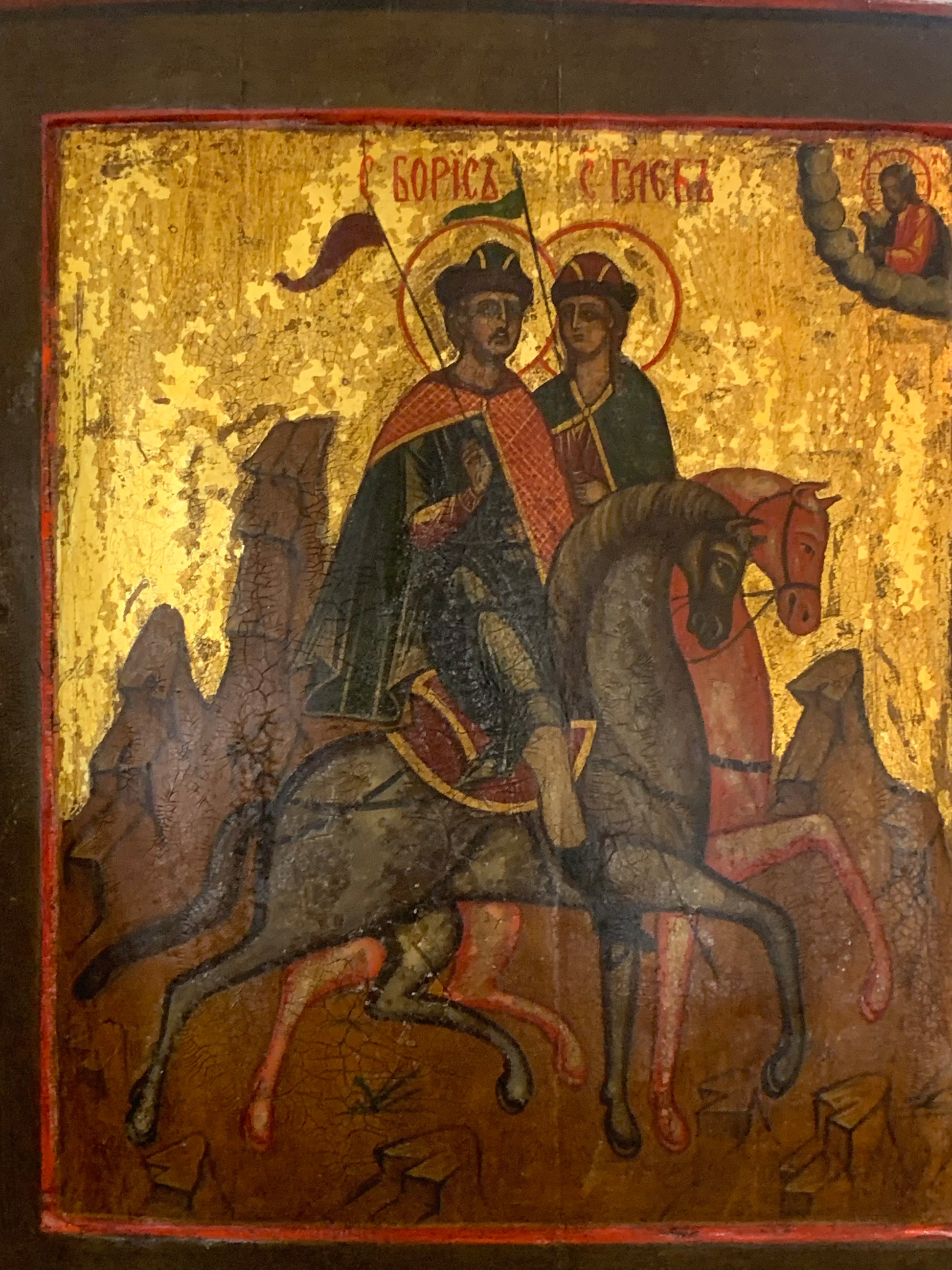 Ikona prawosławna Święci Borys i Gleb XIX w. Technika: tempera, deska.