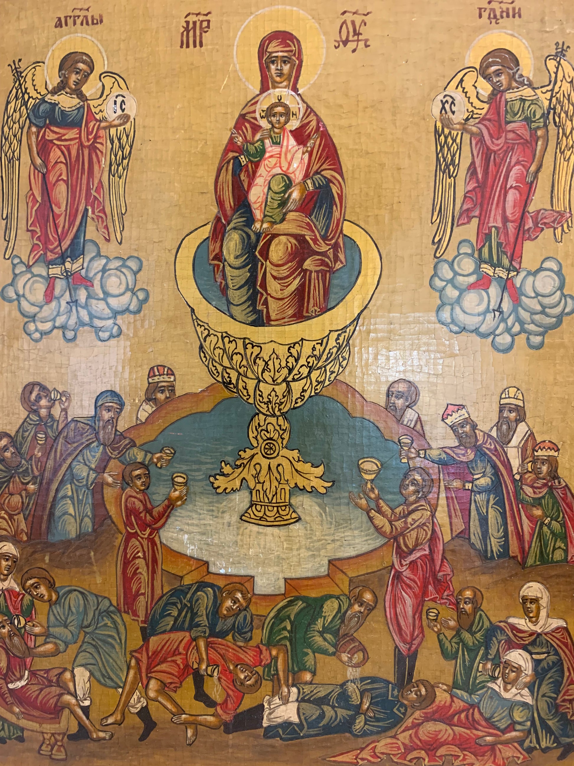 Ikona prawosławna "Źródło życia", technika: deska, tempera z lat 60ch XX w. Wileńska szkoła pisania ikon.