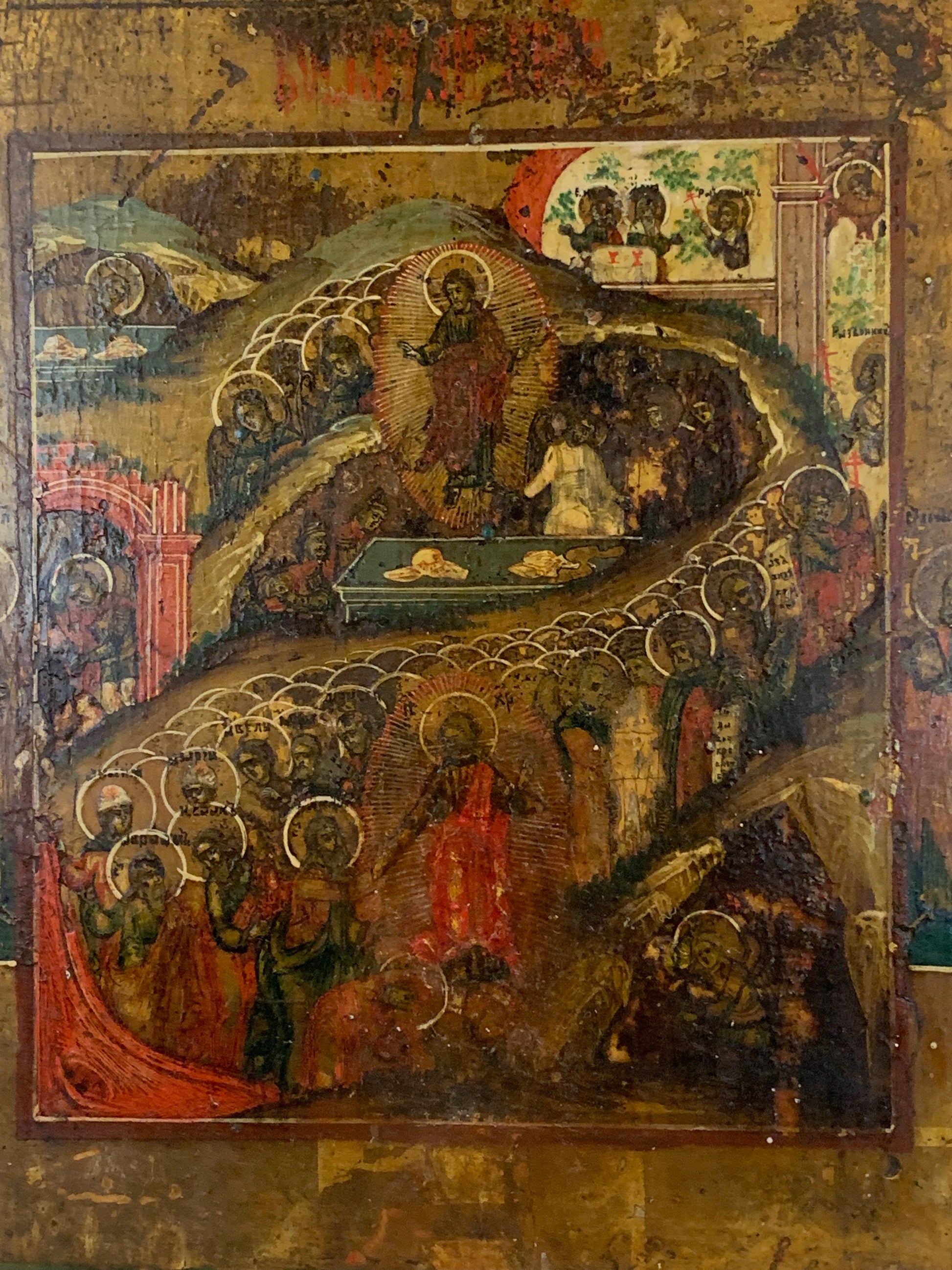 Ikona prawosławna przedstawiająca Zstąpienie Chrystusa do Otchłani (Anastasis), jest centralną sceną z ikony Prazdniki XIX w.