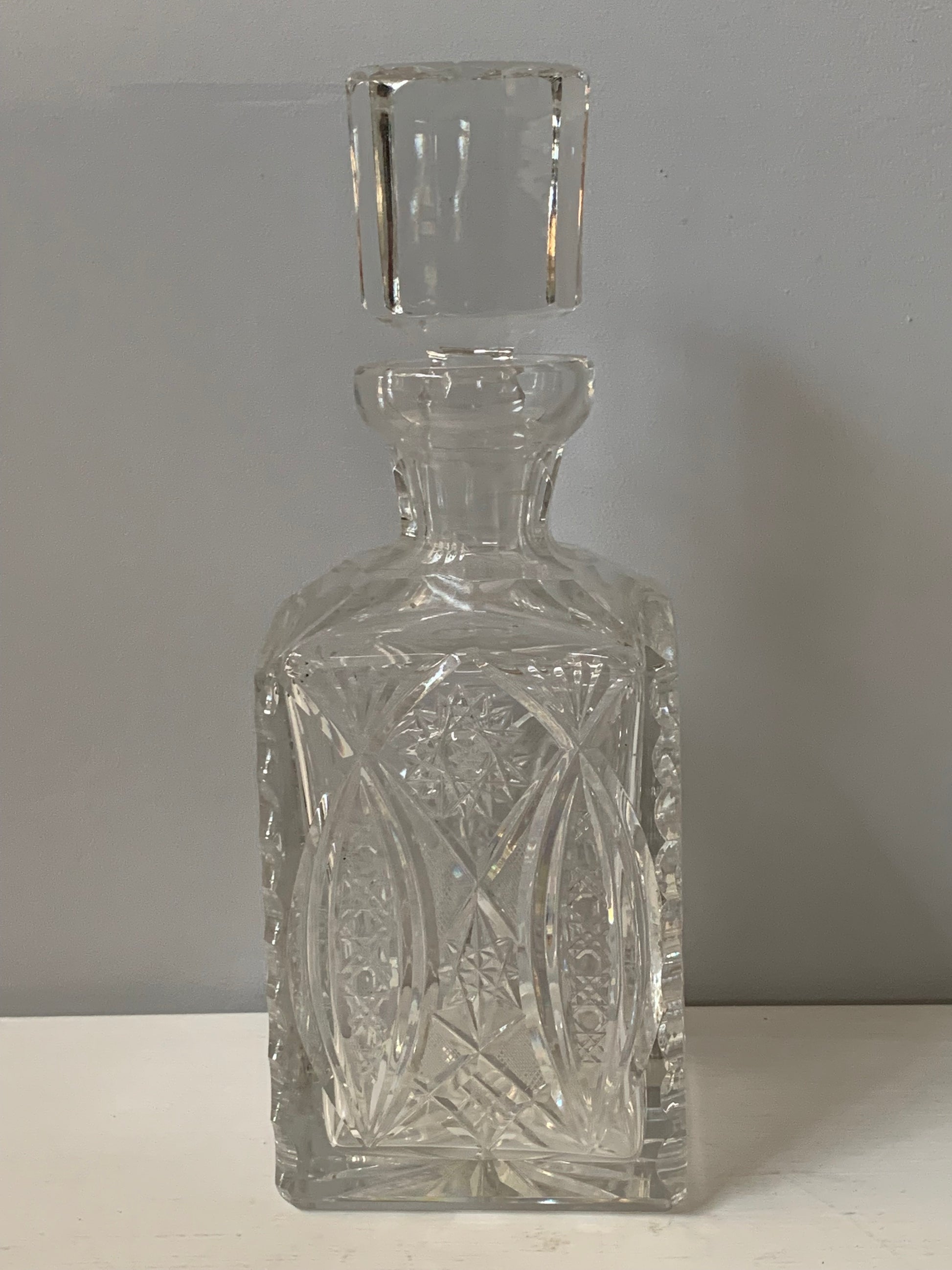 Karafka kryształowa z korkiem z lat 80-ch w dobrym stanie bez zarysowań.