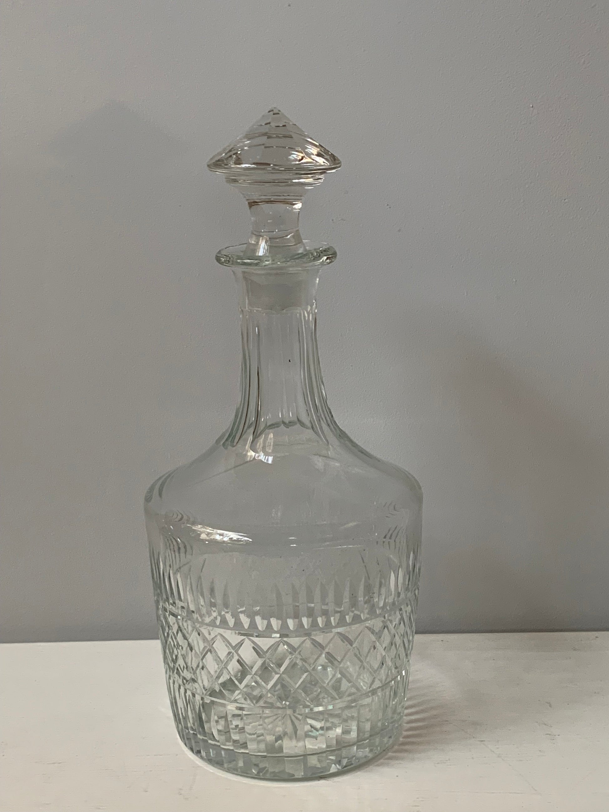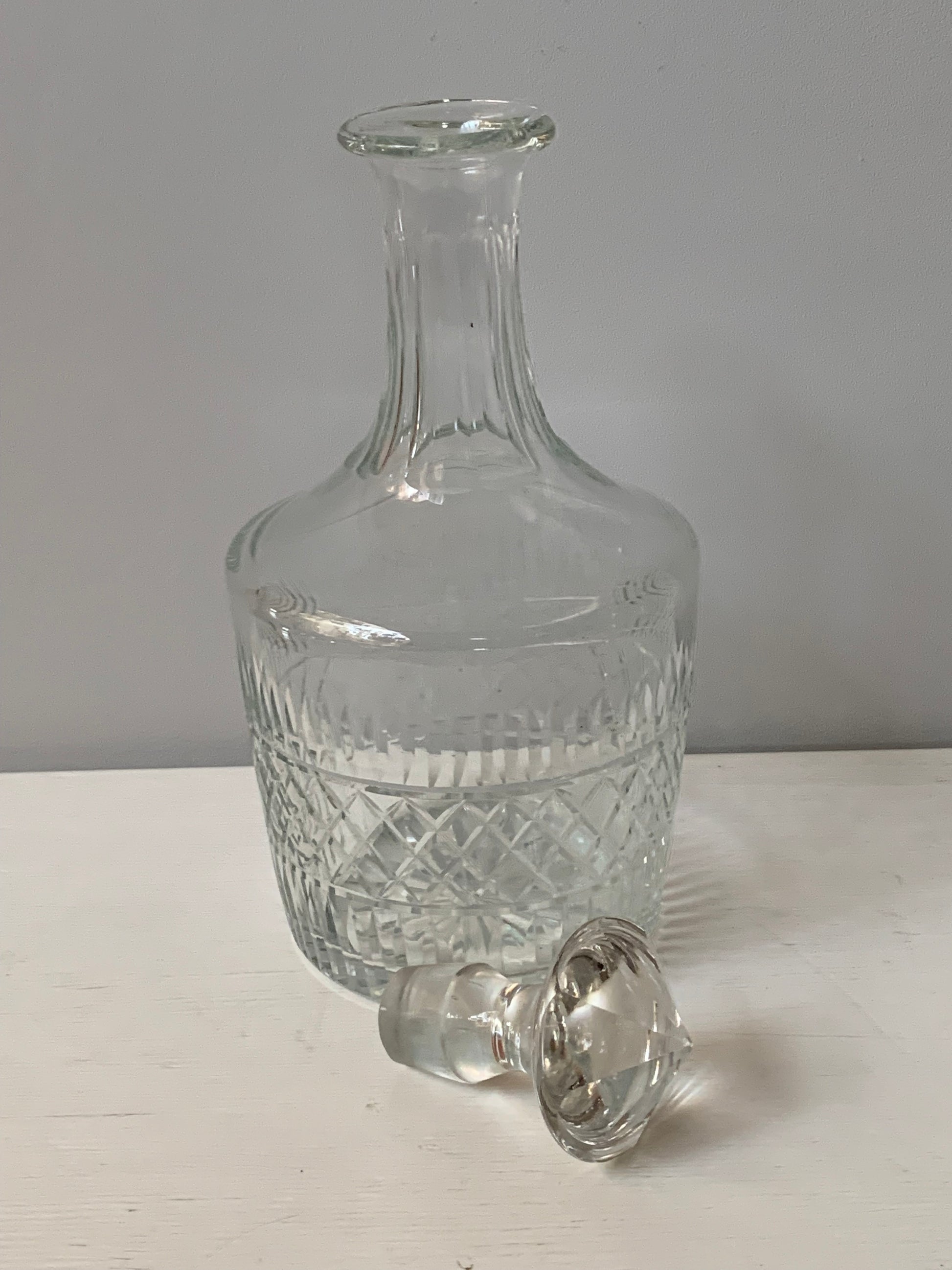 Karafka kryształowa zabytkowa z korkiem, oryginalny wzór.