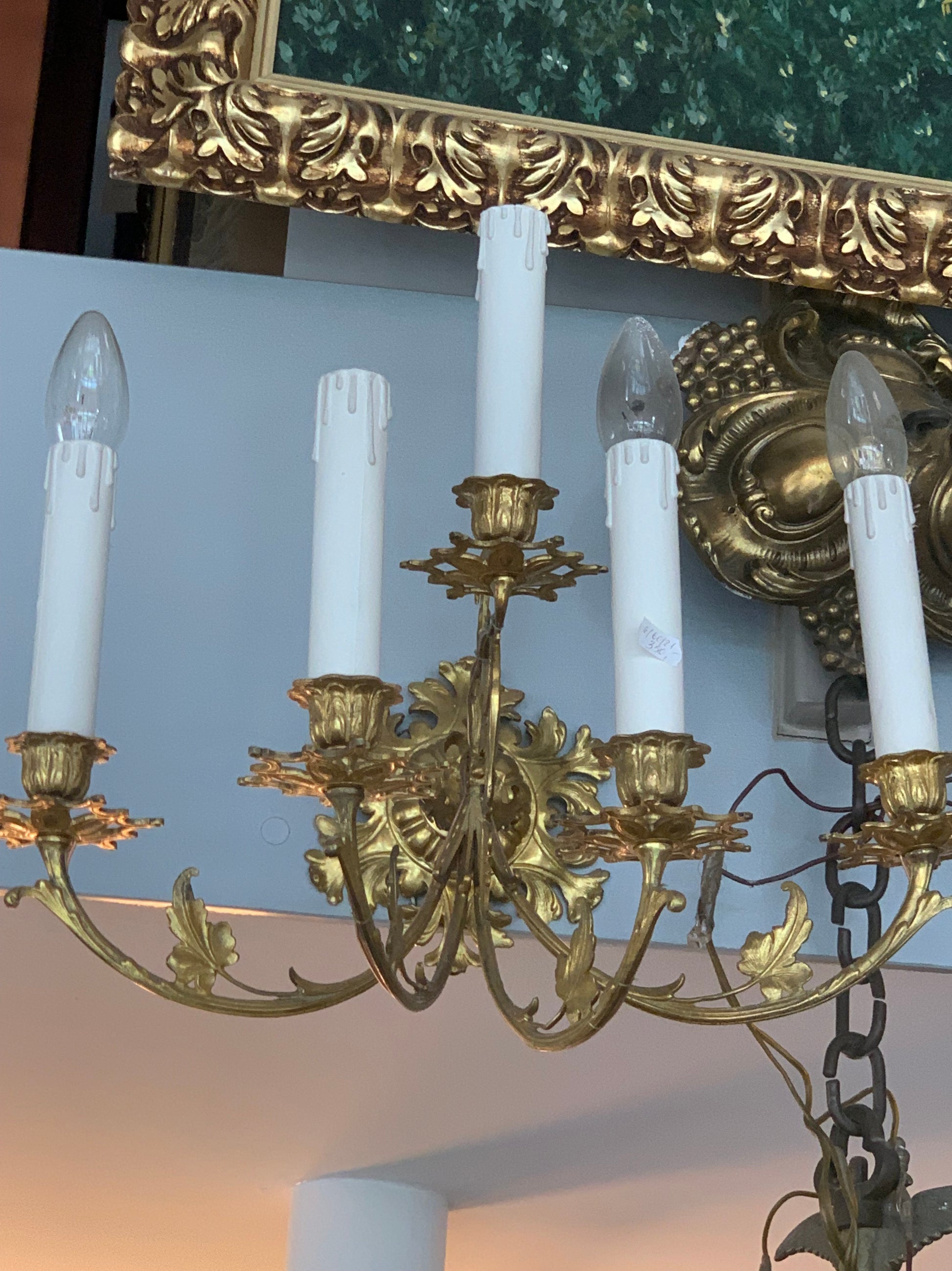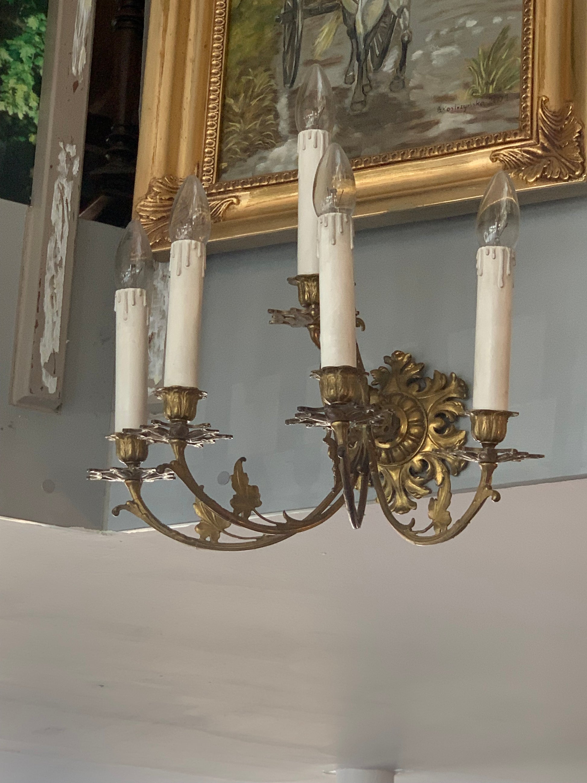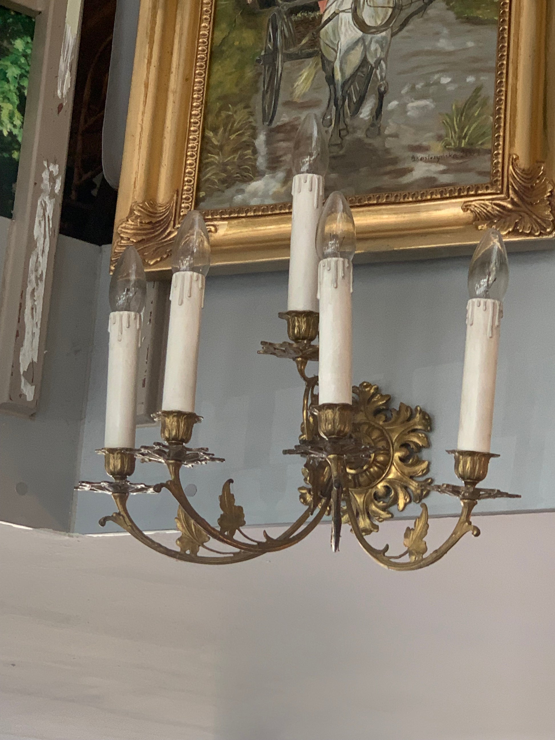 Kinkiet stylowy z mosiądzu, odlew z lat 80-ch, 5 żarówek.