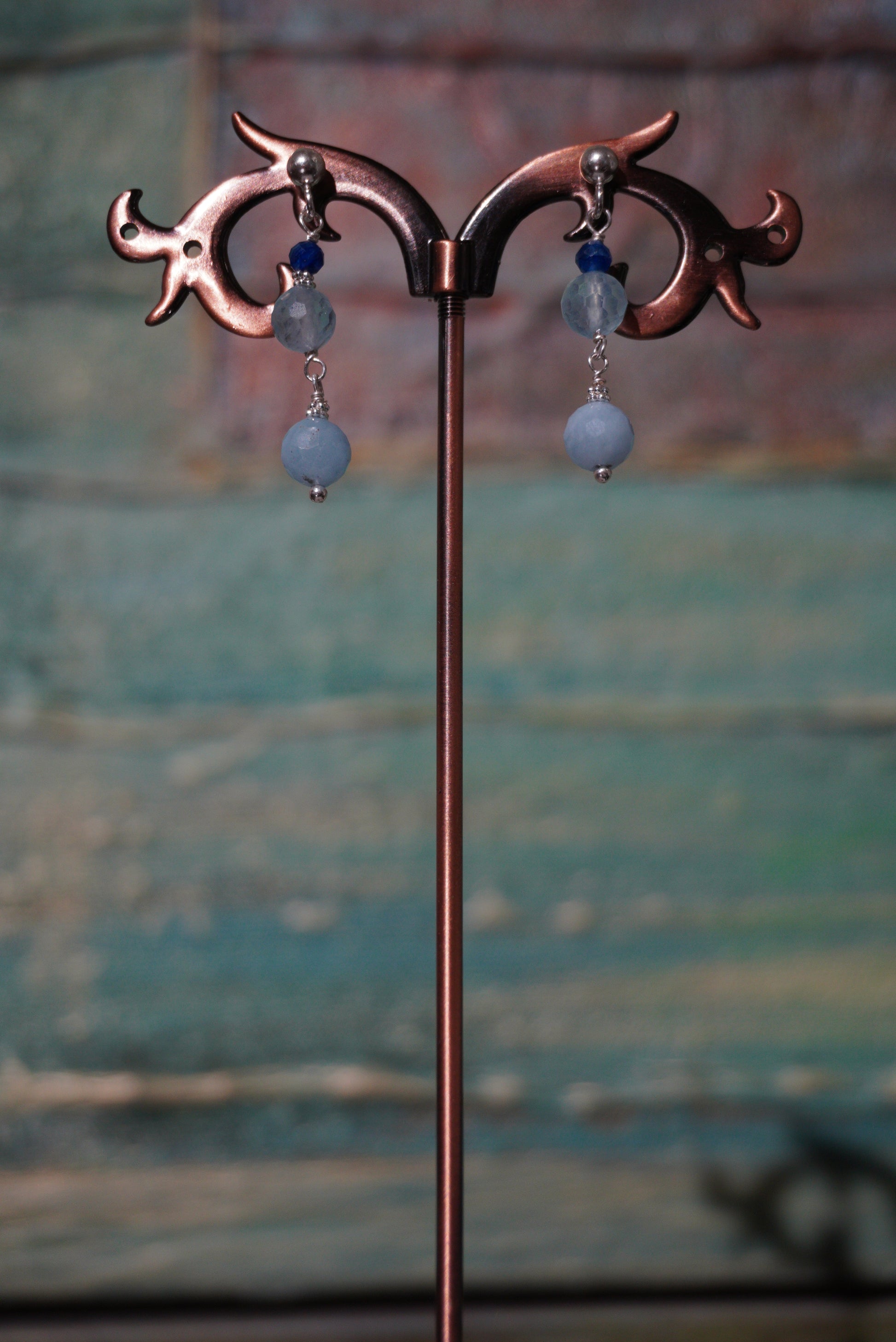 Kolczyki akwamaryn, kianit, srebro 925