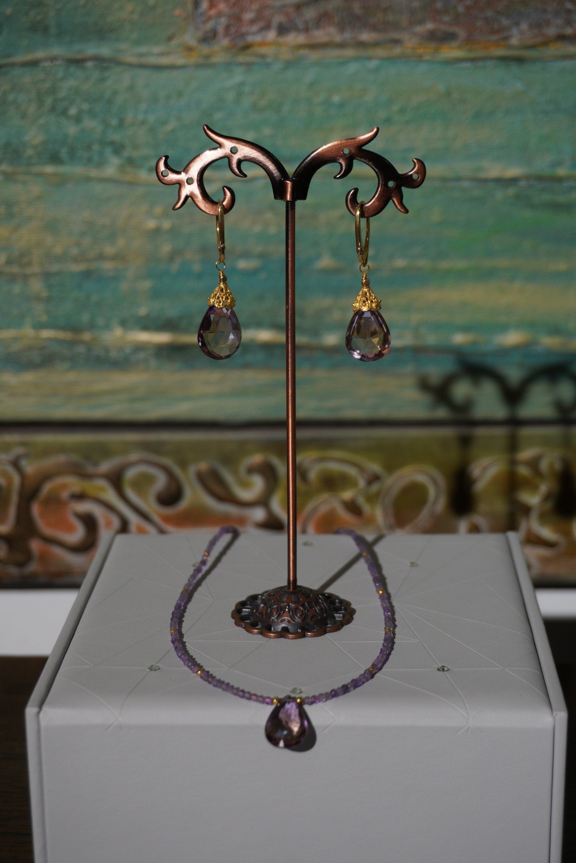 Kolczyki ametrin (ametyst, cytryn), srebro pozłacane 925