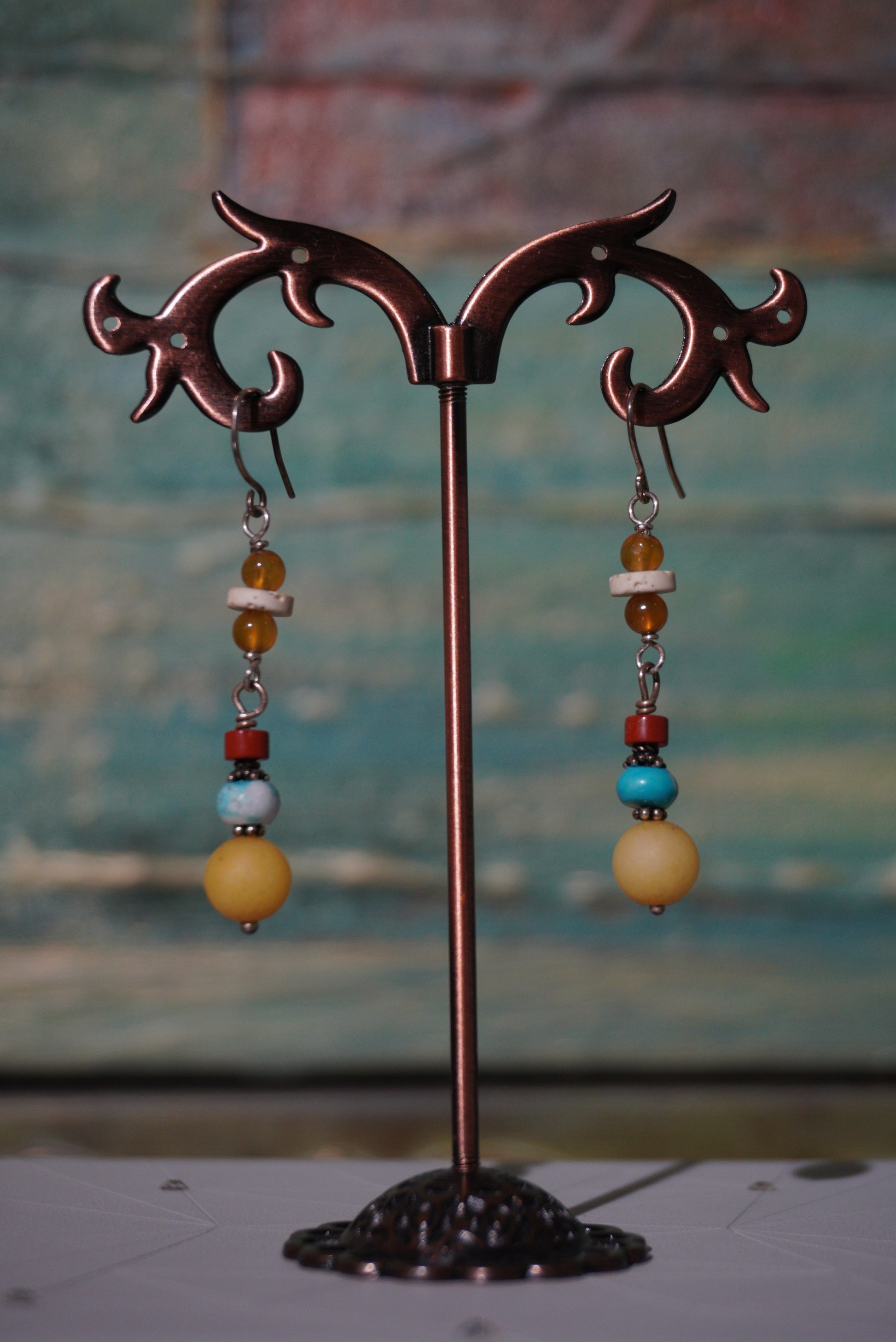 Kolczyki jaspis, bursztyn, koral, srebro 925
