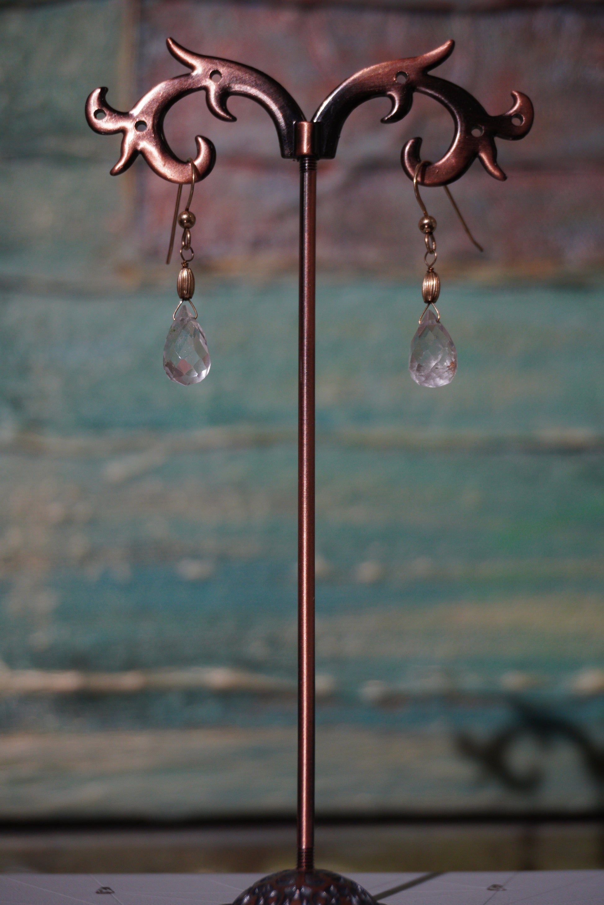 Kolczyki kryształ, srebro pozłacane 925