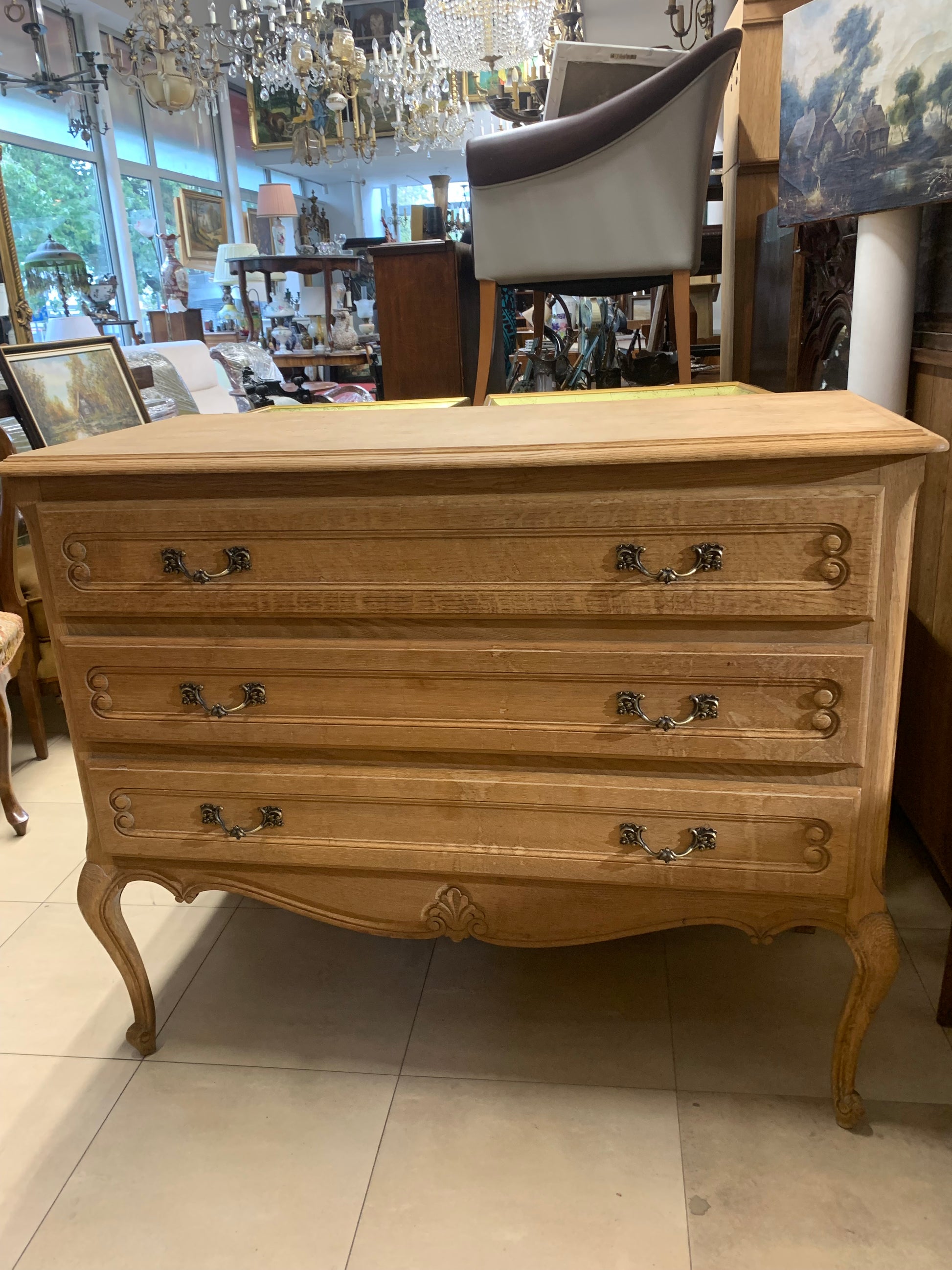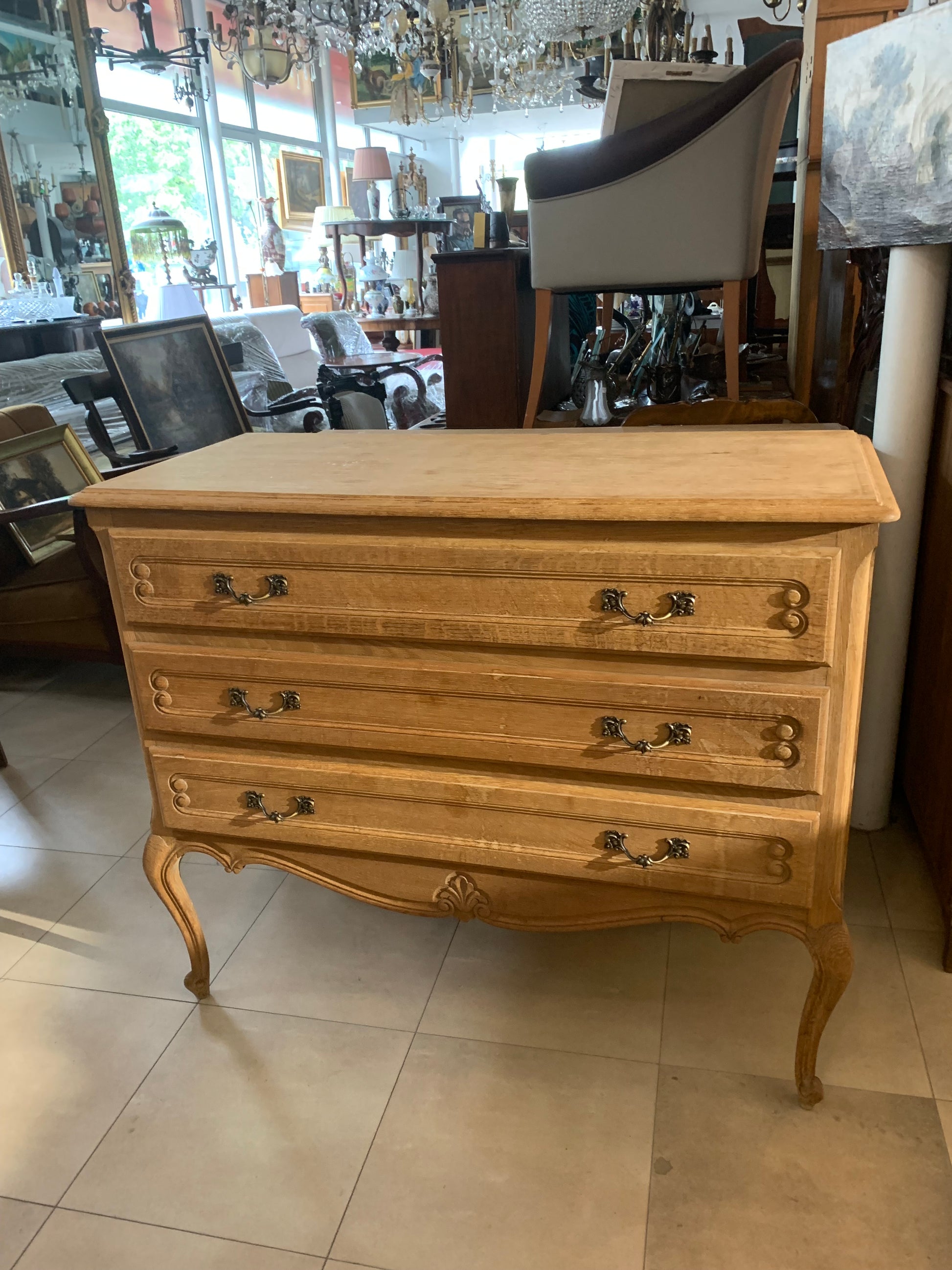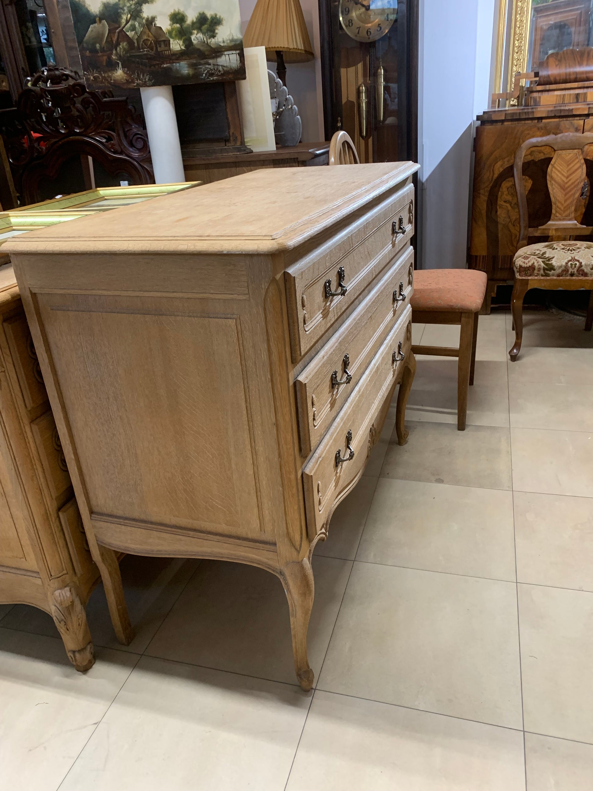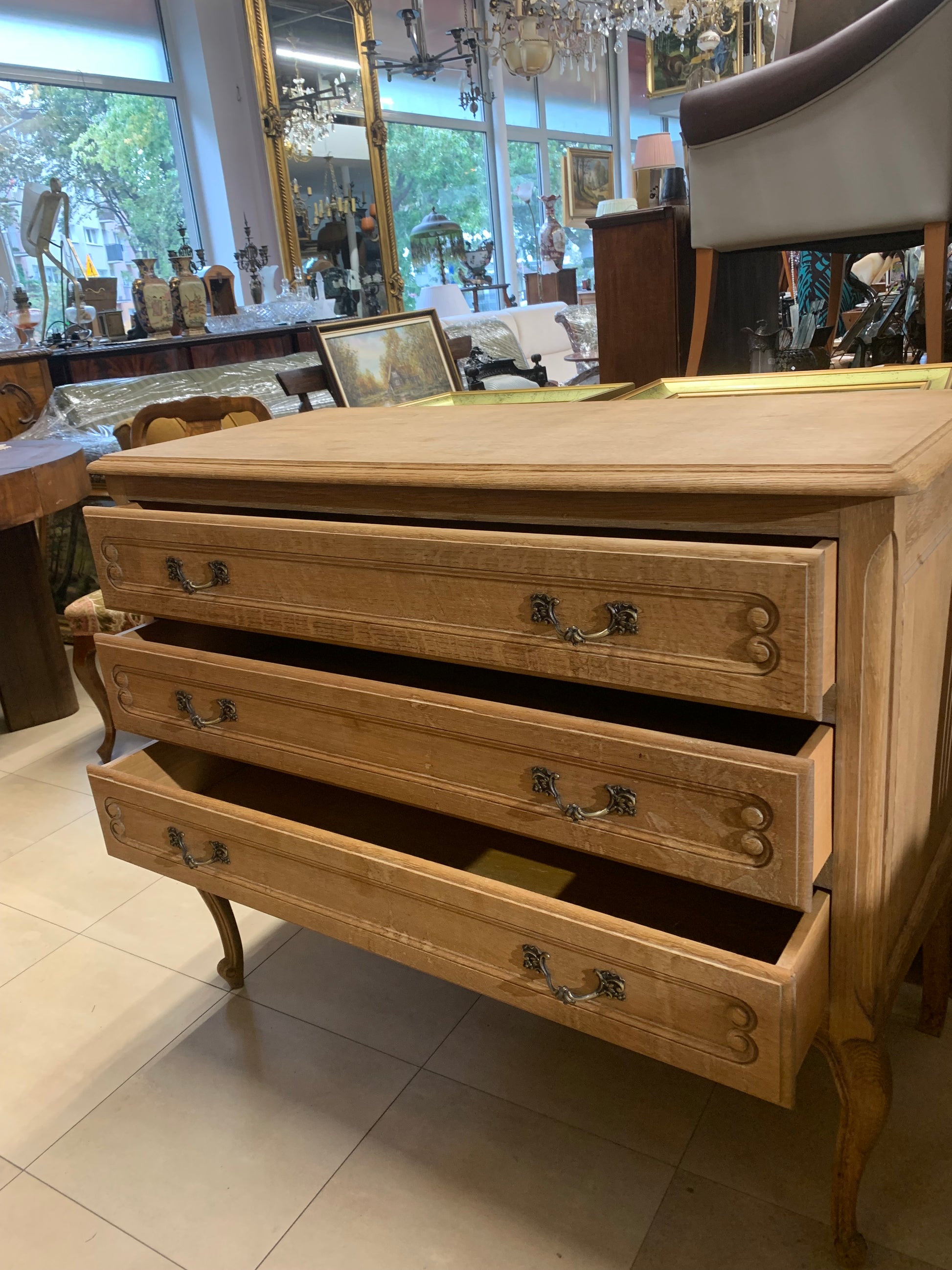 Komoda stylowa z surowej dębiny z szufladami, ozdobiona rzeźbieniami i mosiężnymi uchwytami. Wymiary: 110 x 52 cm wysokość 93 cm
