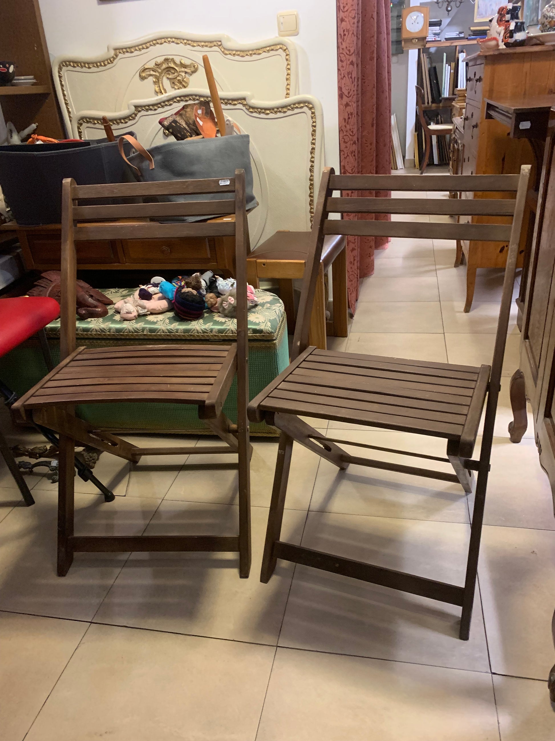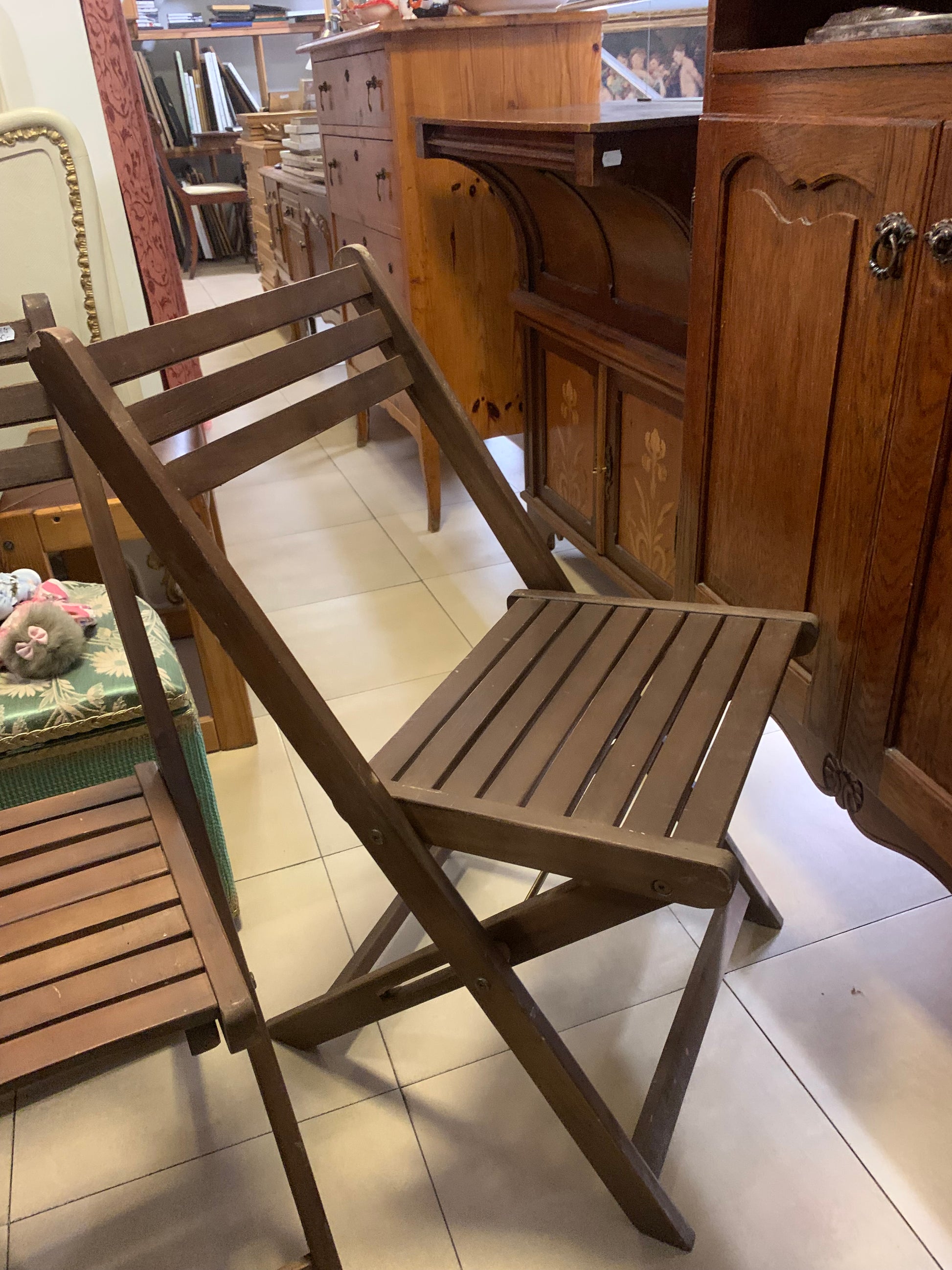 Krzesła ogrodowe rozkładane, z buczyny. Stan: dobry, do odświeżenia. W ofercie są 3 krzesła.