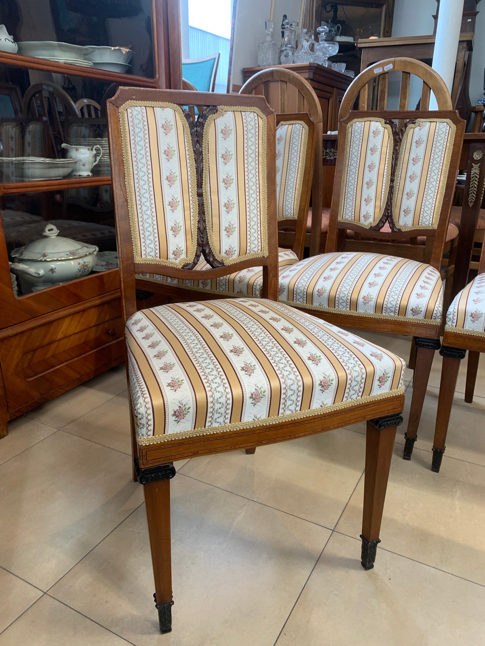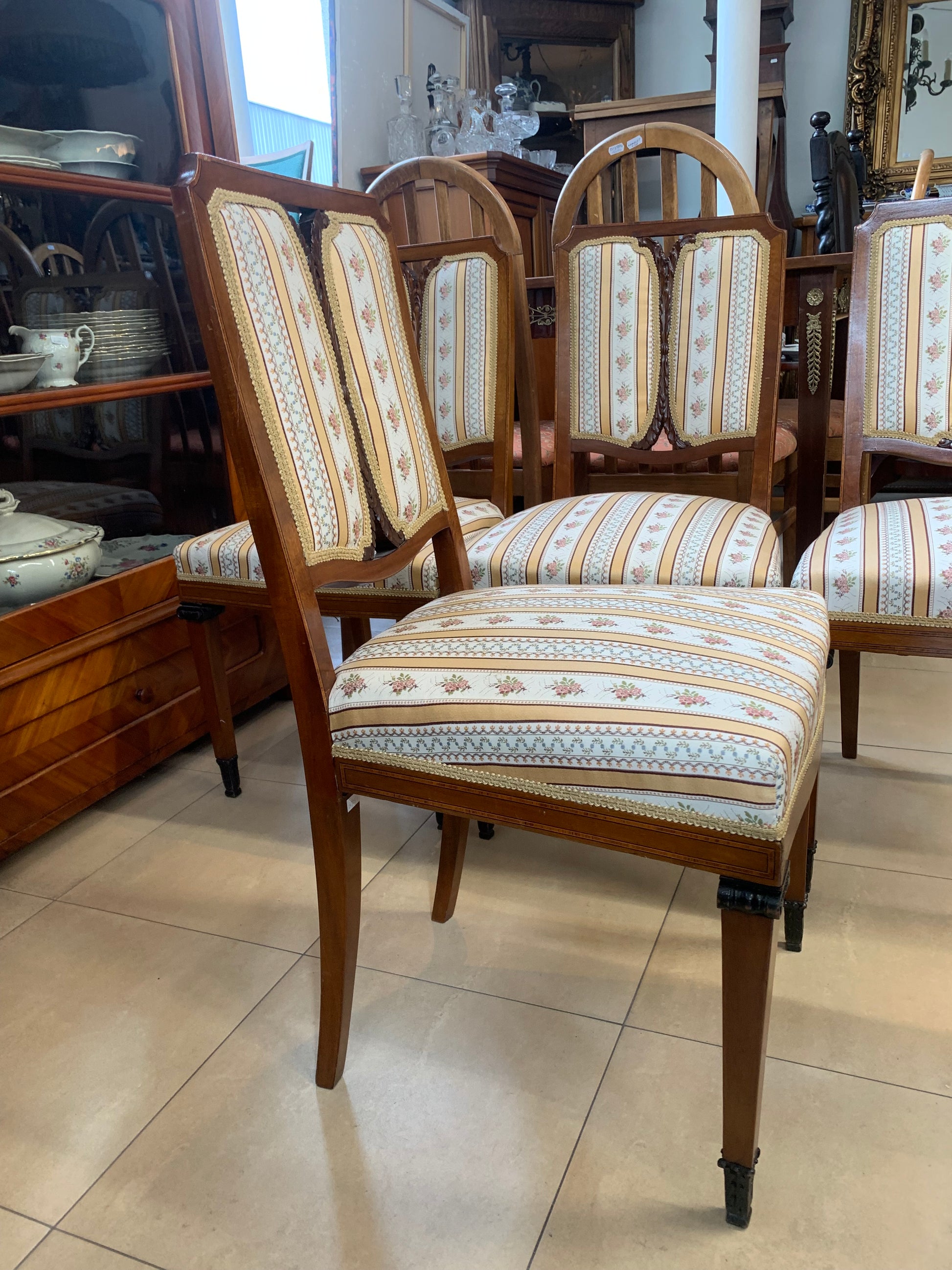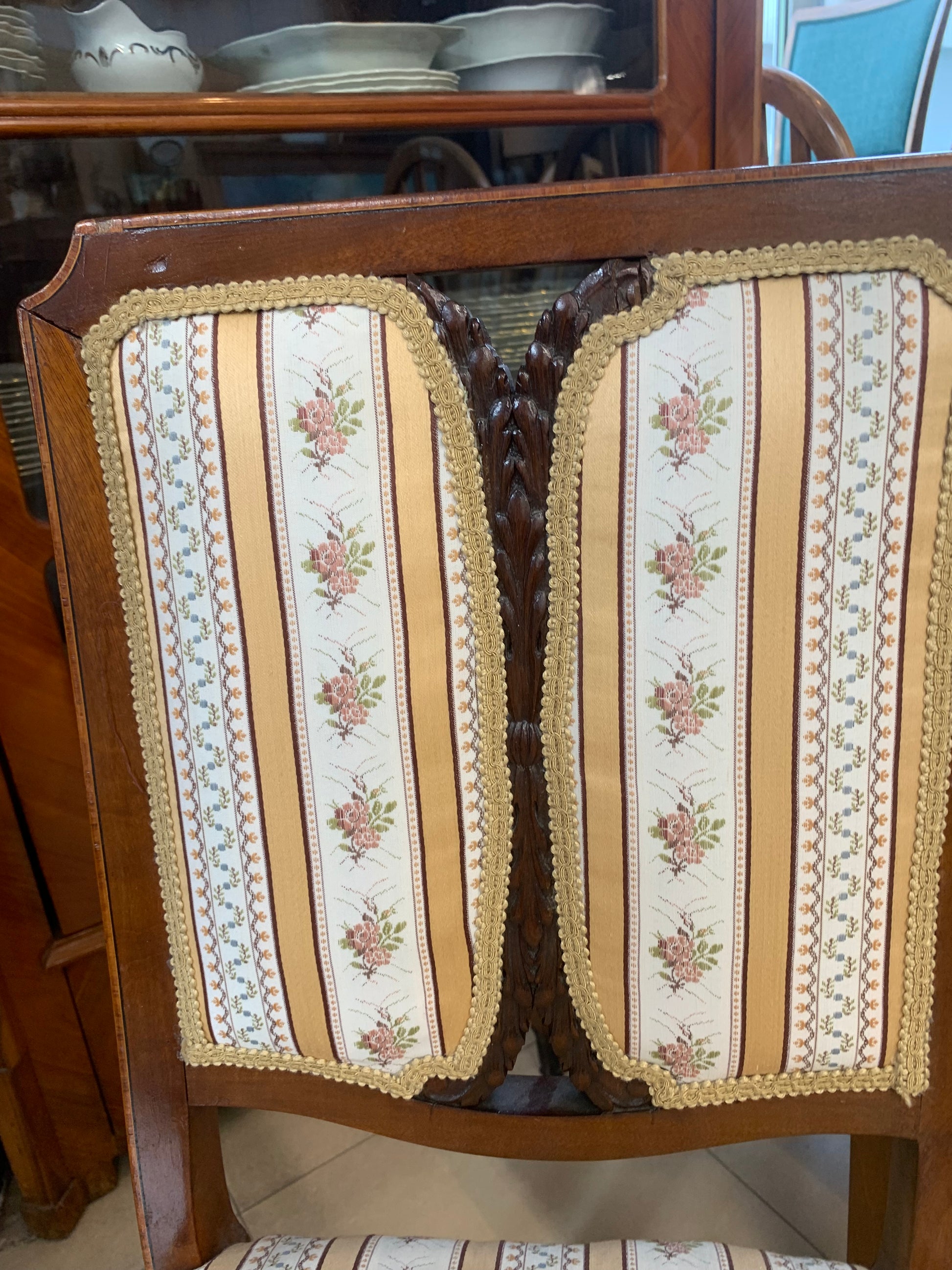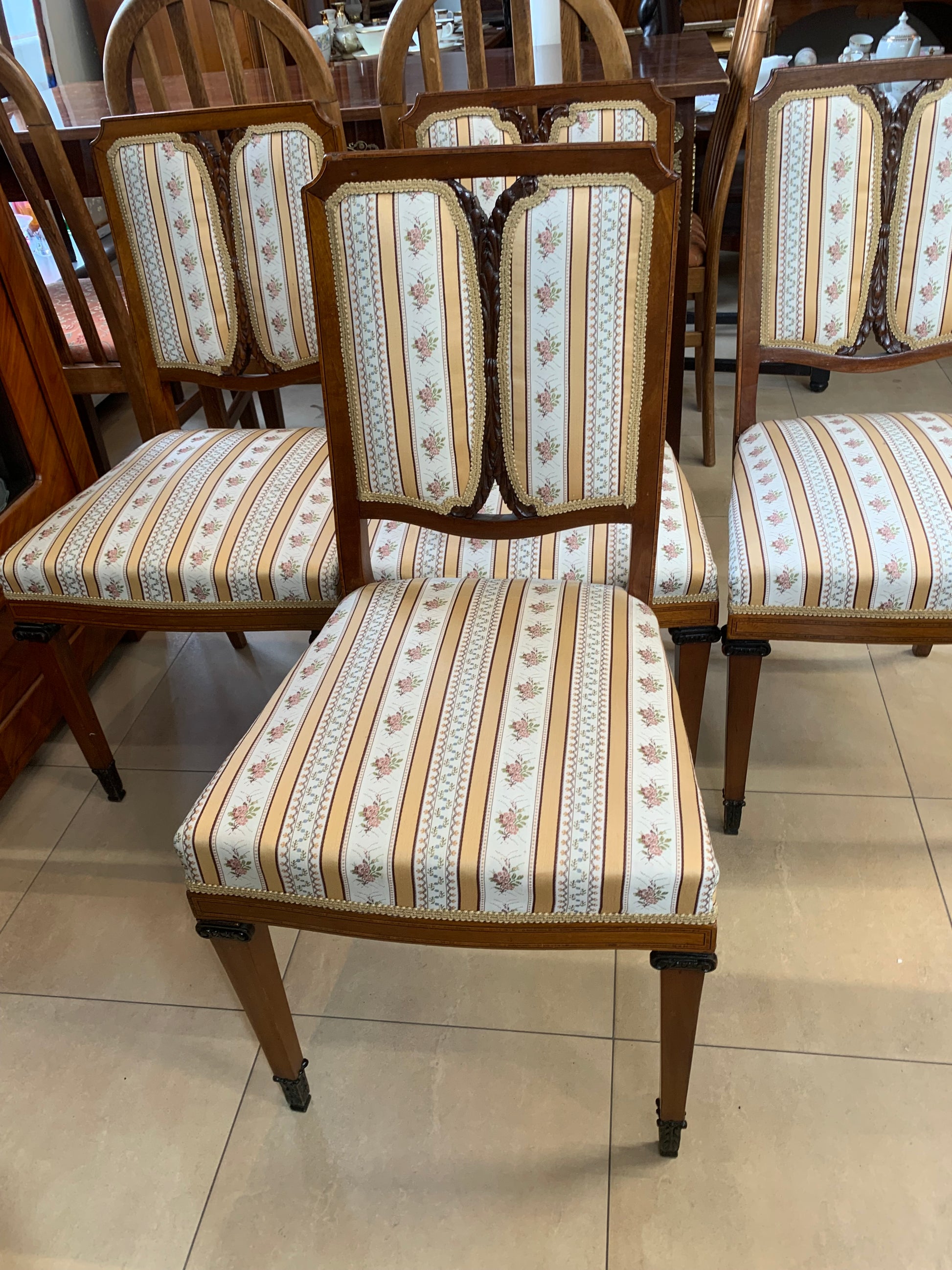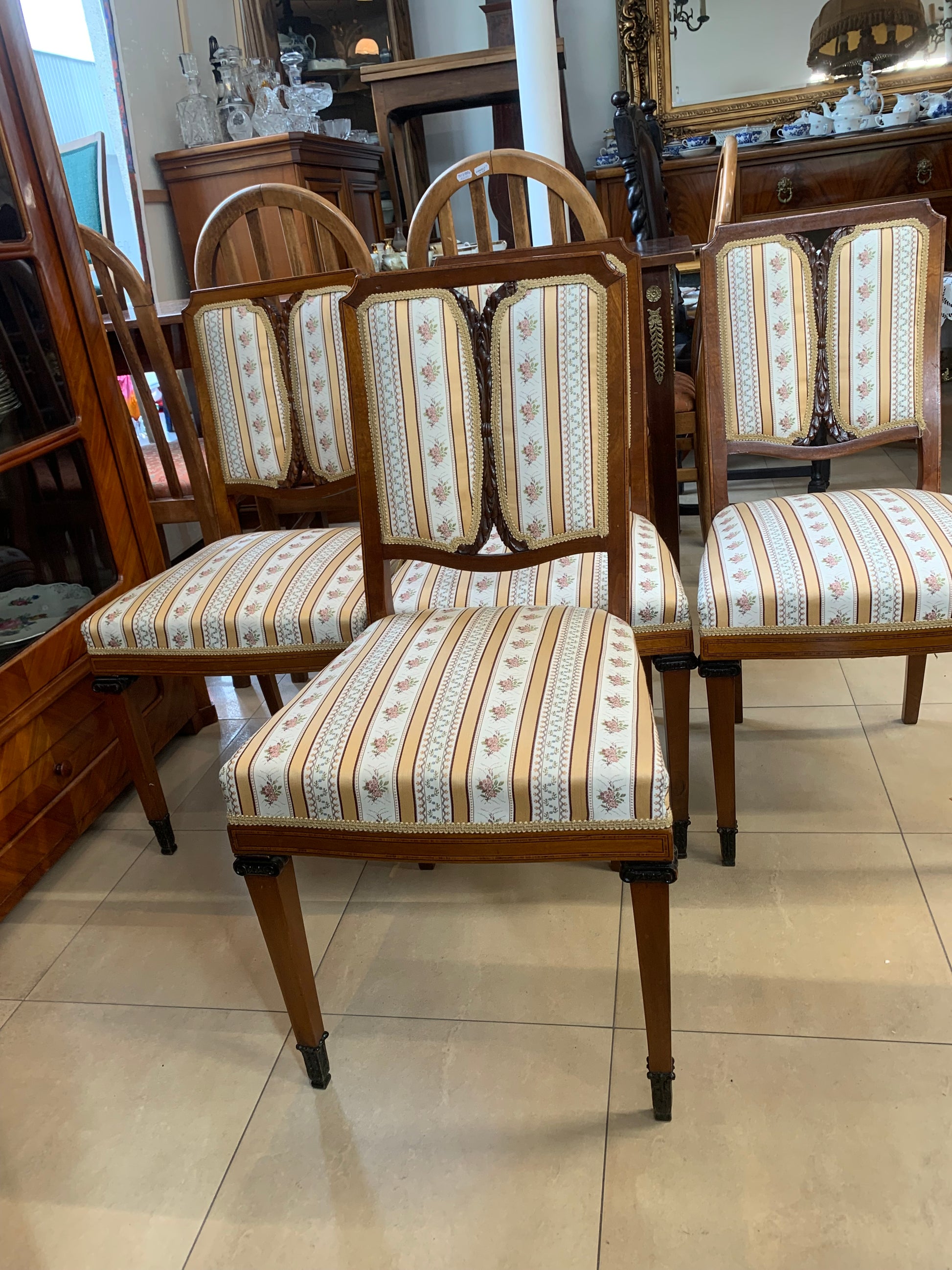 Piękne krzesła secesyjne z mahoniu, tapicerowane, komplet 4 szt. Krzesła po renowacji w bardzo dobrym stanie. Cena za komplet