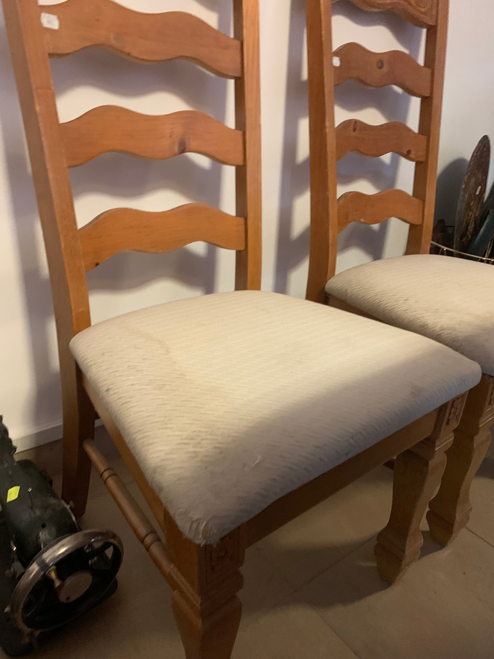 Krzesło duże, tronowe, drewniane, tapicerowane. Siedzisko tapicerowane na sprężynach.