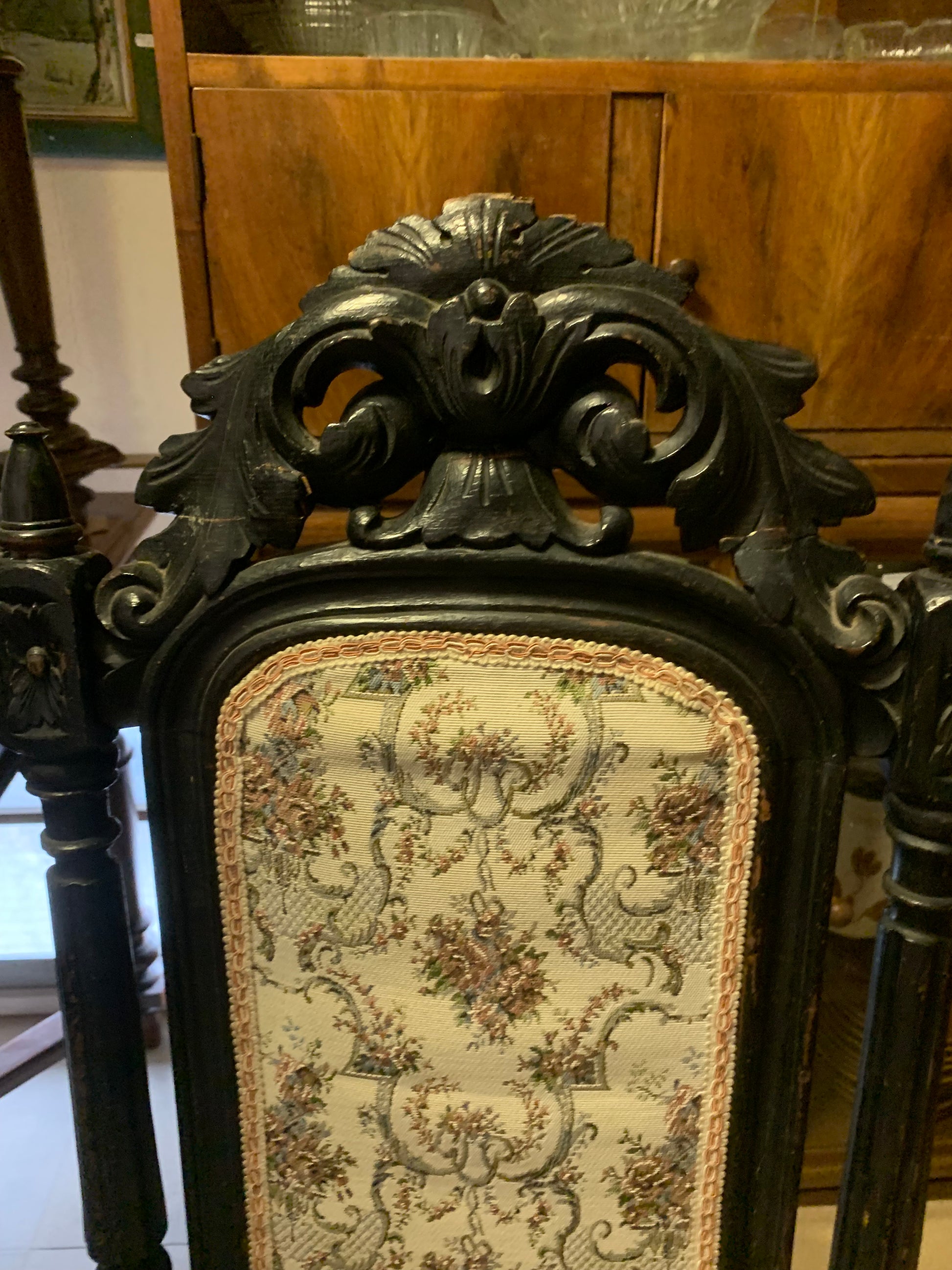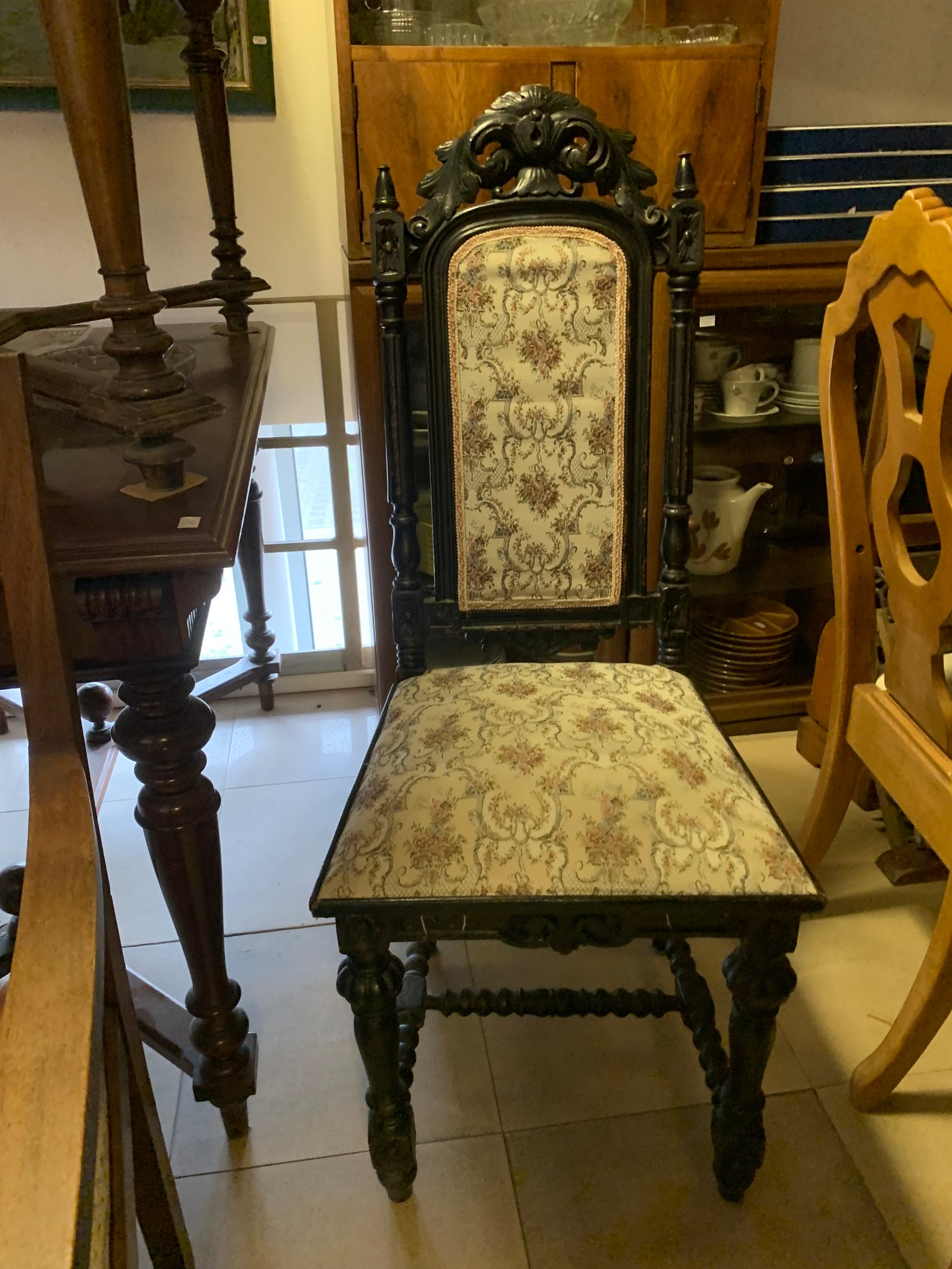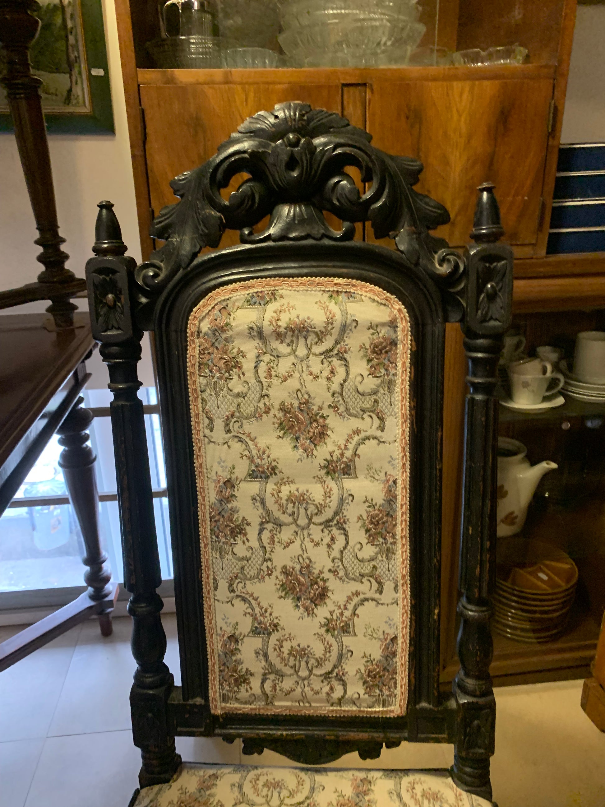 Krzesło stylowe, drewniane z rzeźbieniami, tapicerowane, do renowacji.