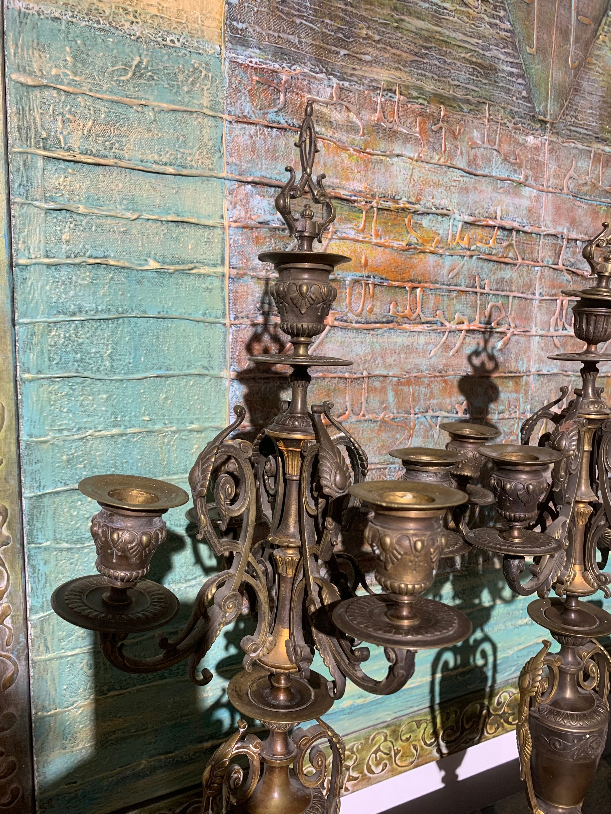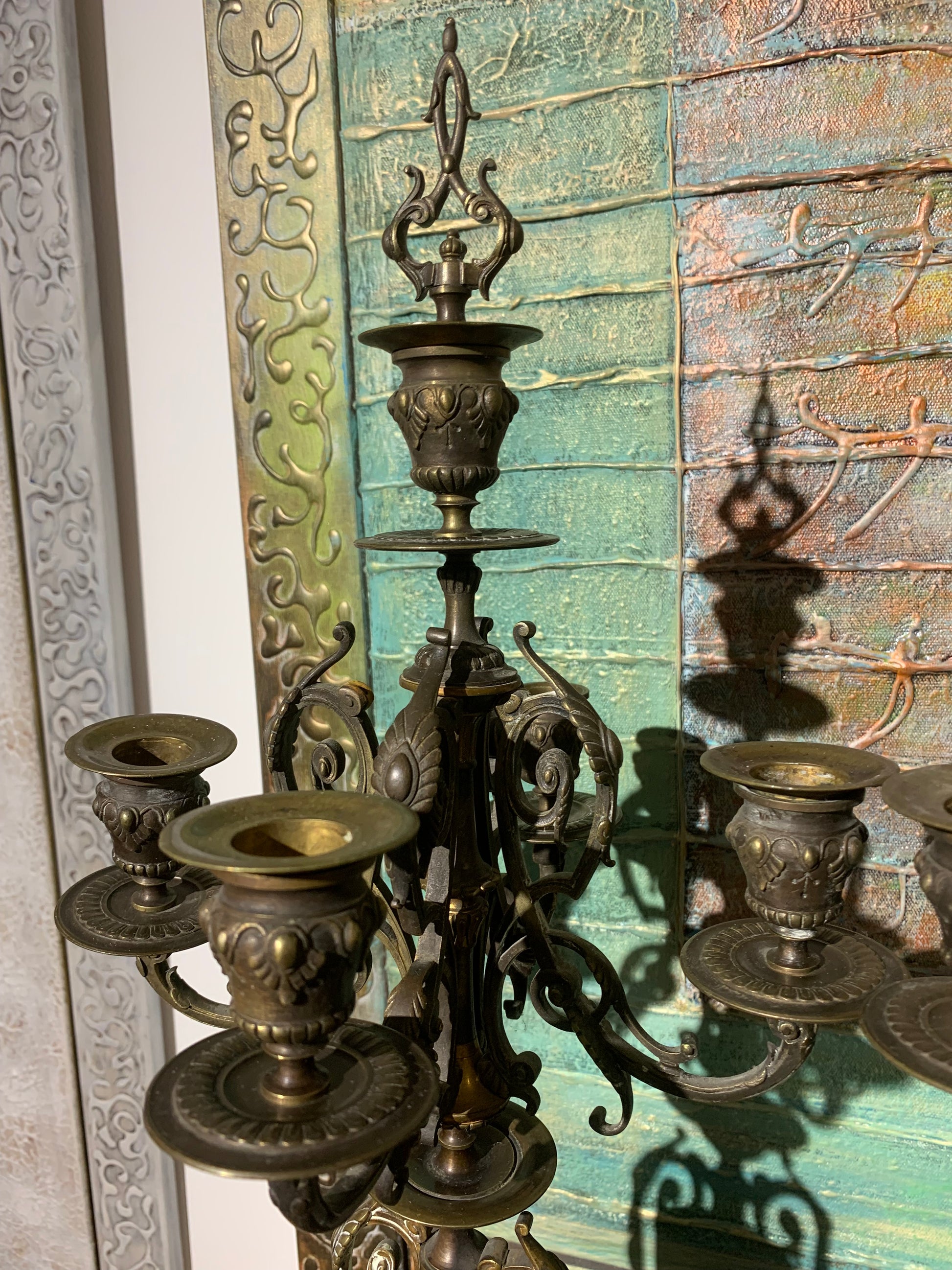 Kandelabry, garnitur kominkowy z brązu, Francja
