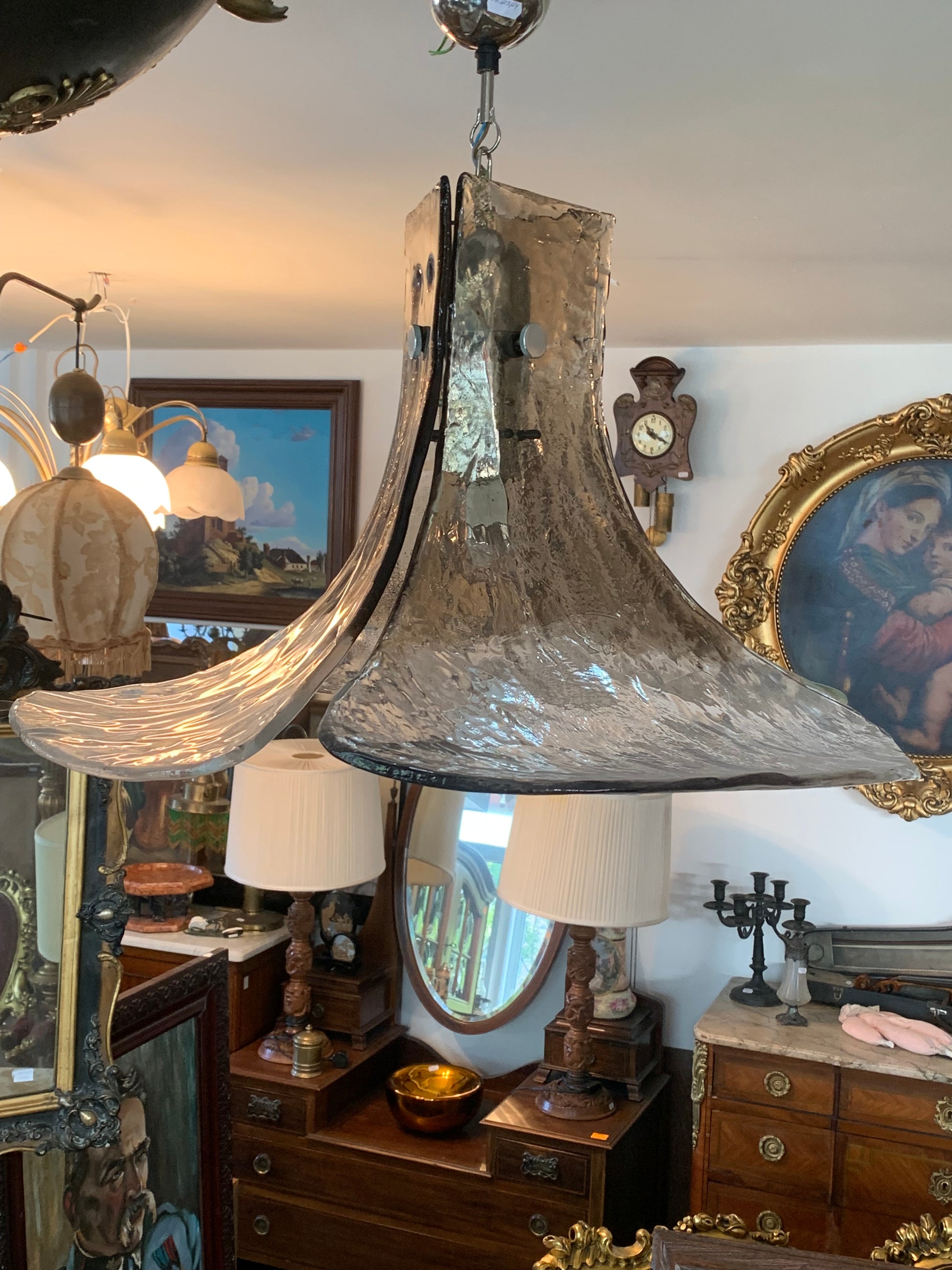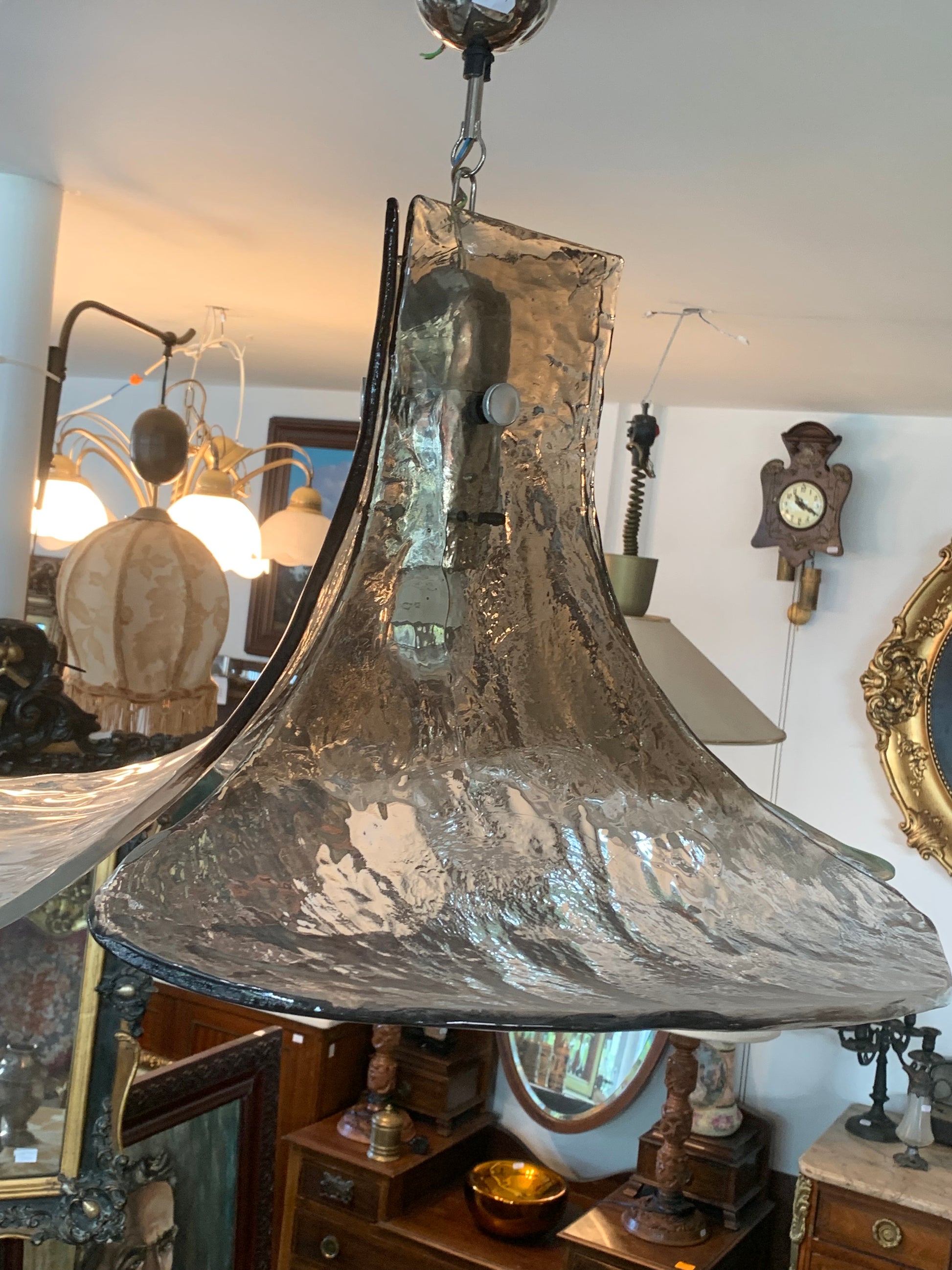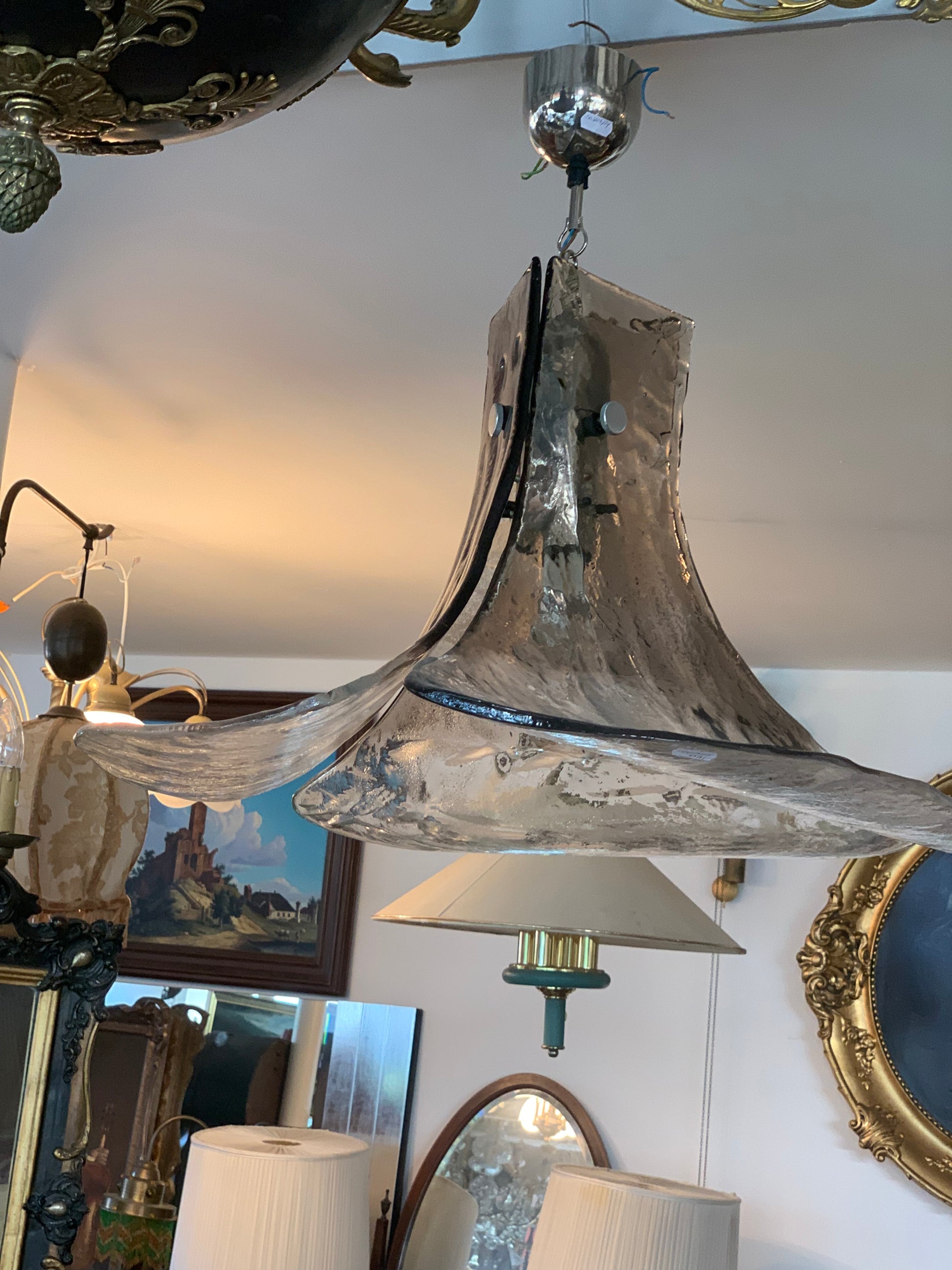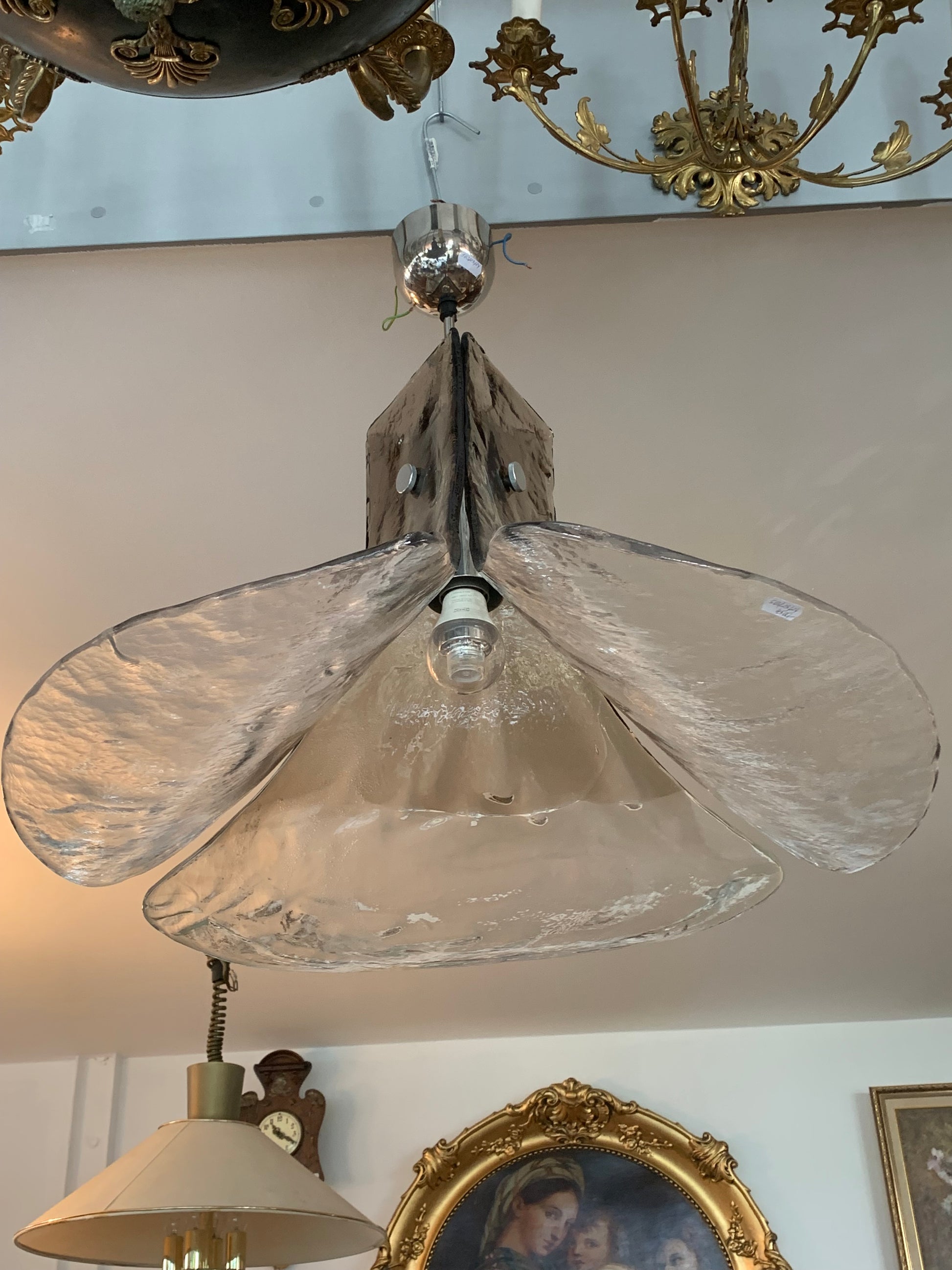 Lampa Murano z grubego szkła cieniowanego, lata 60-69, Vintage, projekt Carlo Nason, Italy. Lampa o kształcie zwisającego kwiatu, łączona z aluminium.