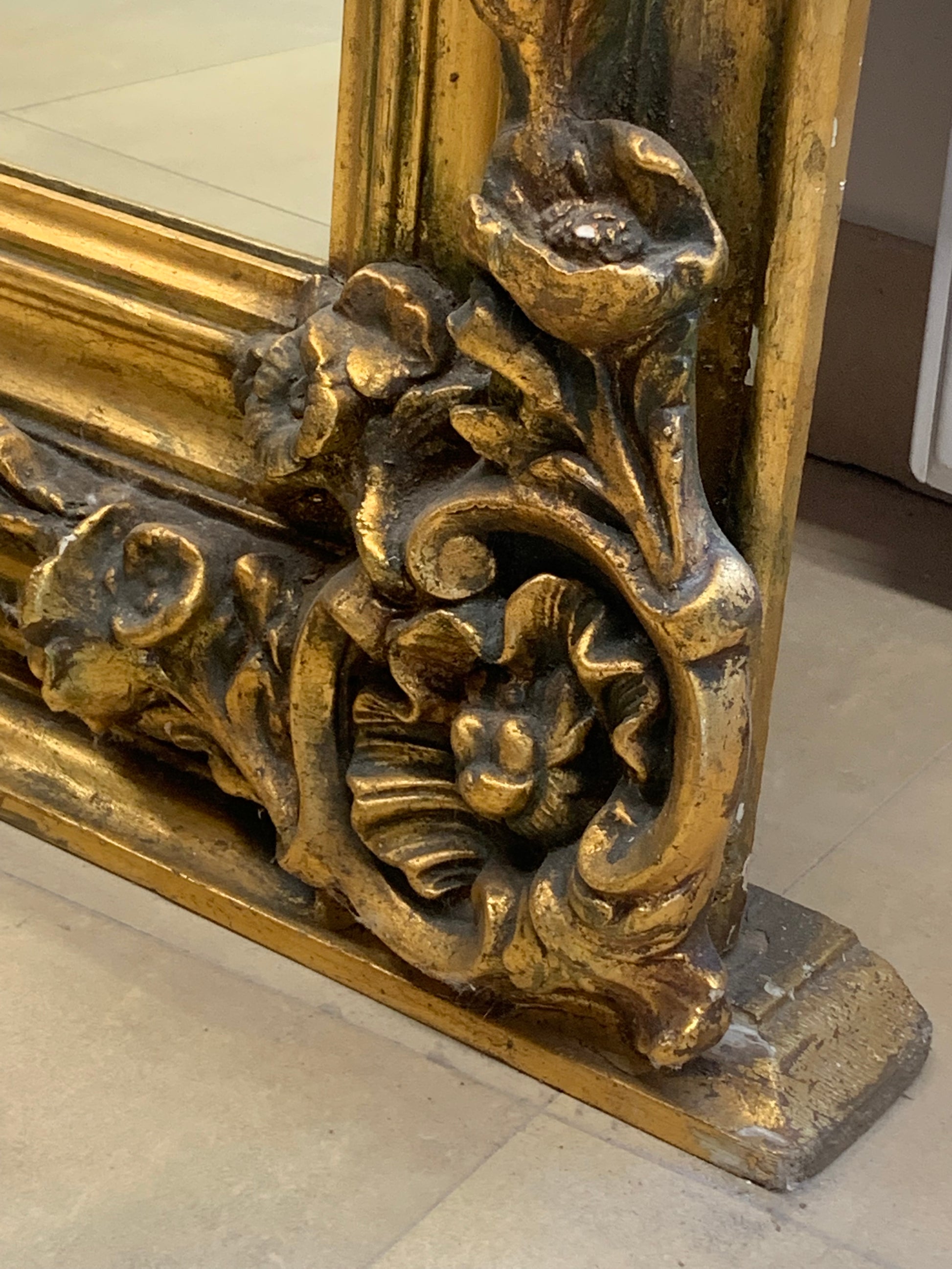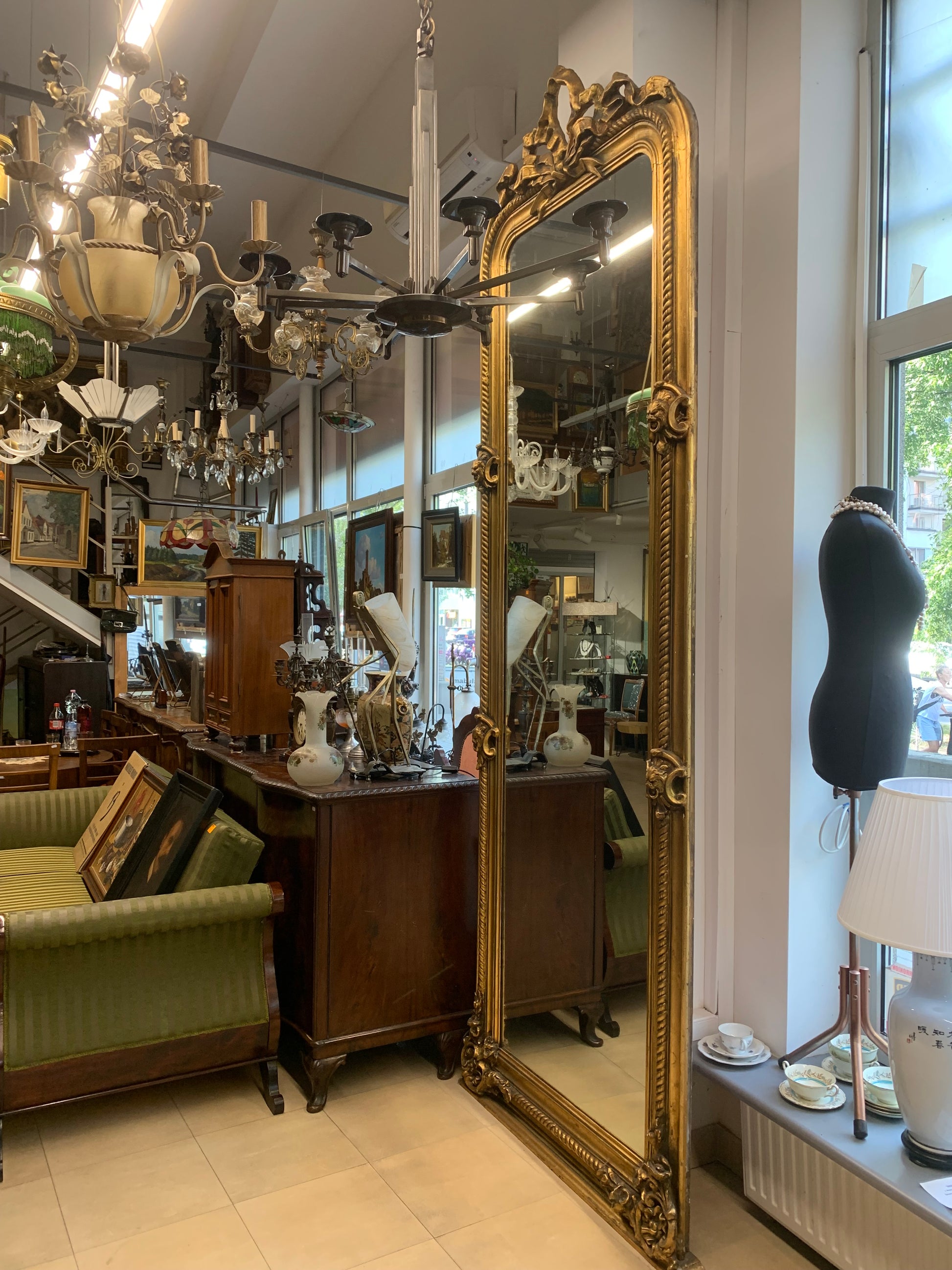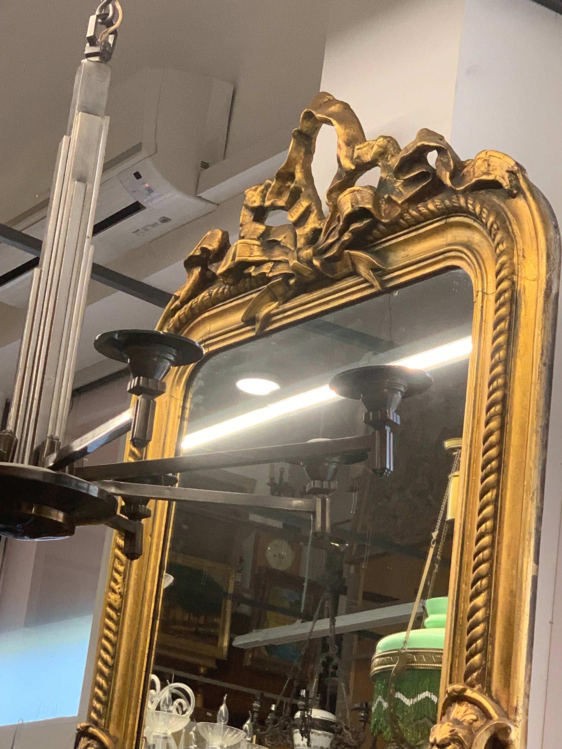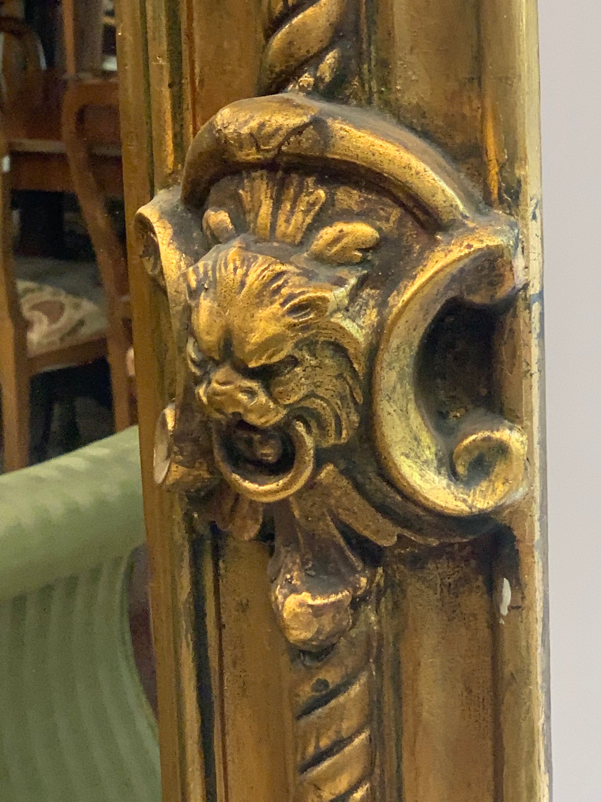 Duże lustro pałacowe, francuskie z kokardą i głowami lwa na złoconej ramie. Efektowne dopełnienie do dużego salonu. Stan lustra bardzo dobry.
