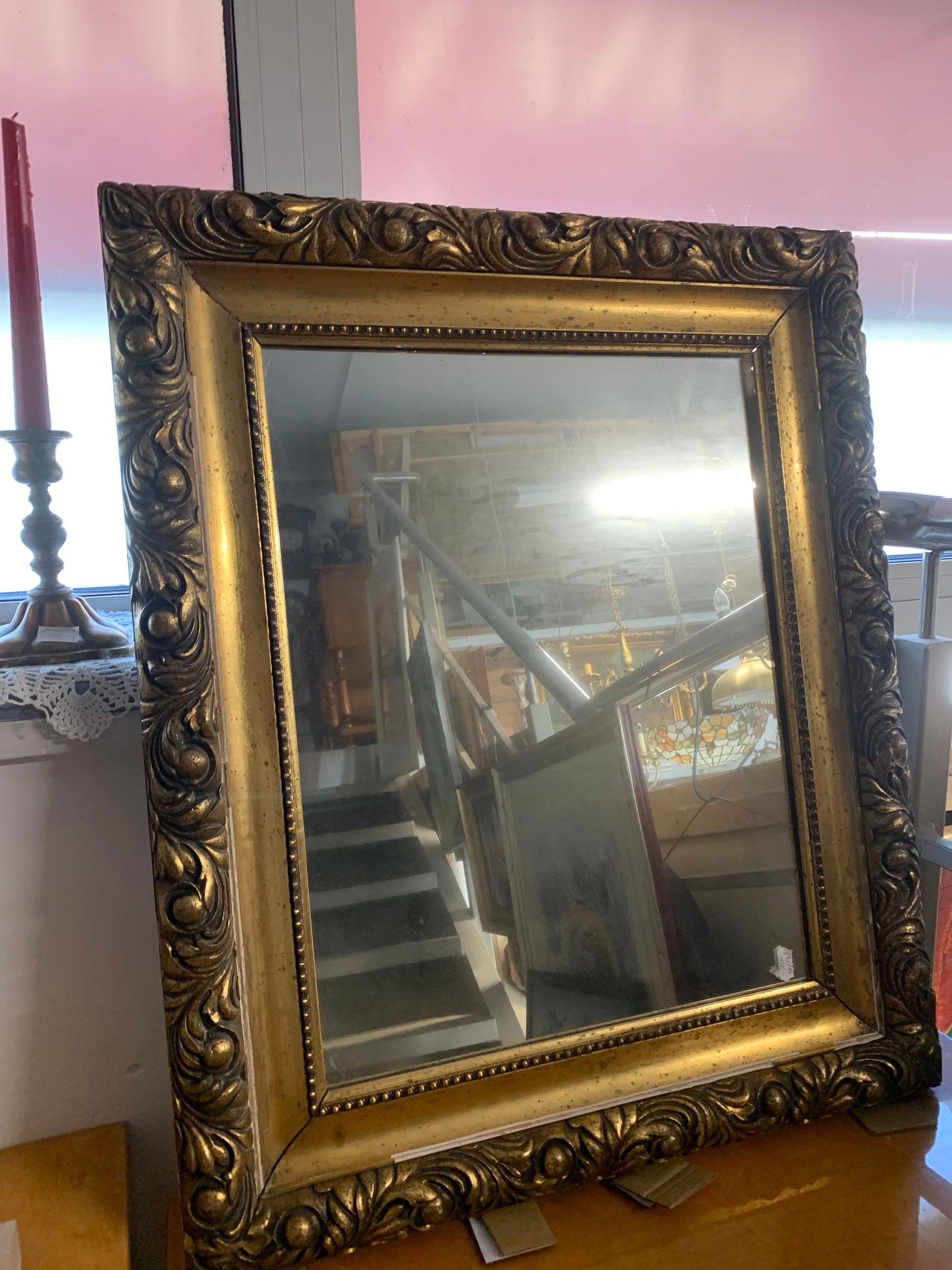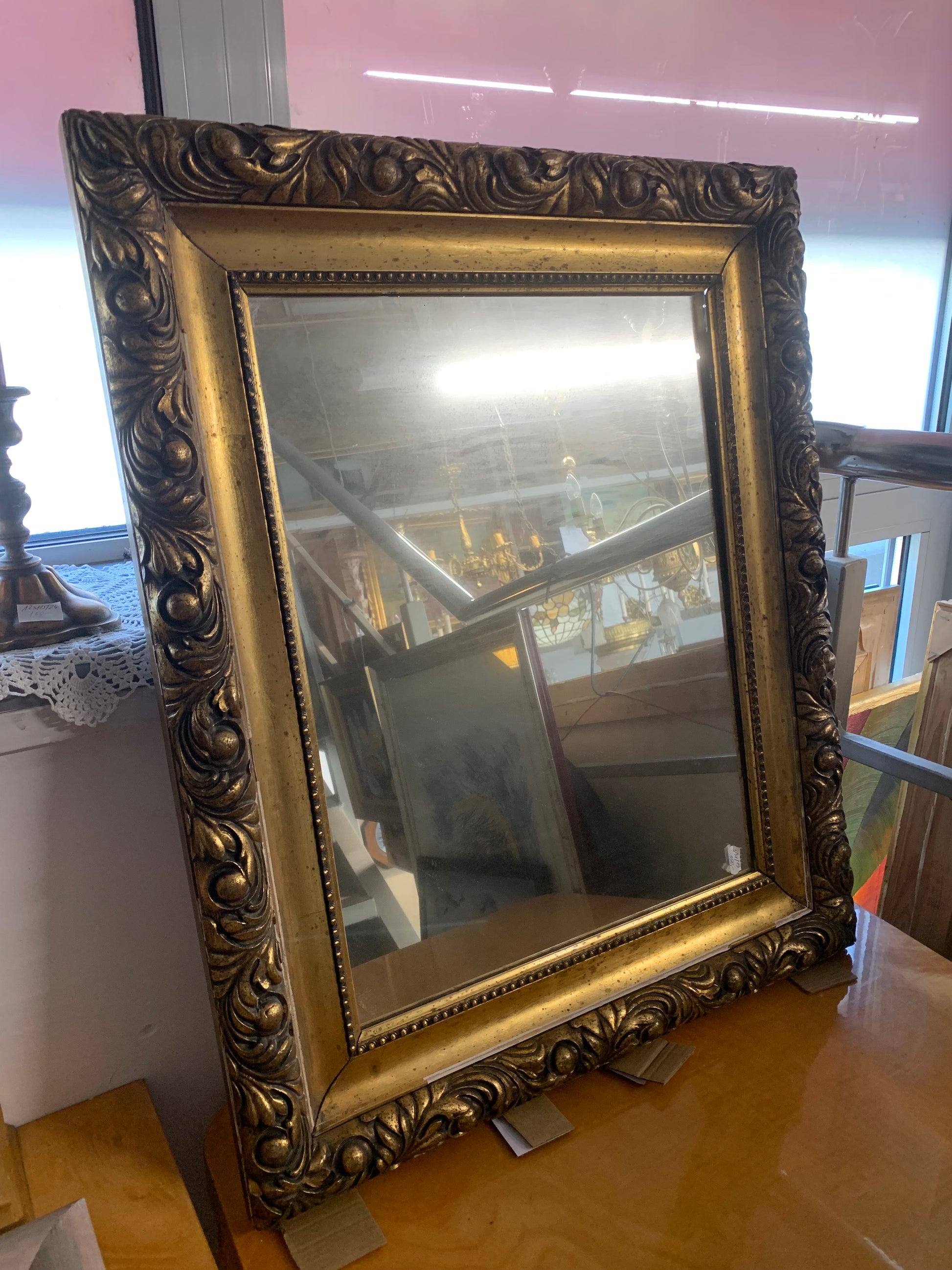 Lustro zabytkowe, w drewnianej, złoconej ramie, zdobionej wzorem.