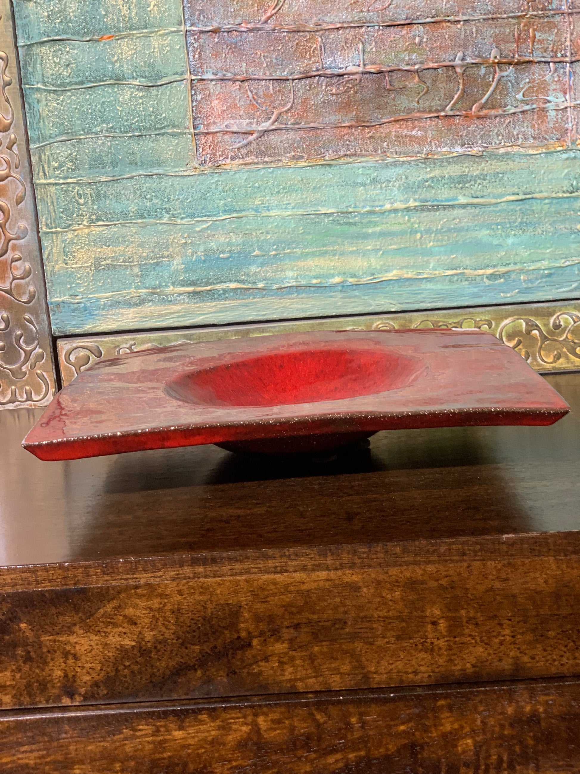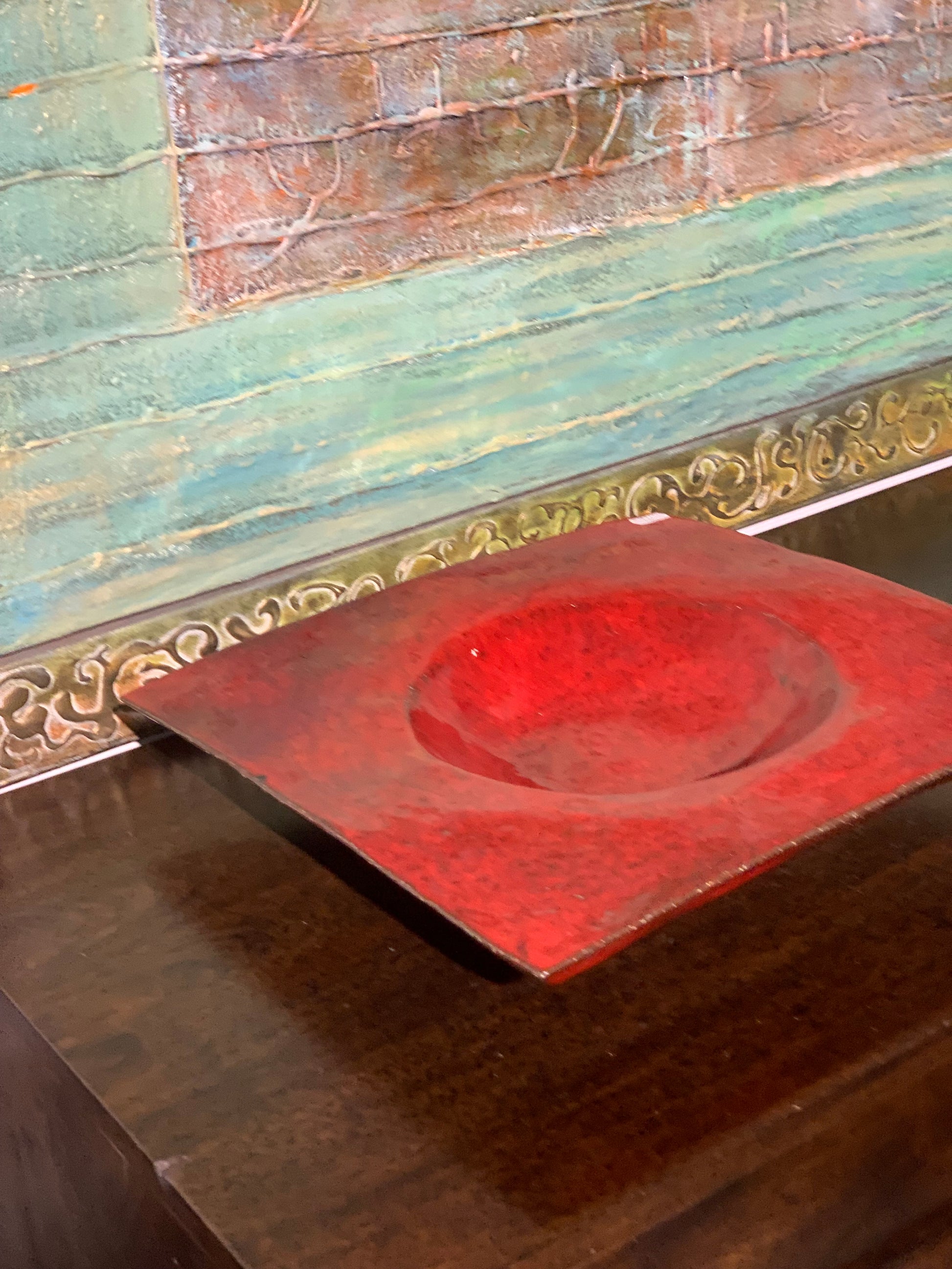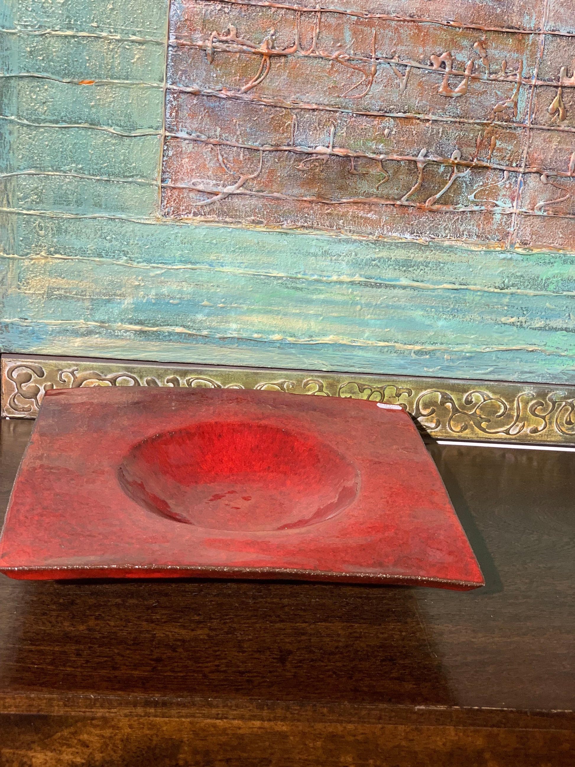 Misa ceramiczna, czerwona, w kształcie kwadratu.