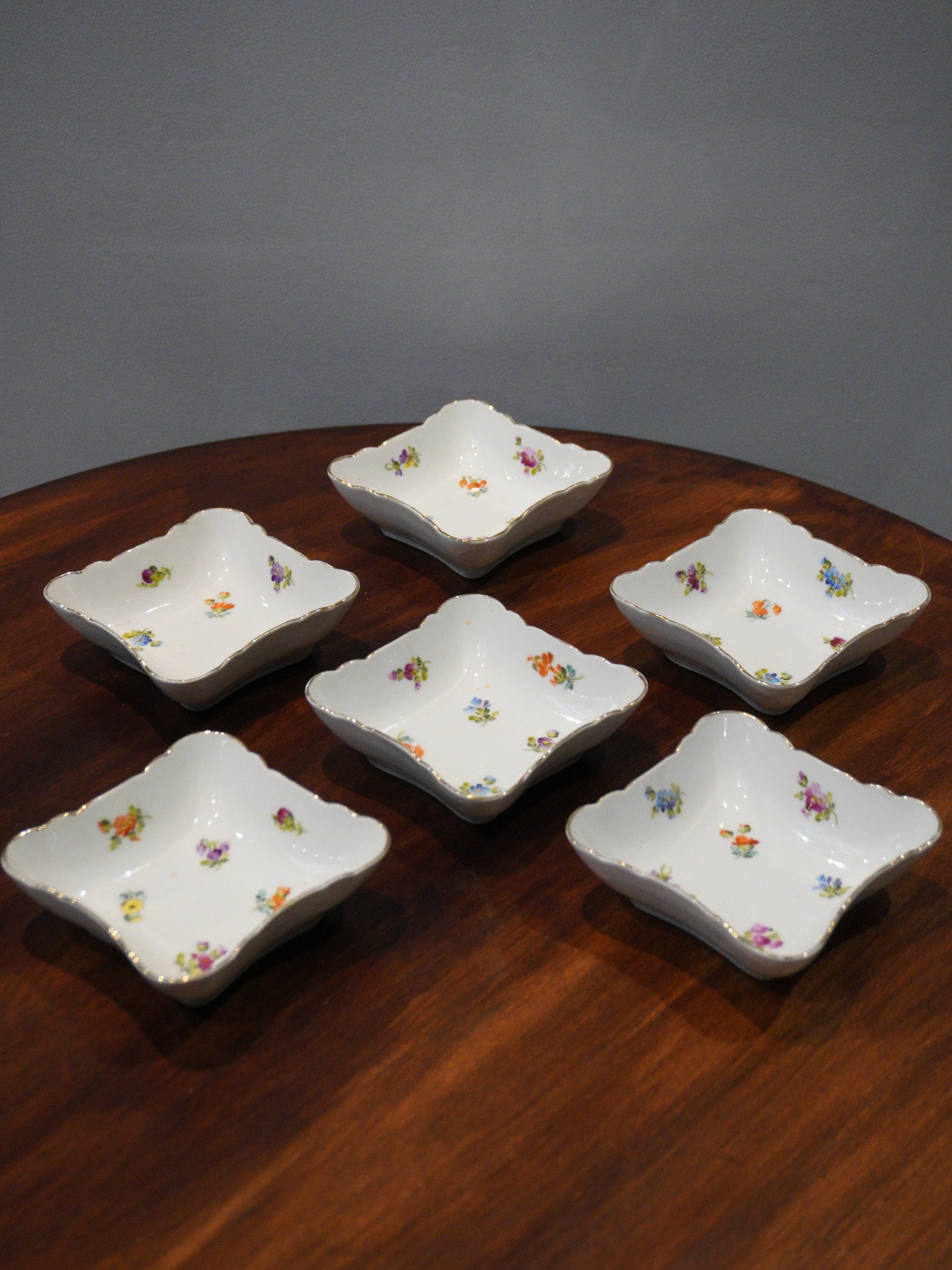 Zestaw porcelanowych miseczek do przystawek, sygnowanych, motyw kwiatowy.