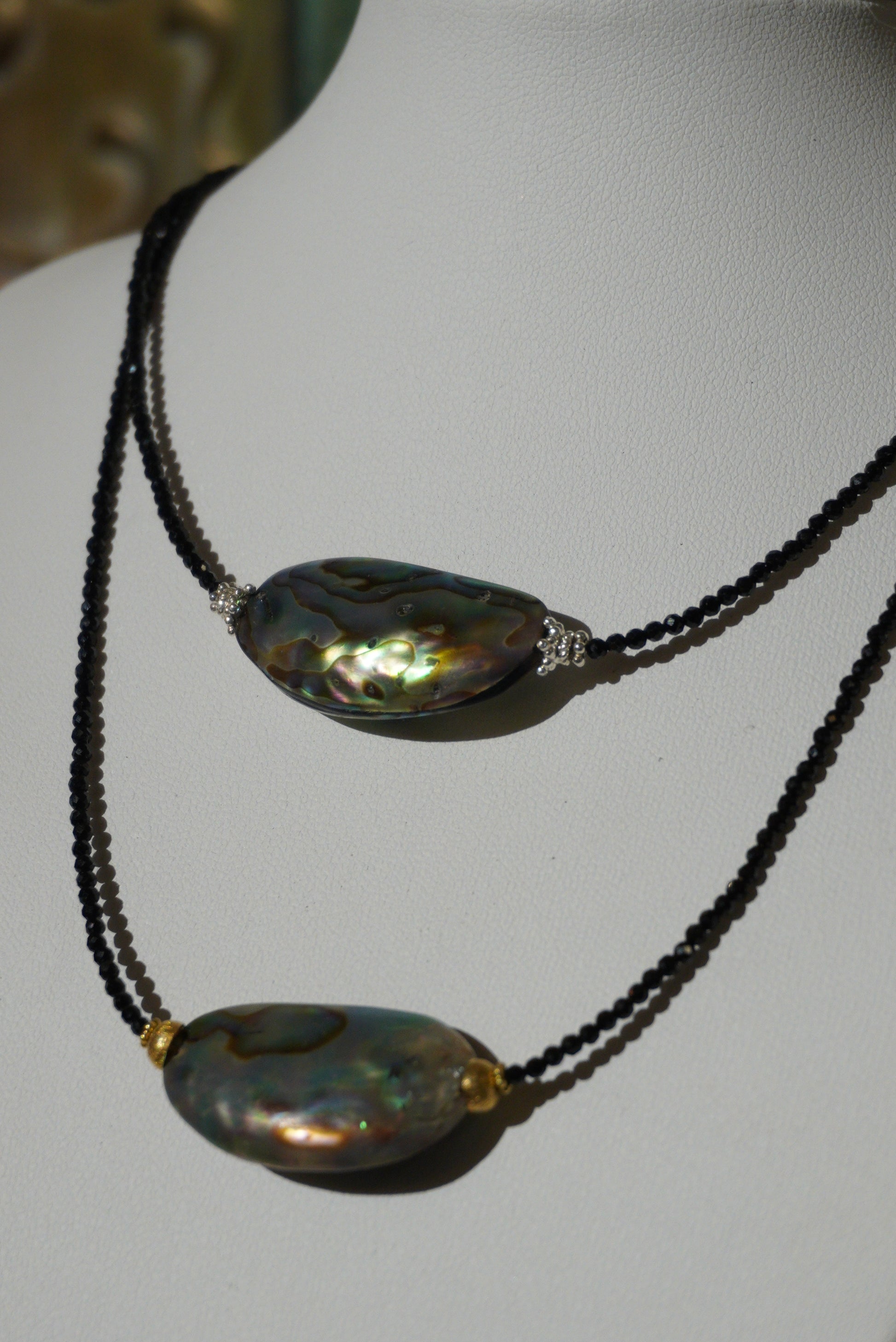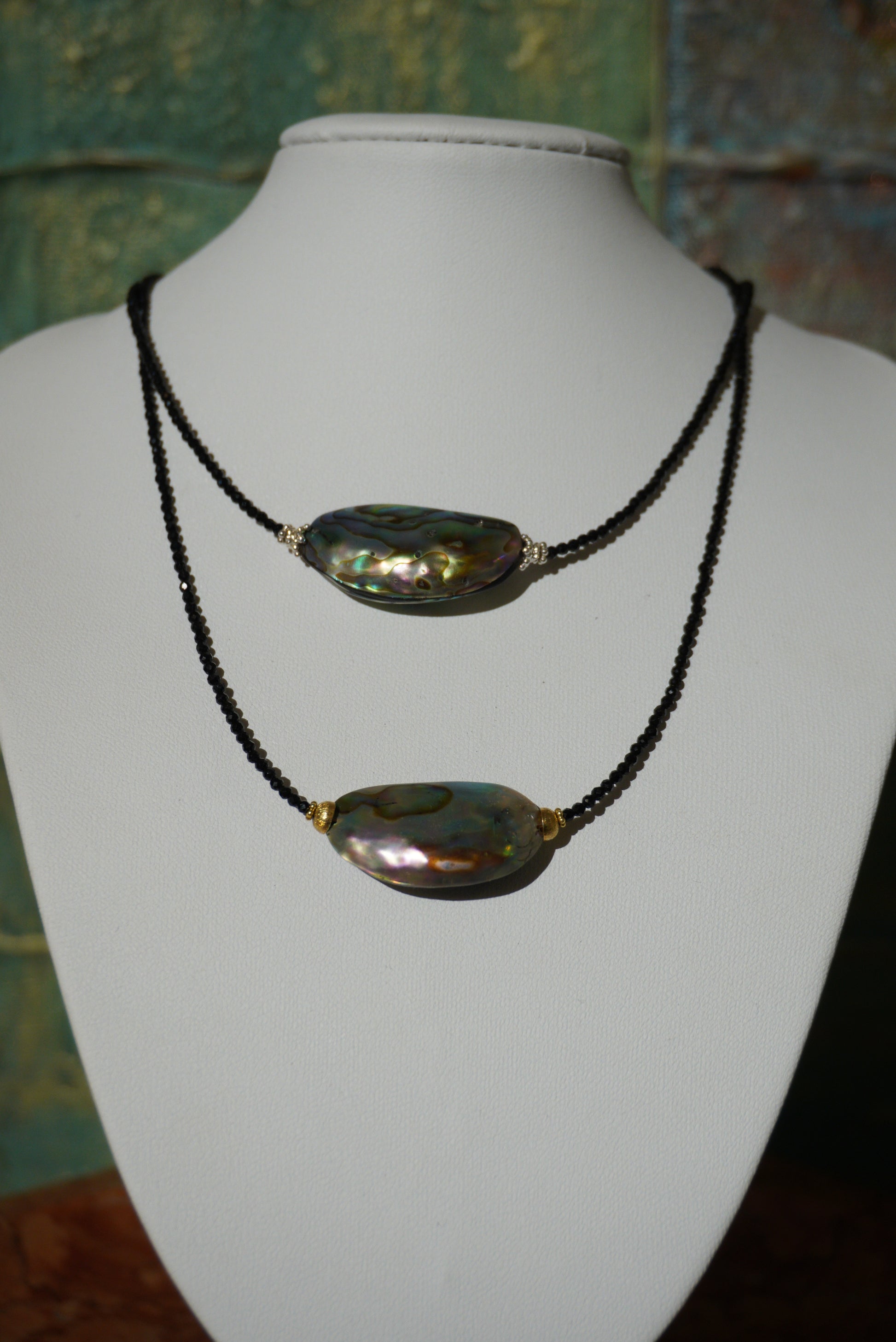 Muszla Abalone, spinel - naszyjnik z zawieszką.