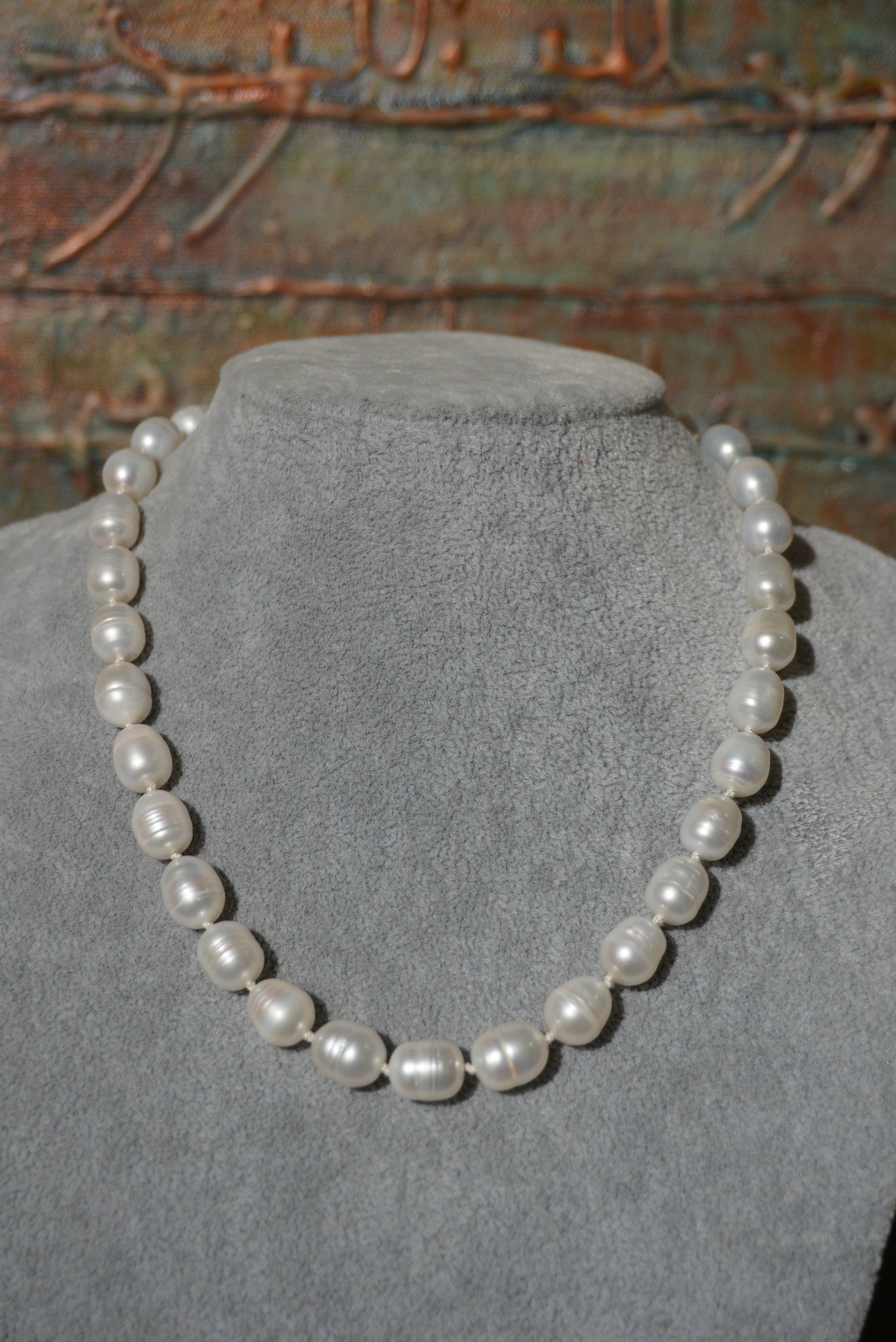 Krótki naszyjnik z białych pereł supełkowanych, zapięcie srebro pozłacane.
