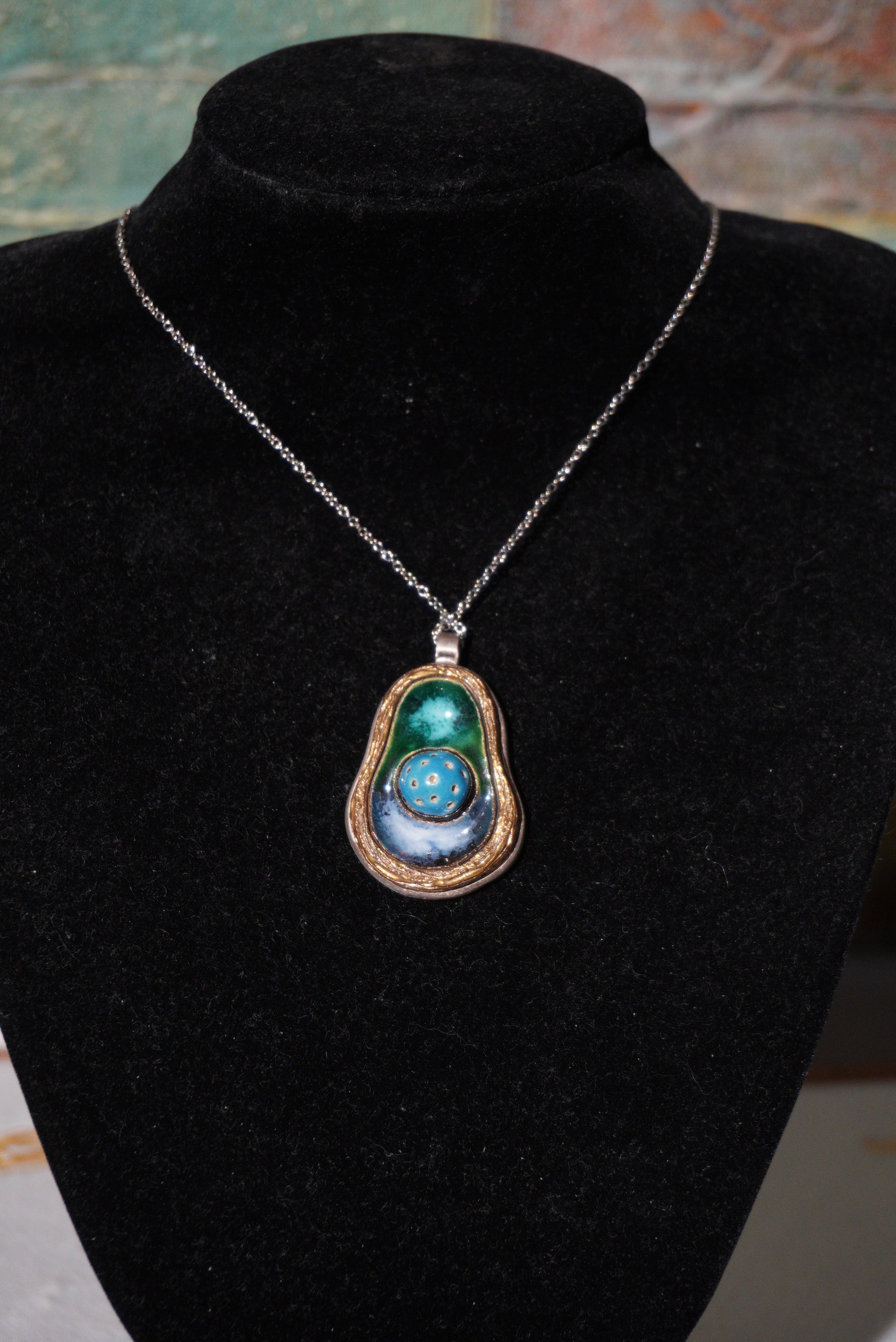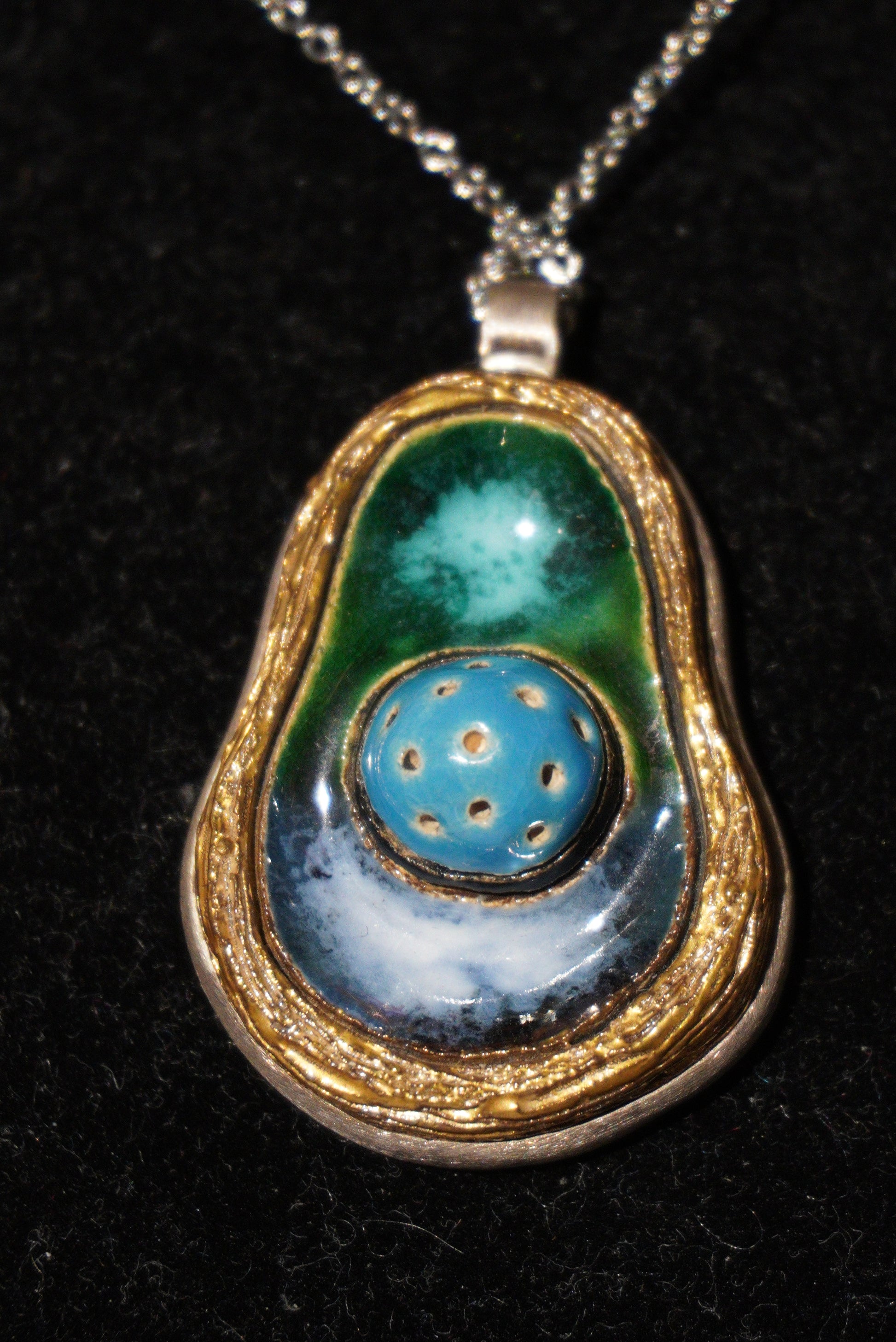 Naszyjnik srebro pr. 925, wisior ceramika wypalana, szkło