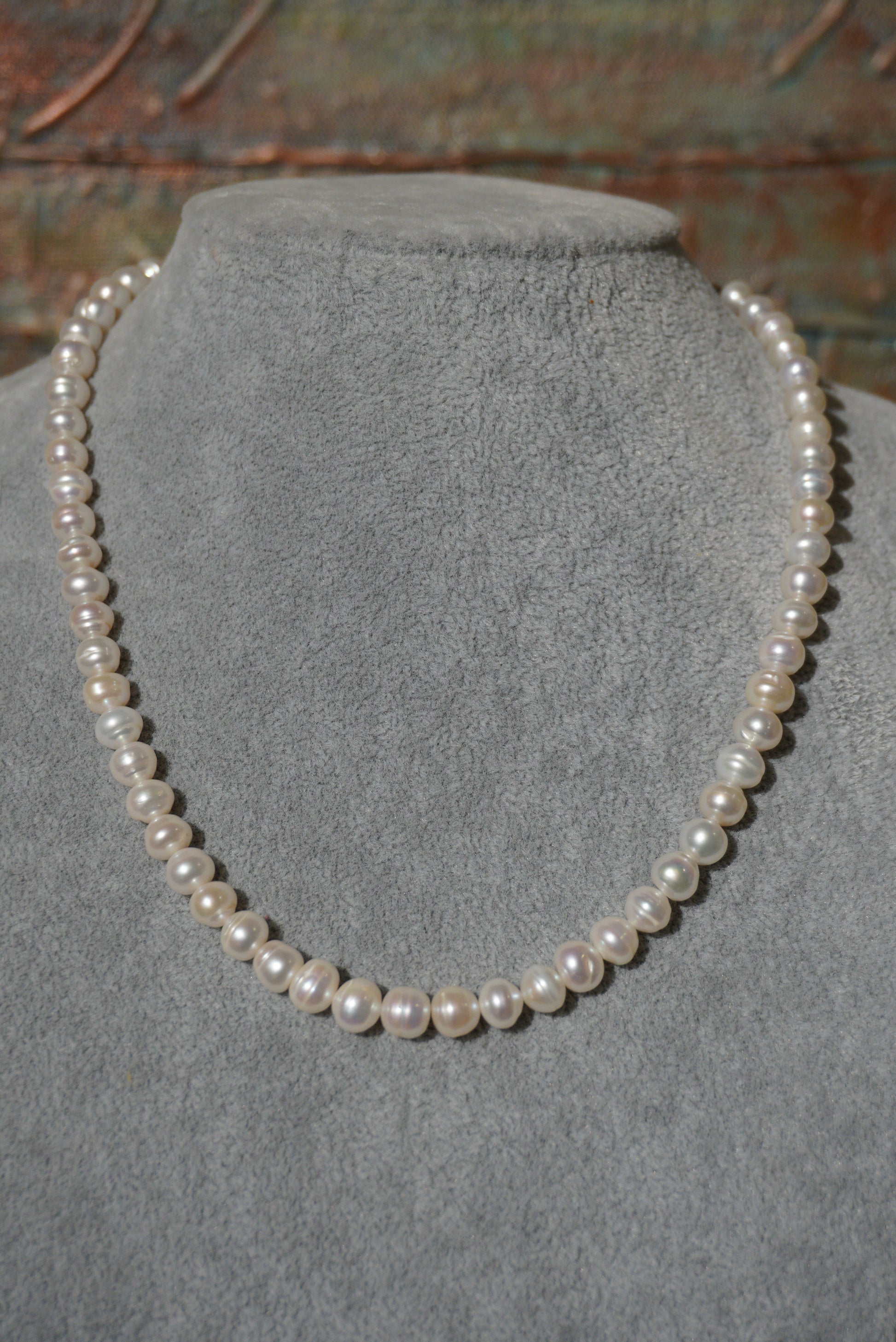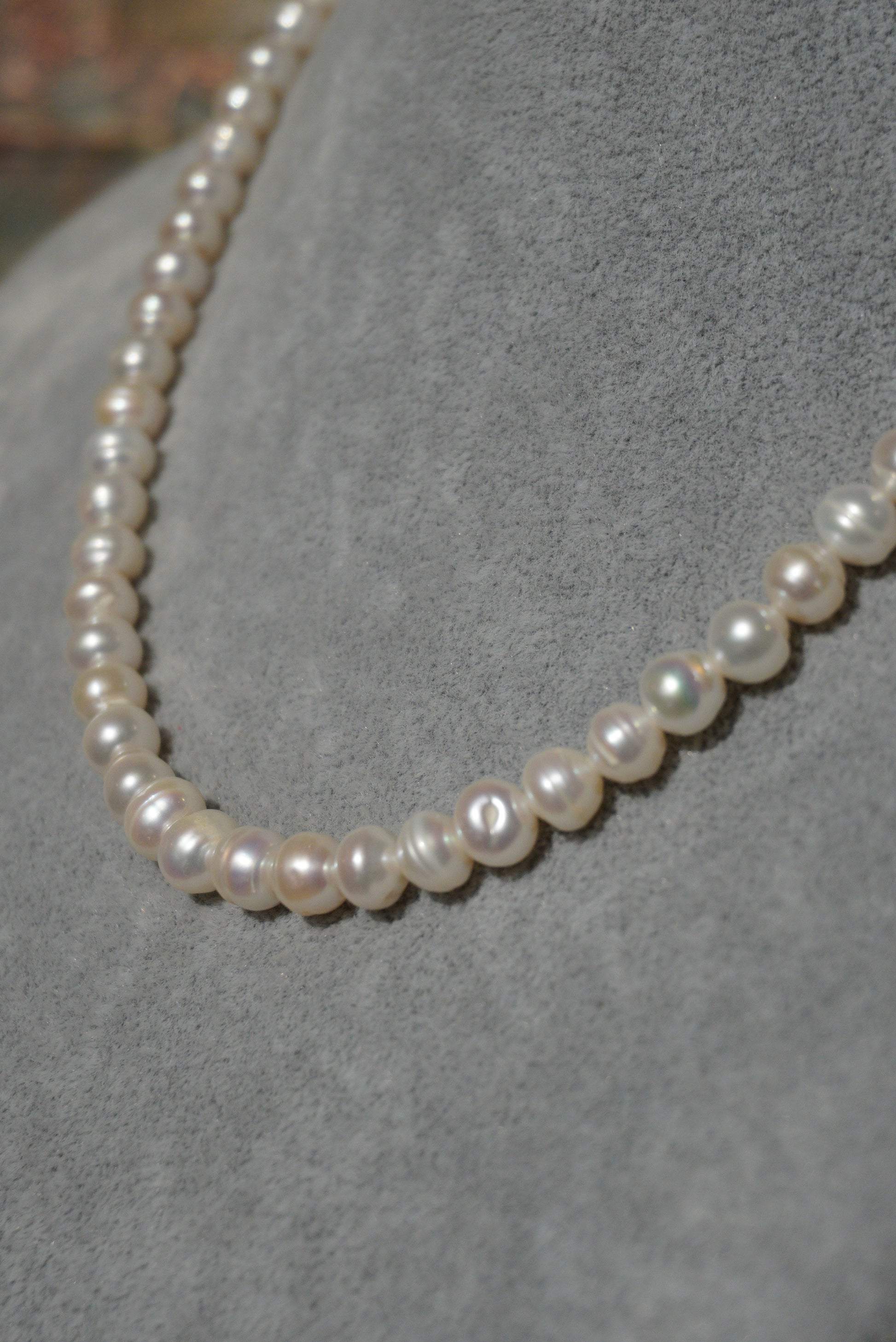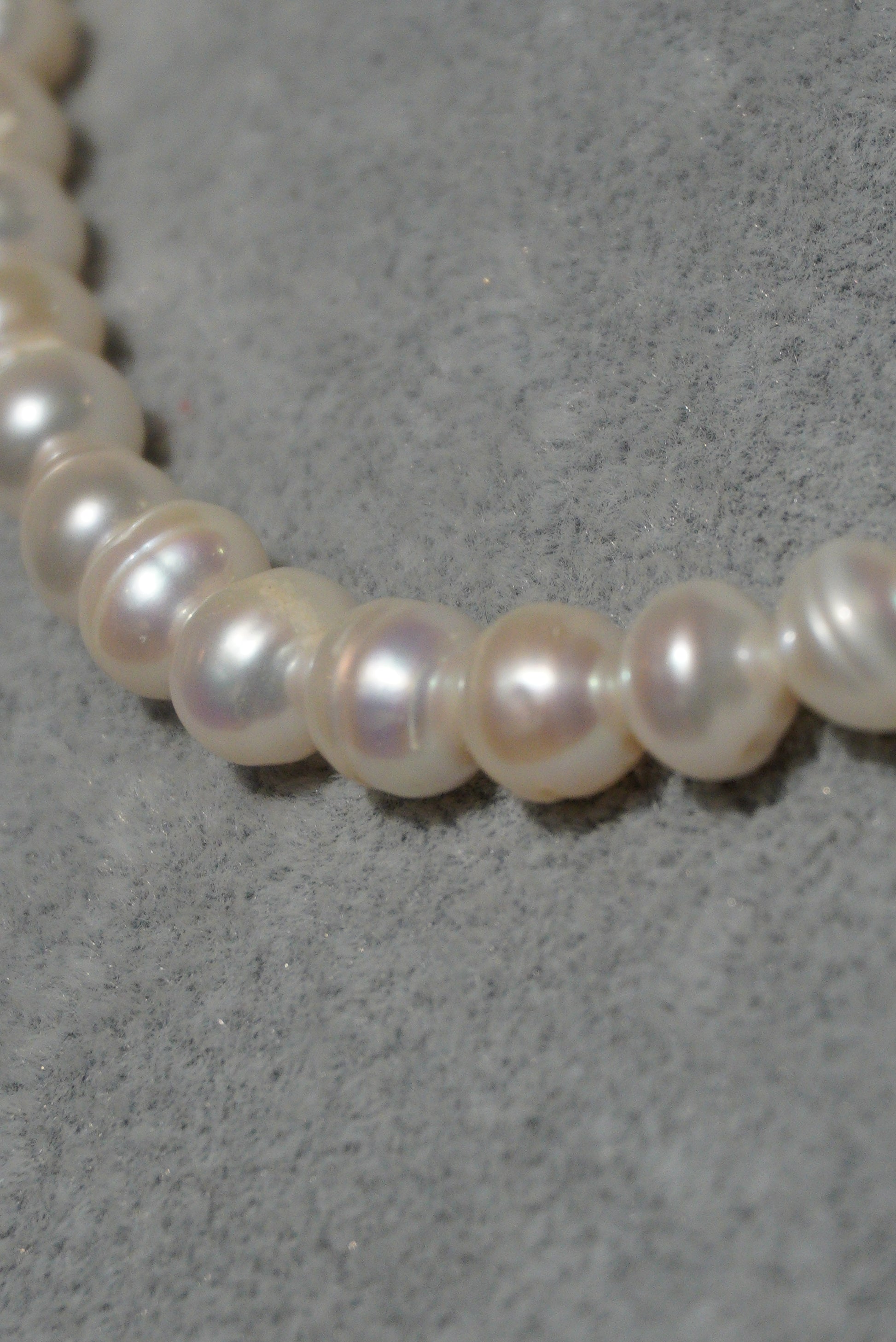 Naszyjnik z białych pereł hodowlanych, zapięcie ze srebra.