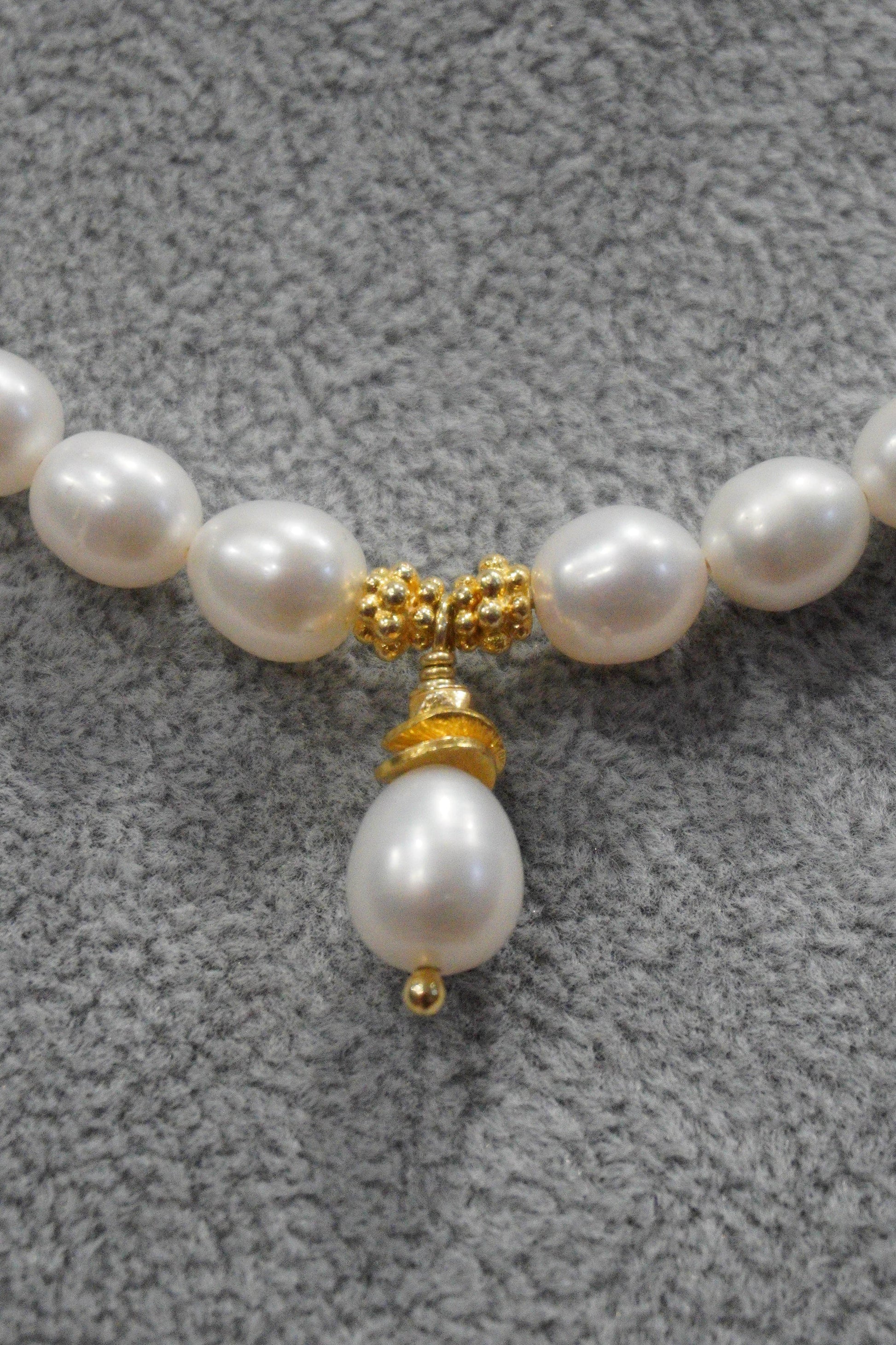 Naszyjnik z pereł hodowlanych z zawieszką, srebro pozłacane