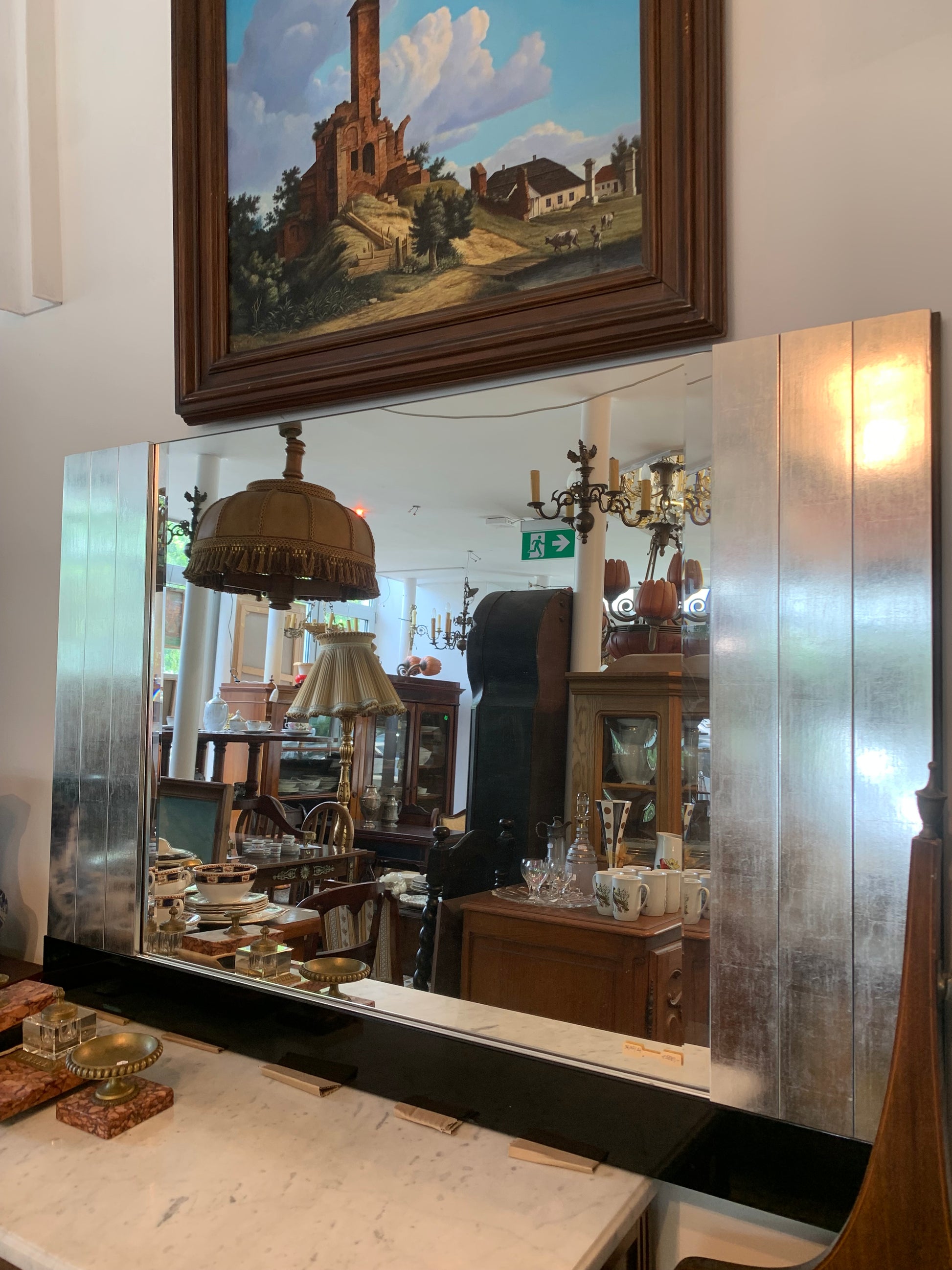 Nowoczesne lustro, srebrno-czarne, kryształ fazowany.