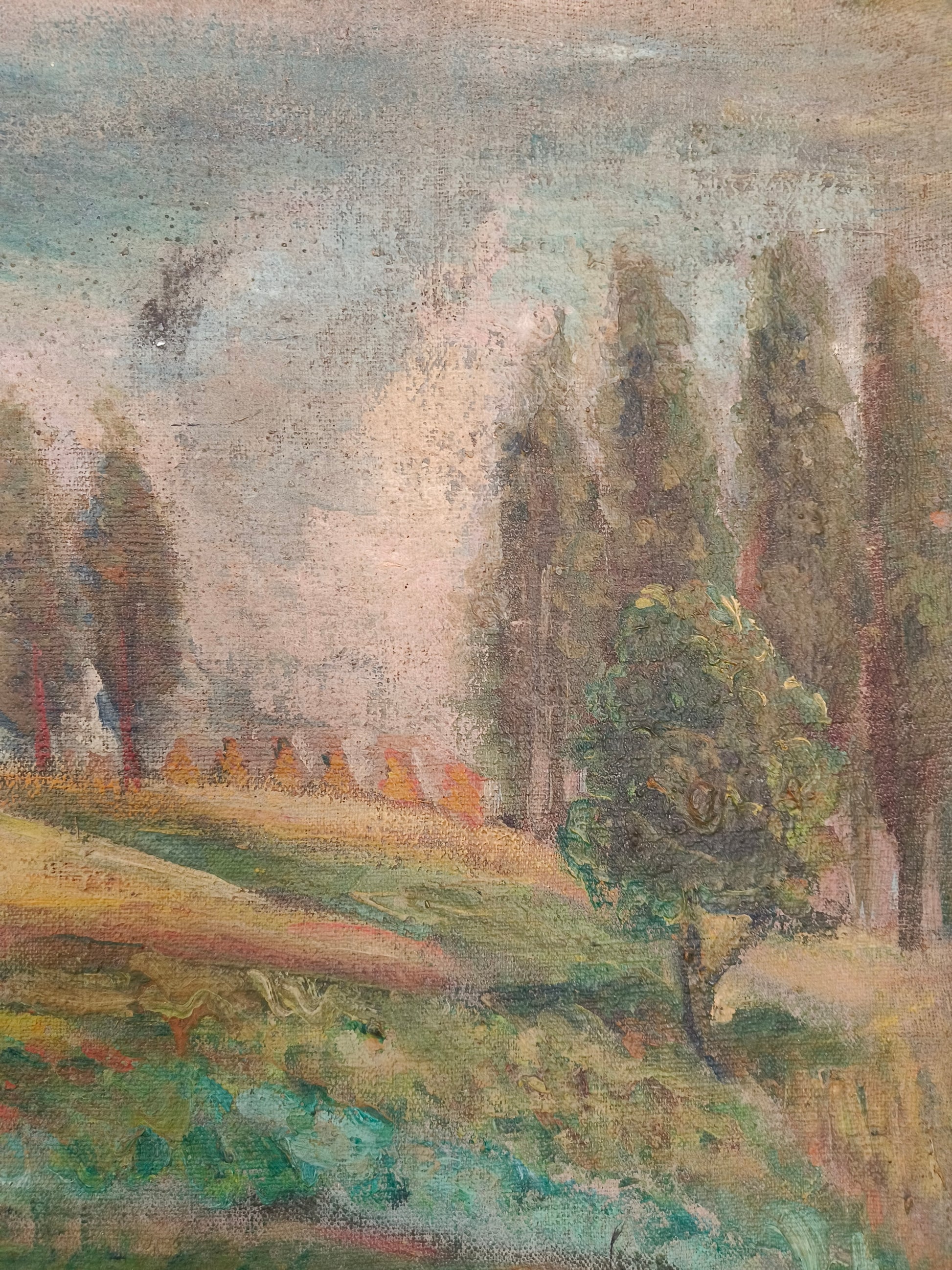 Obraz duży, pejzaż, przedwojenny, olej na płótnie