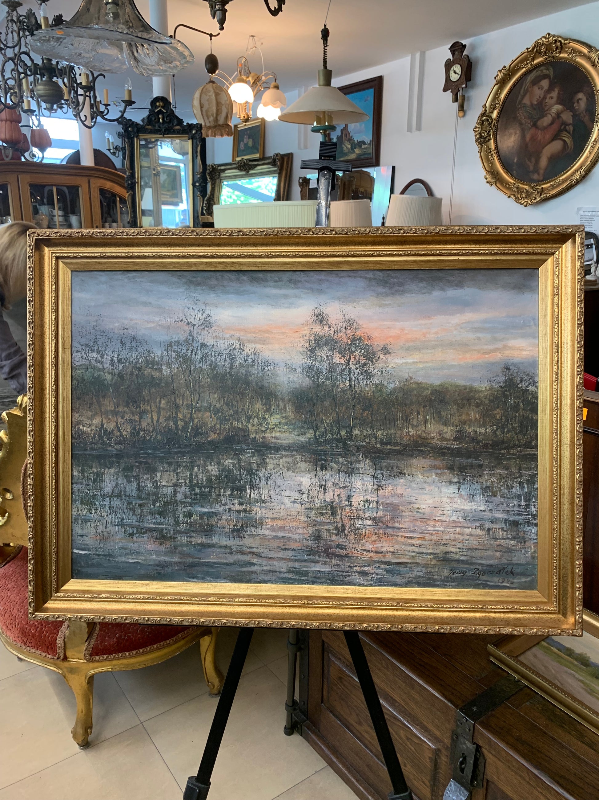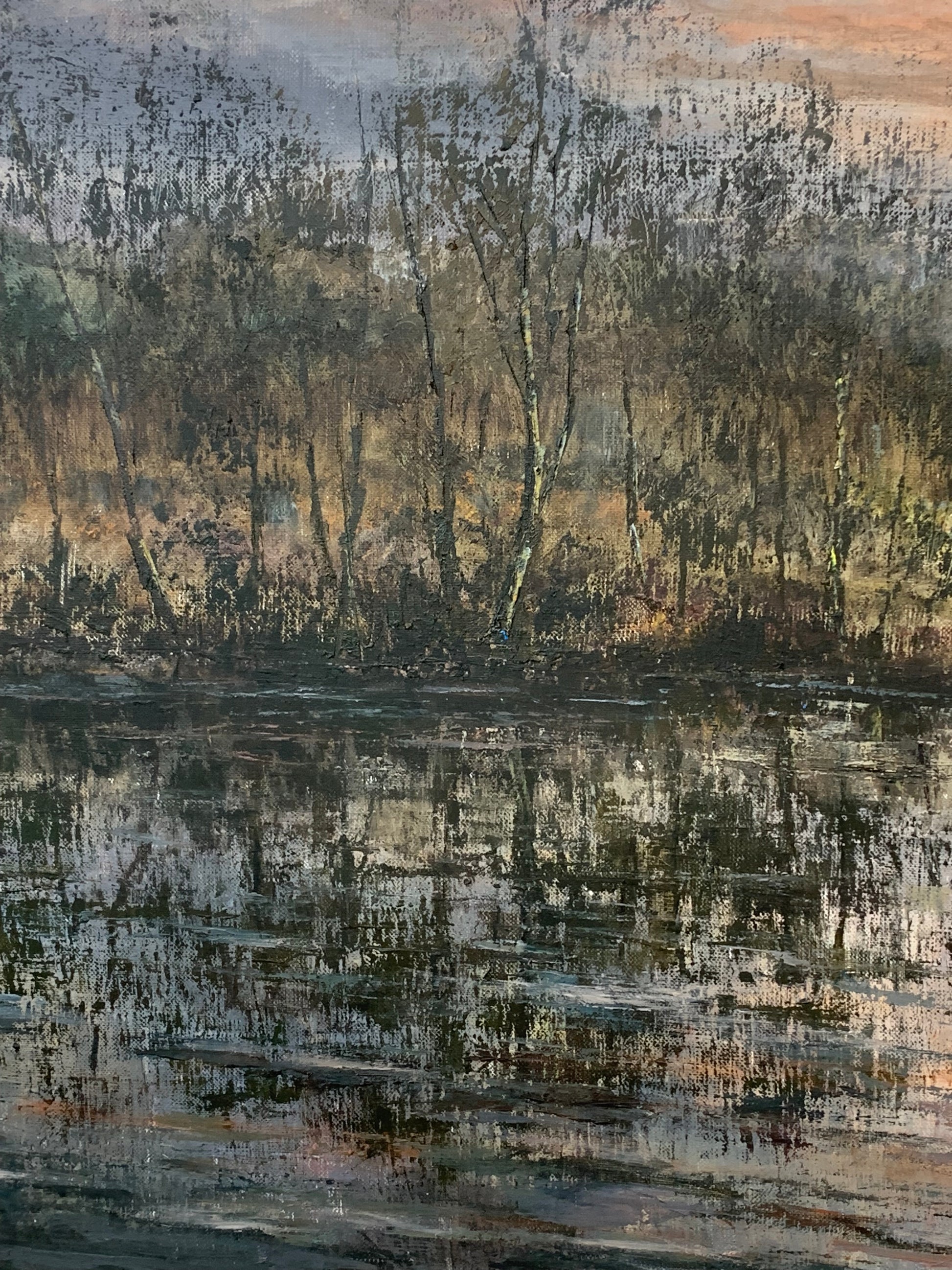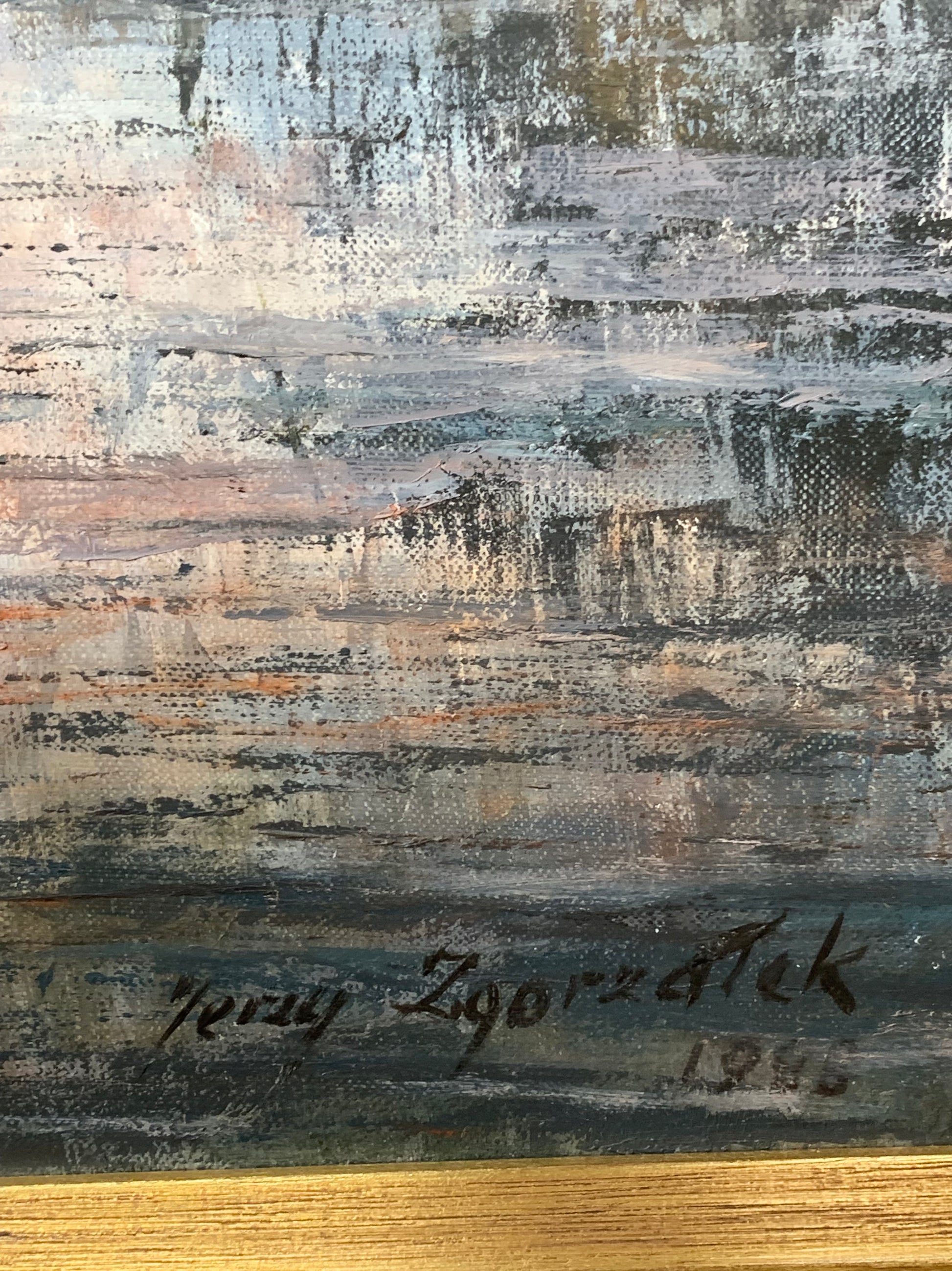 Obraz J. Zgorzałek "O zmierzchu drzewa nad jeziorem" 1988 r.